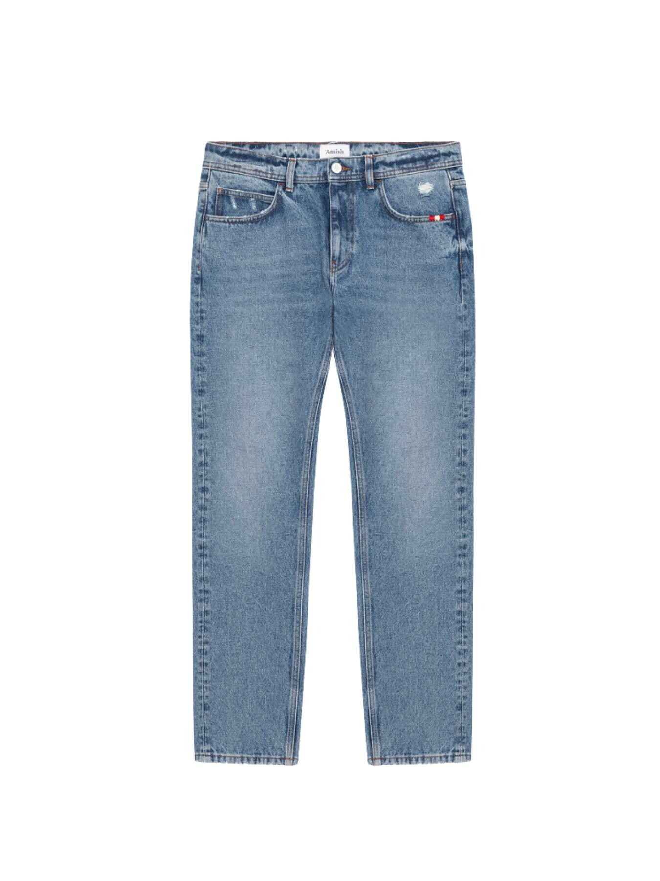 Due tasche sul fronte e due tasche sul retro con ricamo in filo in contrasto.