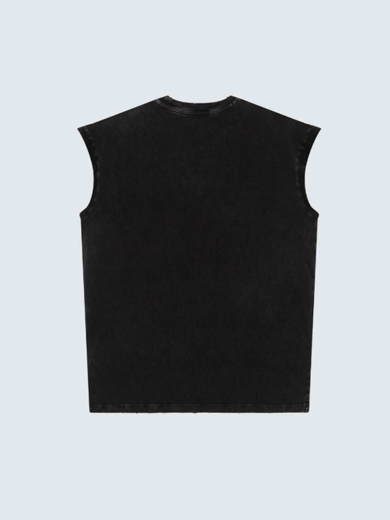 Modello smanicato con giromanica a taglio vivo.