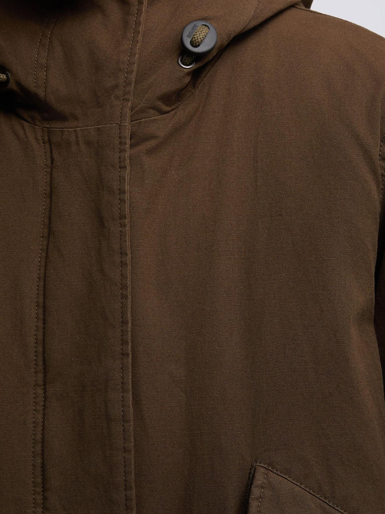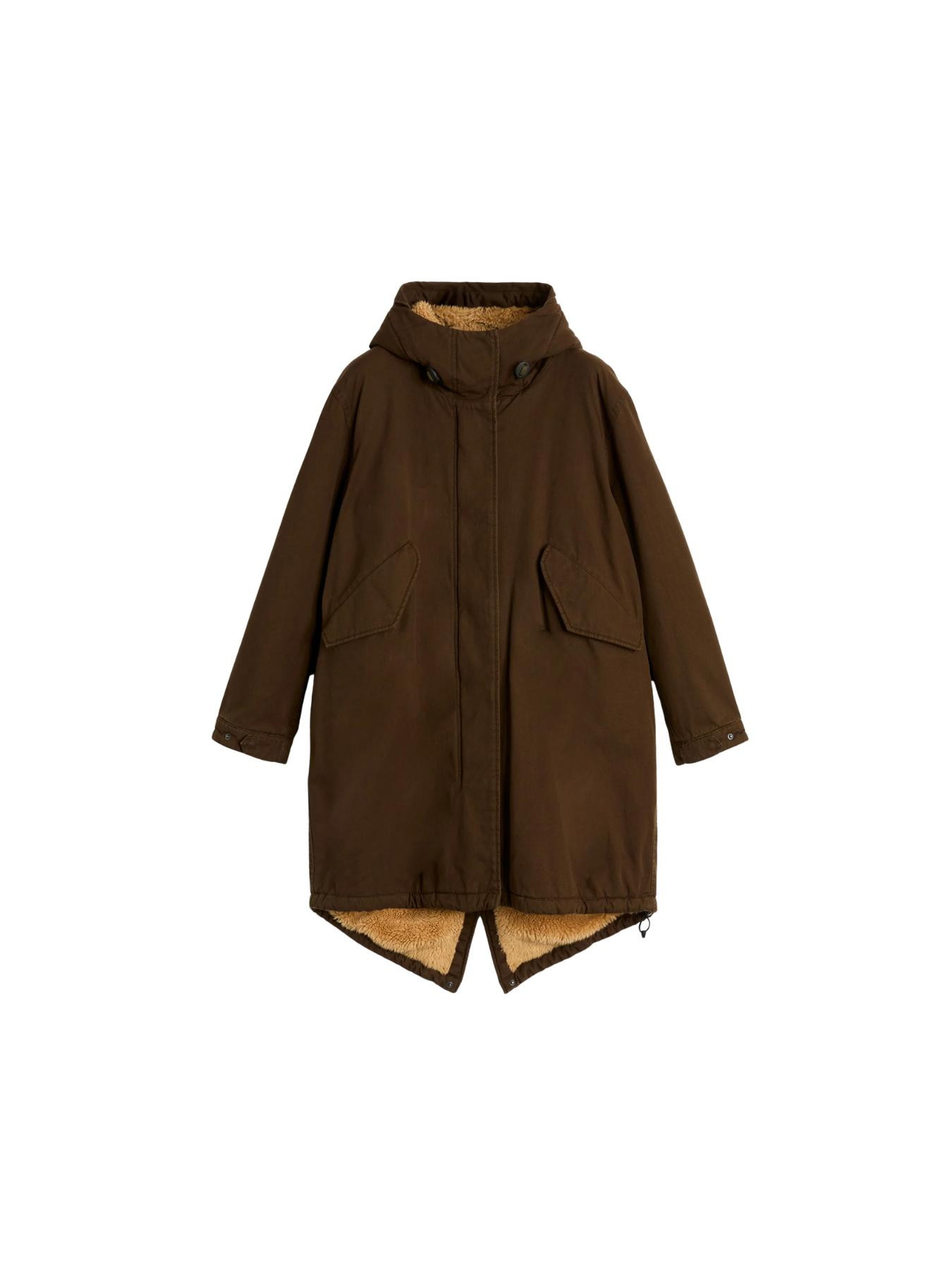 GIUBBOTTO IN CANVAS DI COTONE COMPATTO FINISS. CERATO, LUNGHEZZA CM 104 FODERATO IN PELLICCIA DI LANA, COLLO CLASSICO, GIROMANICA, DIRITTO CON COULISSE INTERNO VITA, ALLACCIATURA NASCOSTA CON LAMPO IN METALLO E BOTTONI A PRESSIONE, ALAMARI ALLE SPALLE CON BOTTONI PRESSIONE NASCOSTI, CARRร POSTERIORE, 4 TASCHE ANTERIORI APPLICATE CON SOFFIETTO E ALETTA CON BOTTONI A PRESSIONE NASCOSTI, MANICHE CON LEGGERA IMBOTTITURA E FODERATE IN NYLON, CON ALAMARI AL FONDO CHIUSI DA BOTTONI A PRESSIONE NASCOSTI- VESTIBILITร REGOLARE