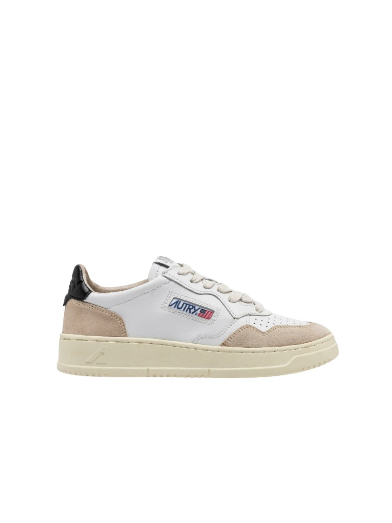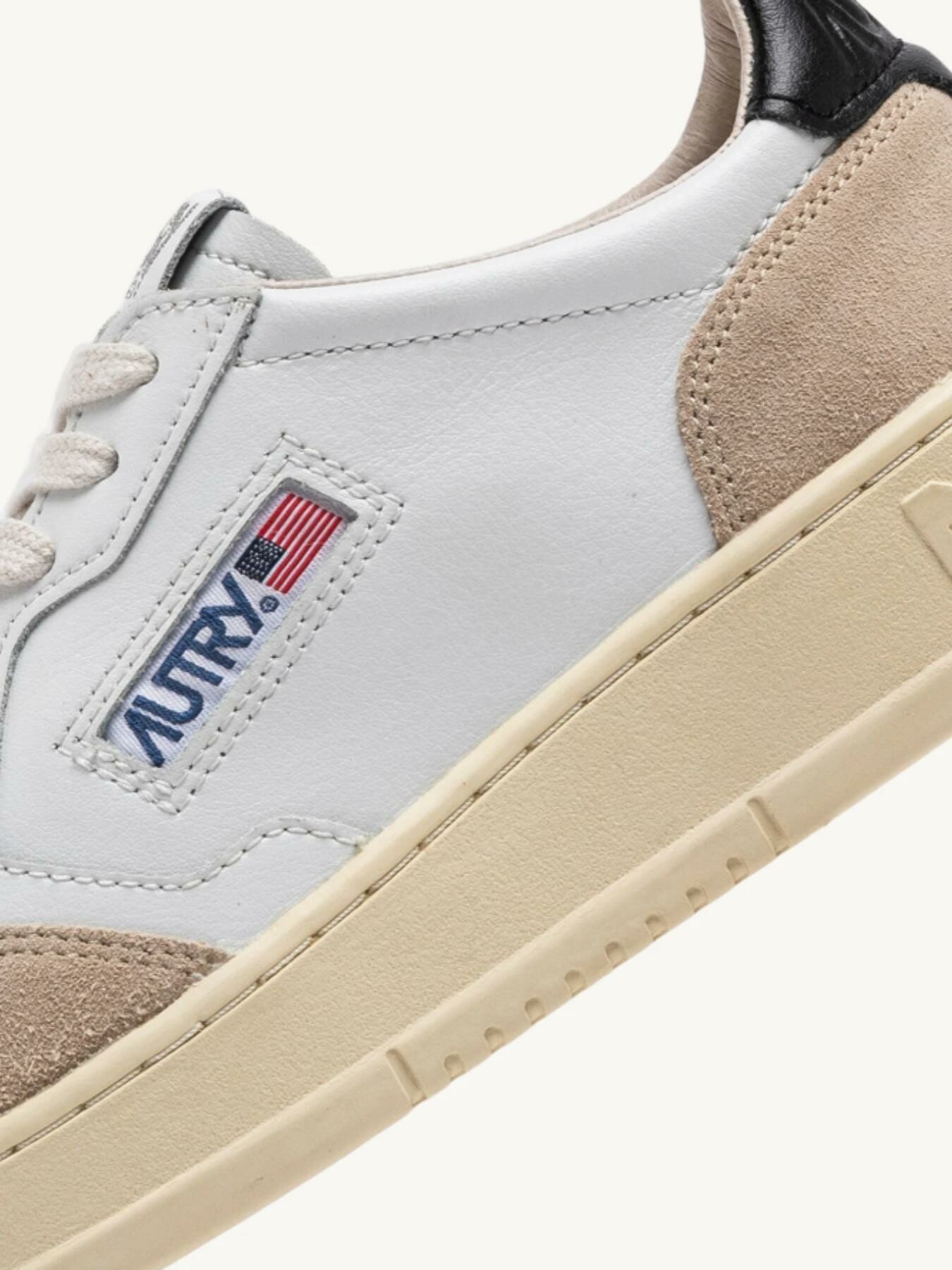 Autry – SNEAKERS MEDALIST LOW IN PELLE BIANCA E NERA E SUEDE BEIGE