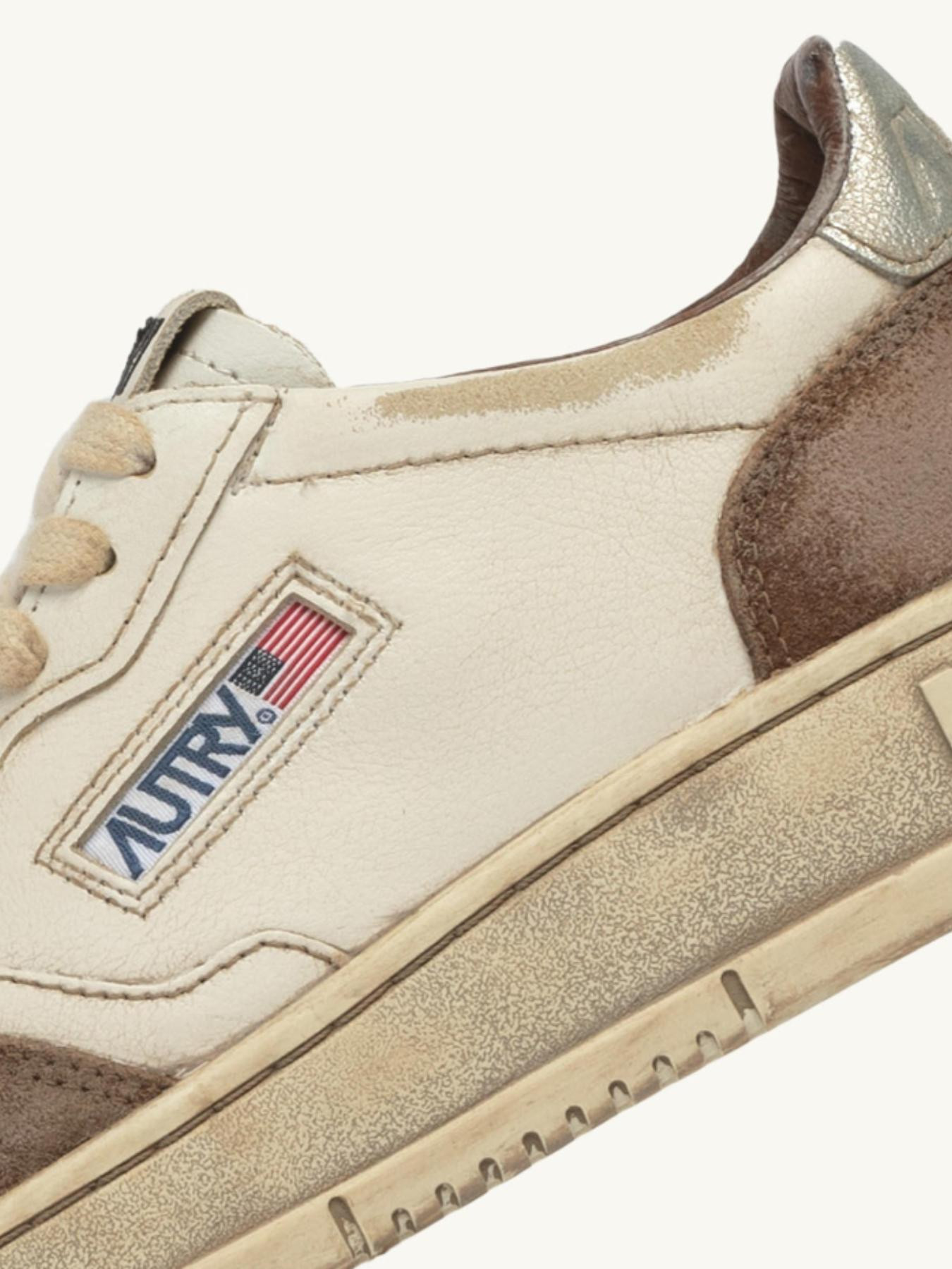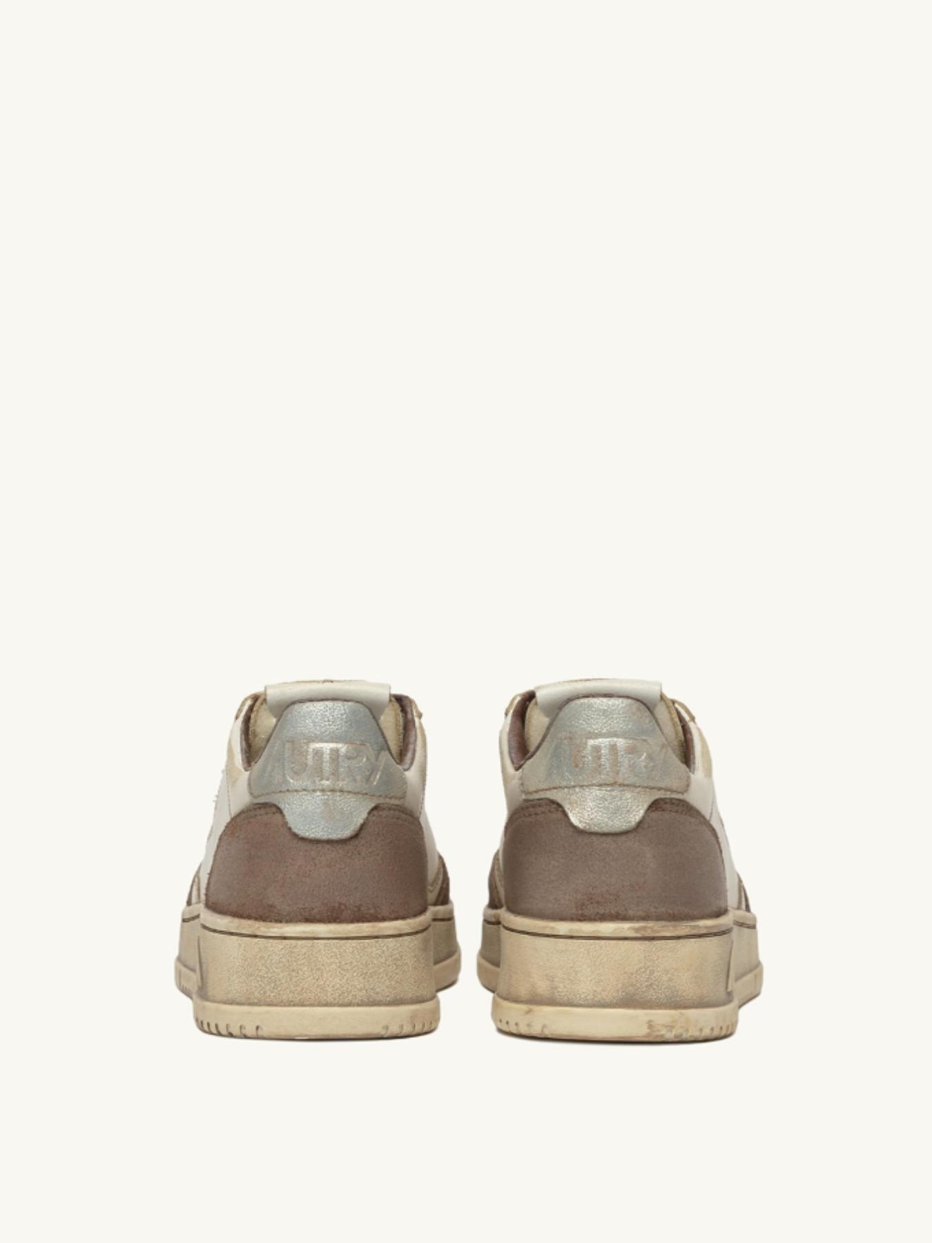 Autry – SNEAKERS MEDALIST LOW SUPER VINTAGE IN PELLE BIANCA E ARGENTO E SUEDE BURNED