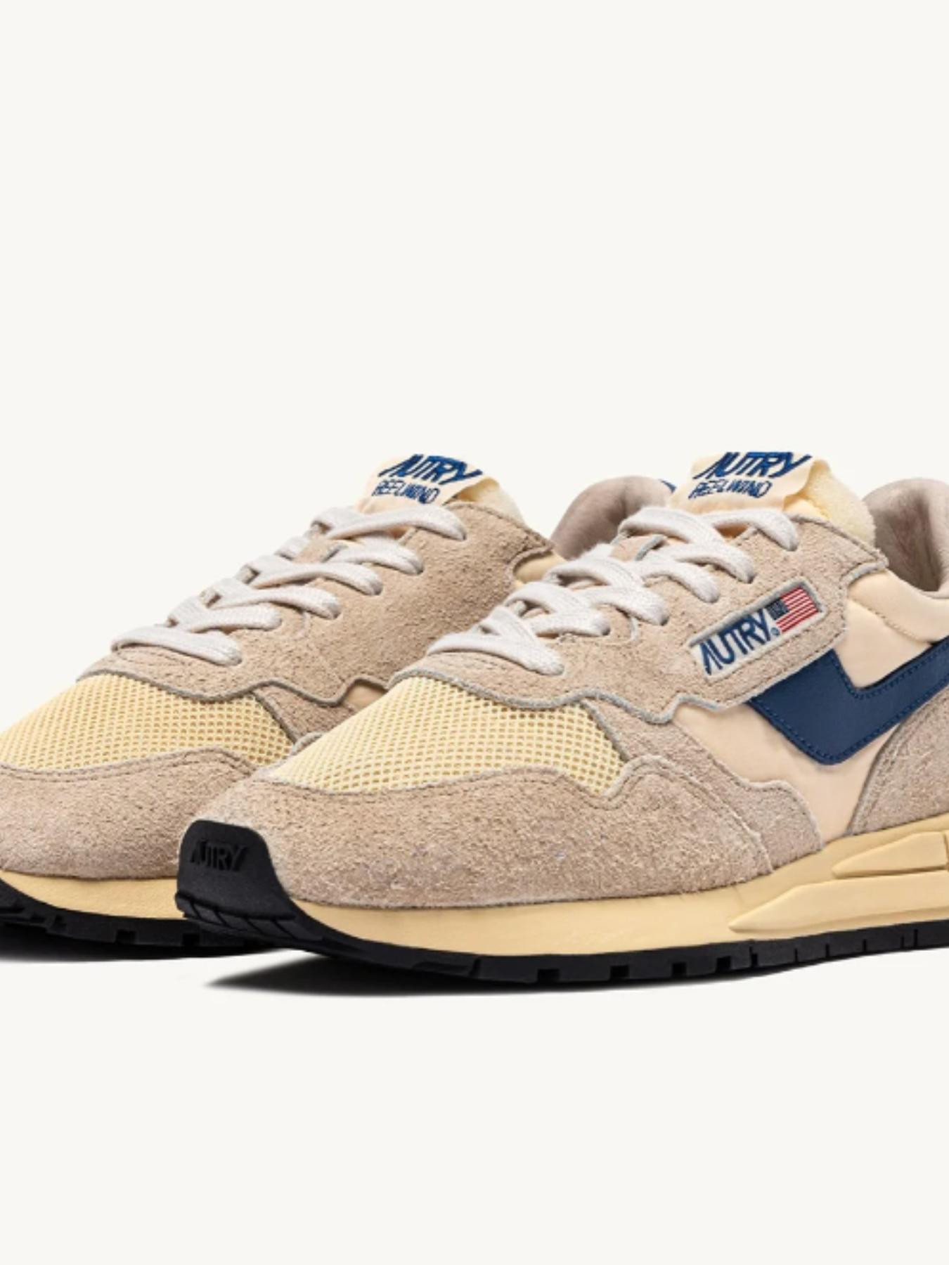 Autry – SNEAKERS REELWIND LOW IN NYLON SUEDE E PELLE ECRU’ E ENSIGN BLUE
