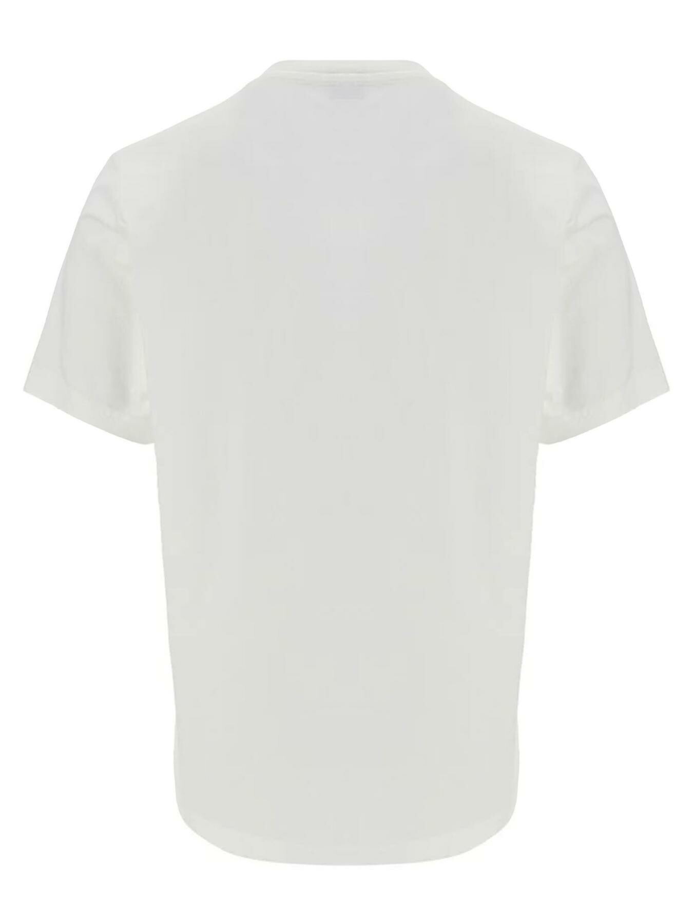 T-shirt in cotone bianco con girocollo, collo a coste, ricamo logo sul petto, regular fit
