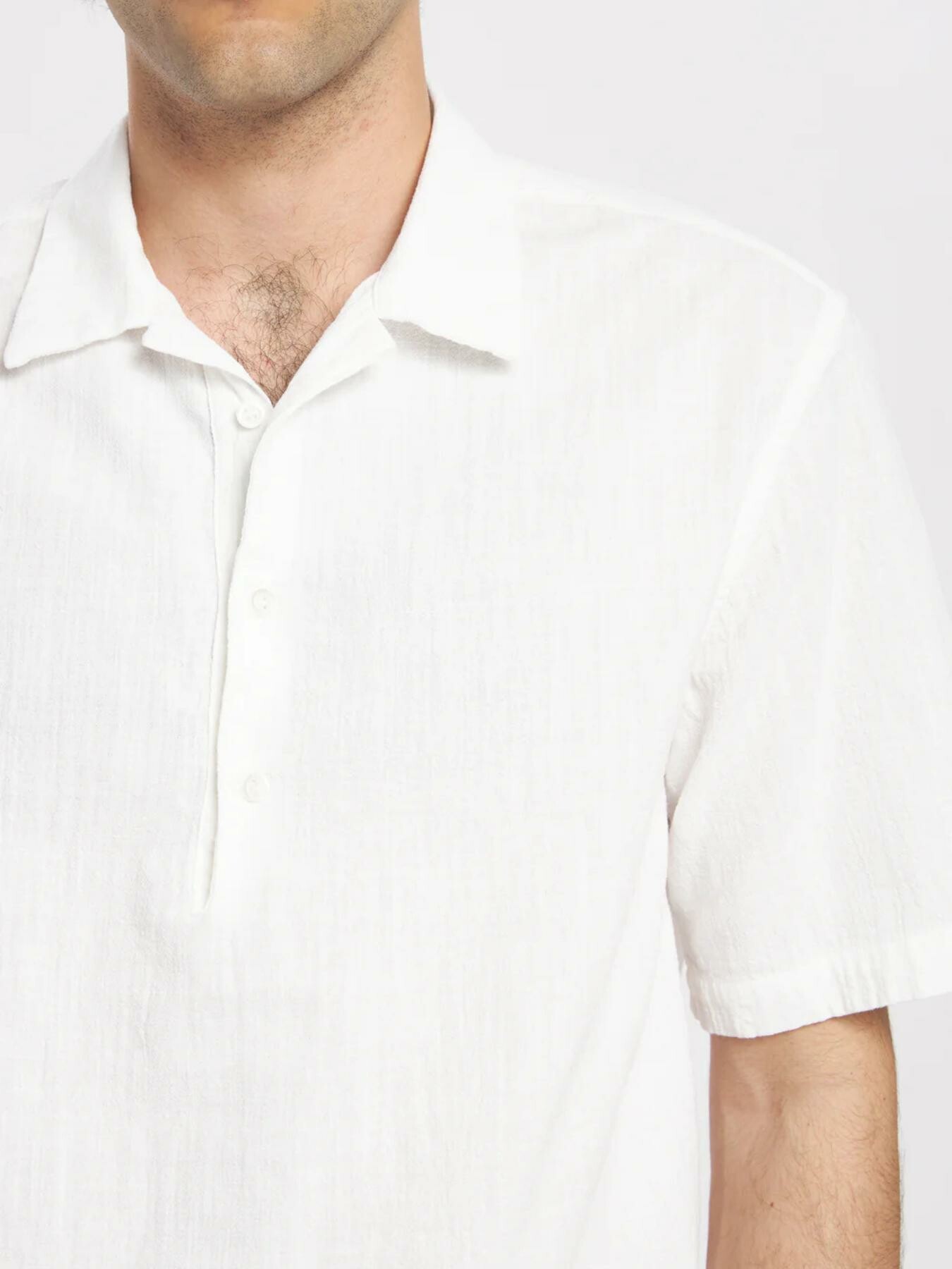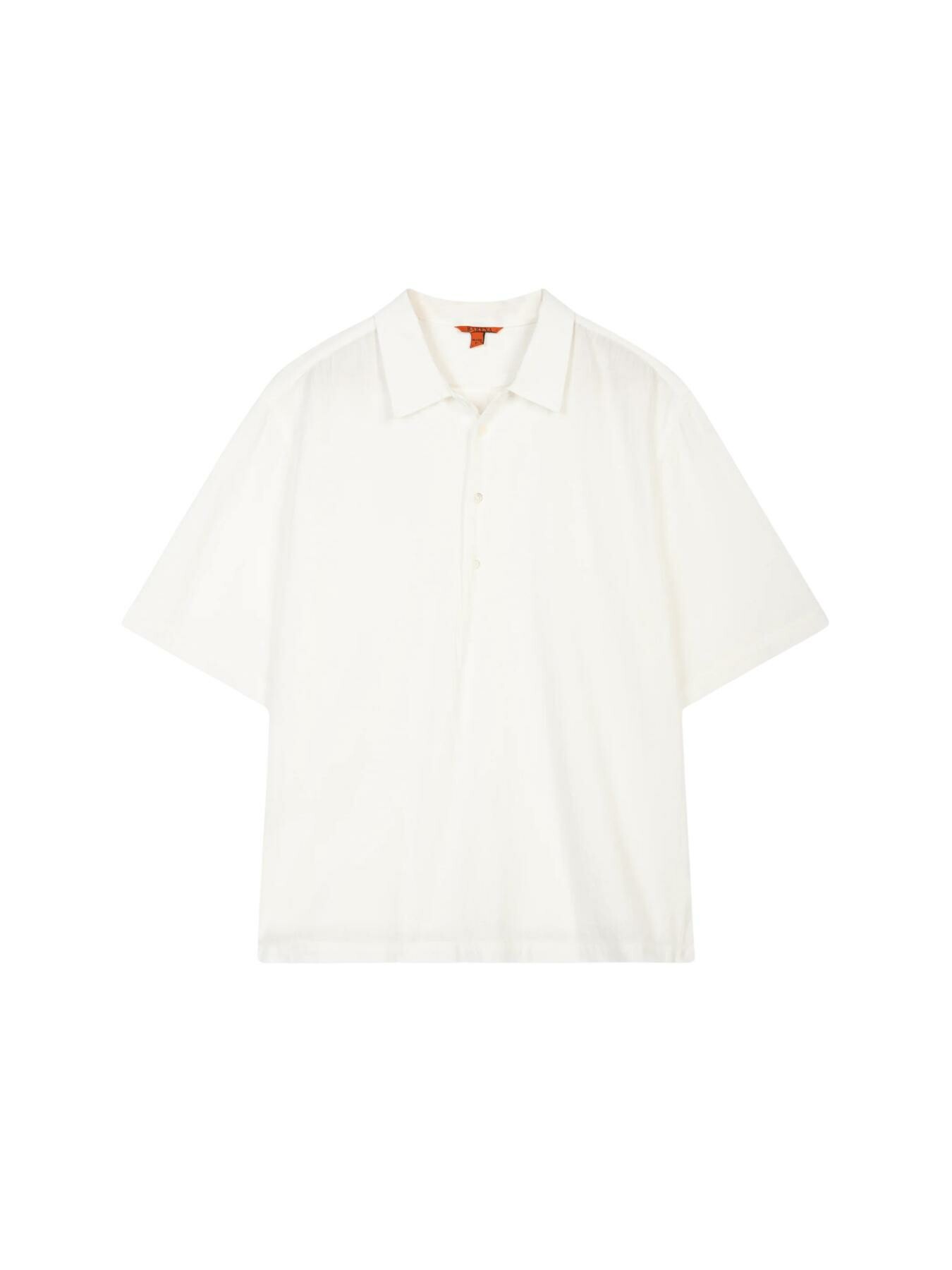 Questa camicia squadrata a maniche corte presenta bottoni frontali e un colletto alla francese per un look rilassato e disinvolto, realizzata in garza di cotone stropicciata tinta in capo per una sensazione morbida e strutturata. Composizione: 100% Cotone