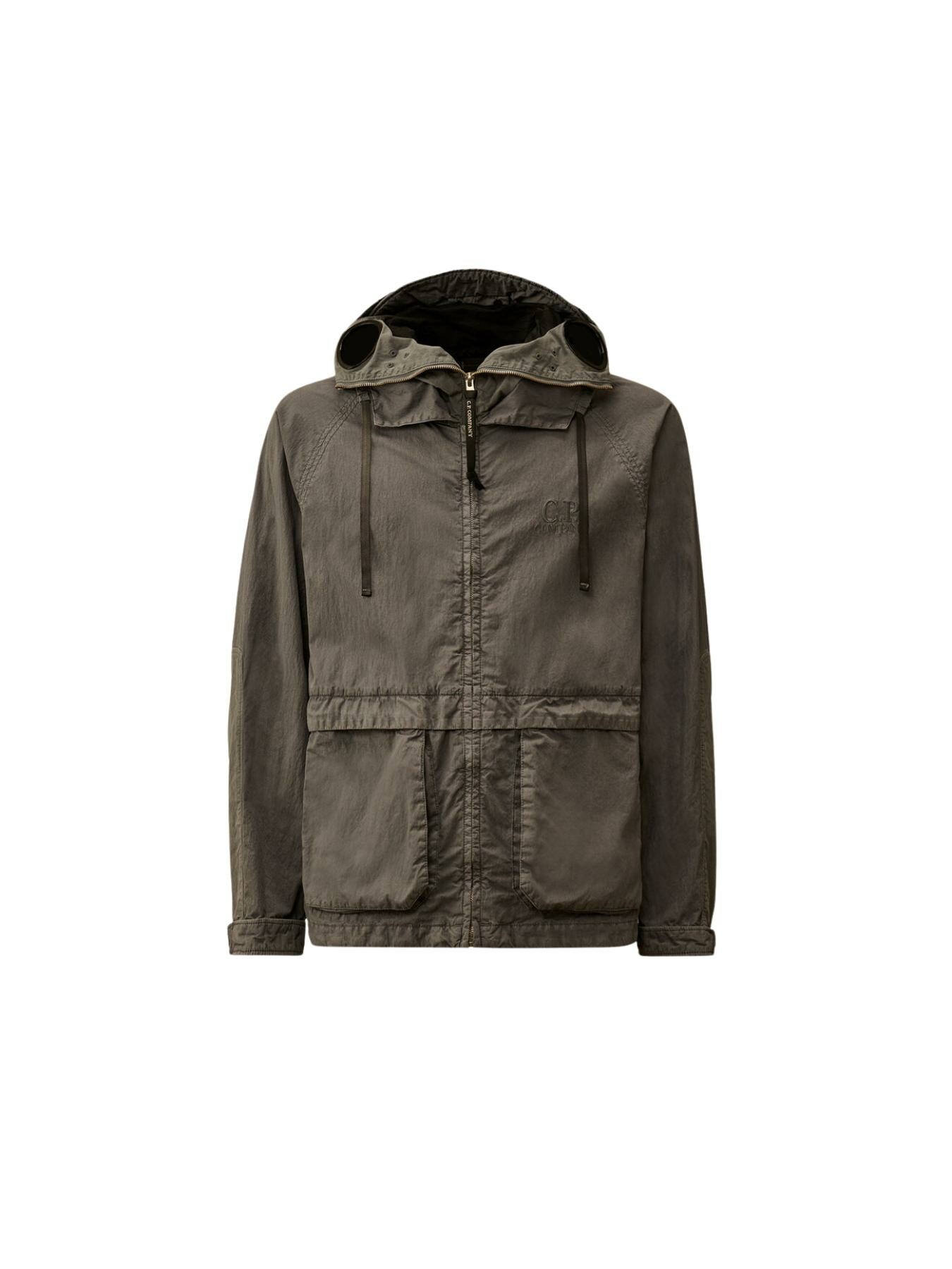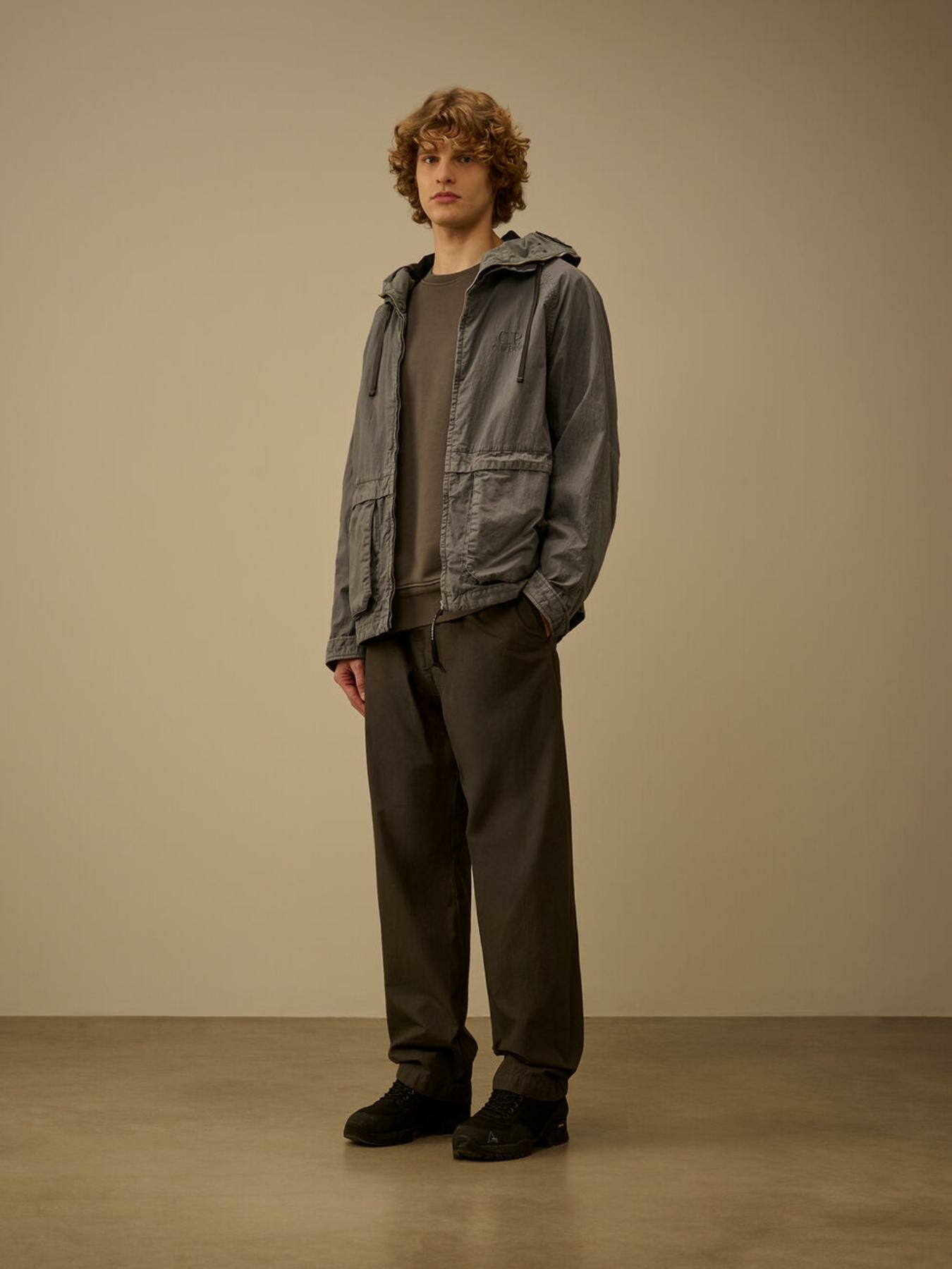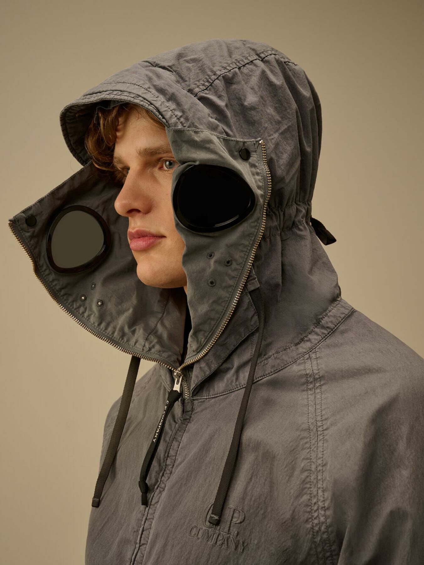 Explorer jacket realizzata in 50 Fili Wax, lโiconico tessuto in nylon e cotone di C.P. Company, qui presentato in una versione con rivestimento esterno semitrasparente a effetto cera sintetica idrorepellente. Il rivestimento poliuretanico applicato alla superficie esterna migliora notevolmente la resistenza agli agenti atmosferici.Il modello presenta il cappuccio Explorer regolabile, chiusura full zip, e logo ricamato sul petto. Dotata di tasche frontali nascoste con patta e bottoni automatici, orlo regolabile con coulisse e fodera in mesh per maggiore traspirabilitร . Il pannello di ventilazione posteriore e i dettagli a contrasto sul retro completano il design funzionale e tecnico del capo. La giacca รจ tinta in capo con doppia tintura, in cui nylon e cotone vengono tinti in colori differenti per creare sfumature di tono e profonditร cromatica uniche. Completato da trattamento anti-goccia. Regular fit.