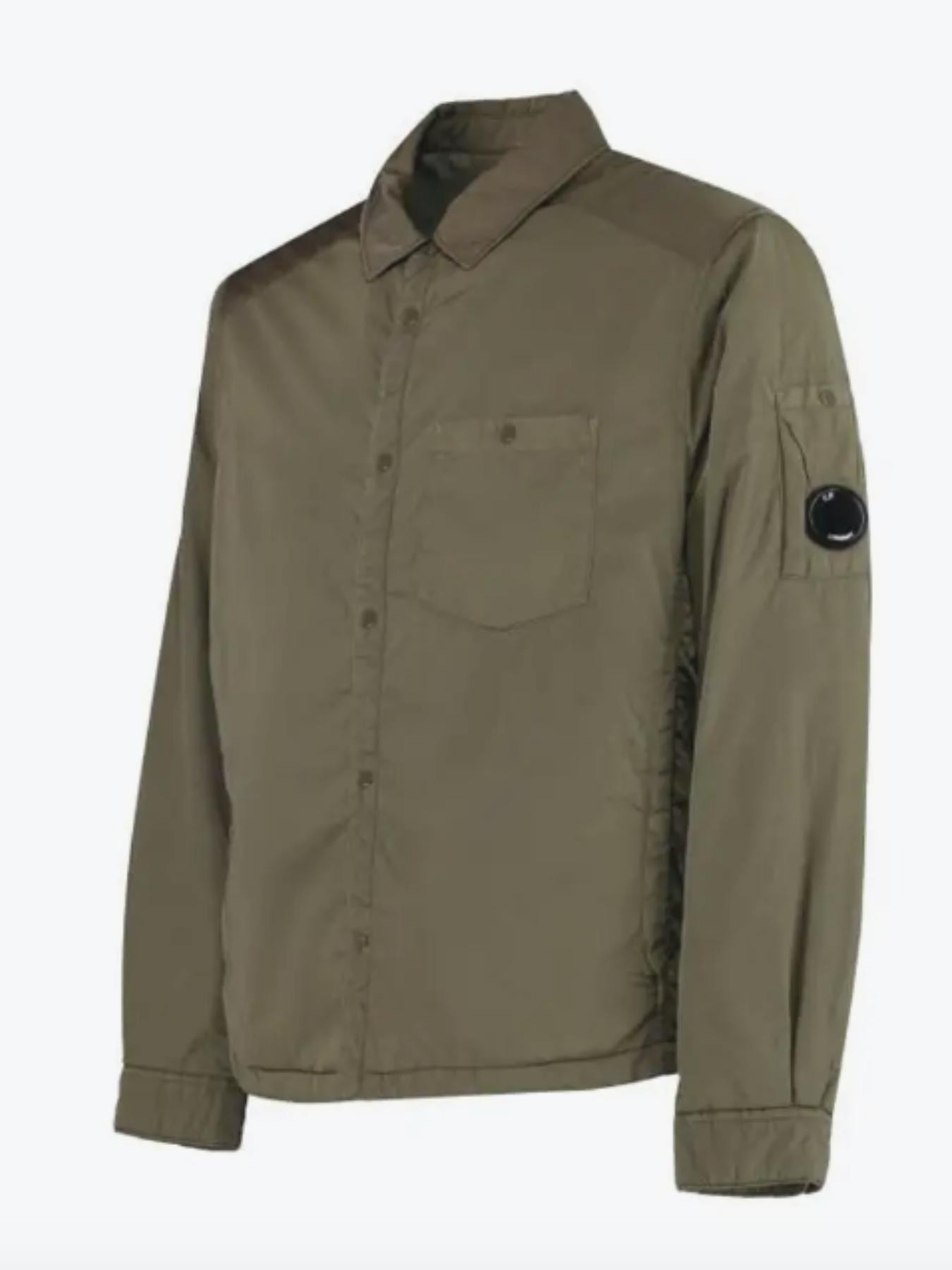 Overshirt realizzata in Chrome-R, un nylon multifilamento lucido e riciclato al 100%, ottenuto da scarti di lavorazione e trasformato in una nuova fibra certificata Global Recycled Standard (GRS). Lโovershirt presenta lโiconica Lente di C.P. Company, chiusura con bottoni automatici e tasca sul petto con bottone automatico. Imbottitura in ovatta e tinta in capo con trattamento anti-goccia. Regular fit.