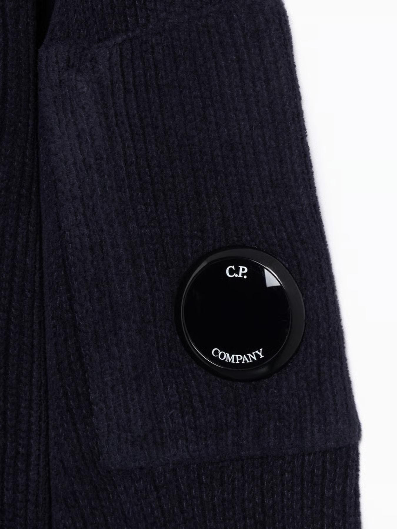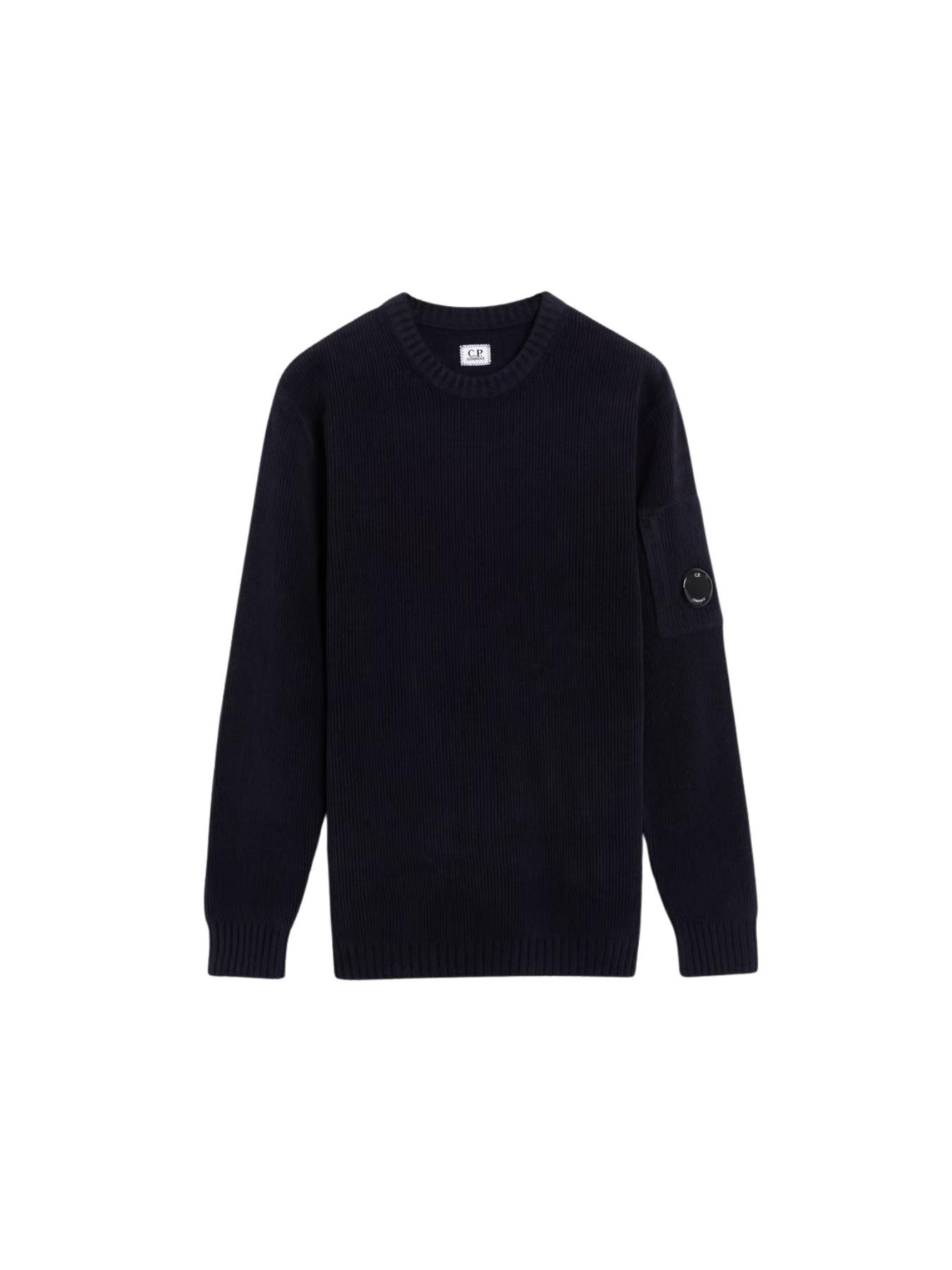 Maglione girocollo realizzato in ciniglia di cotone. Il modello presenta lโiconica Lente di C.P. Company, polsini e fondo a costine. Tinto in capo. Finezza 7. Regular fit.
