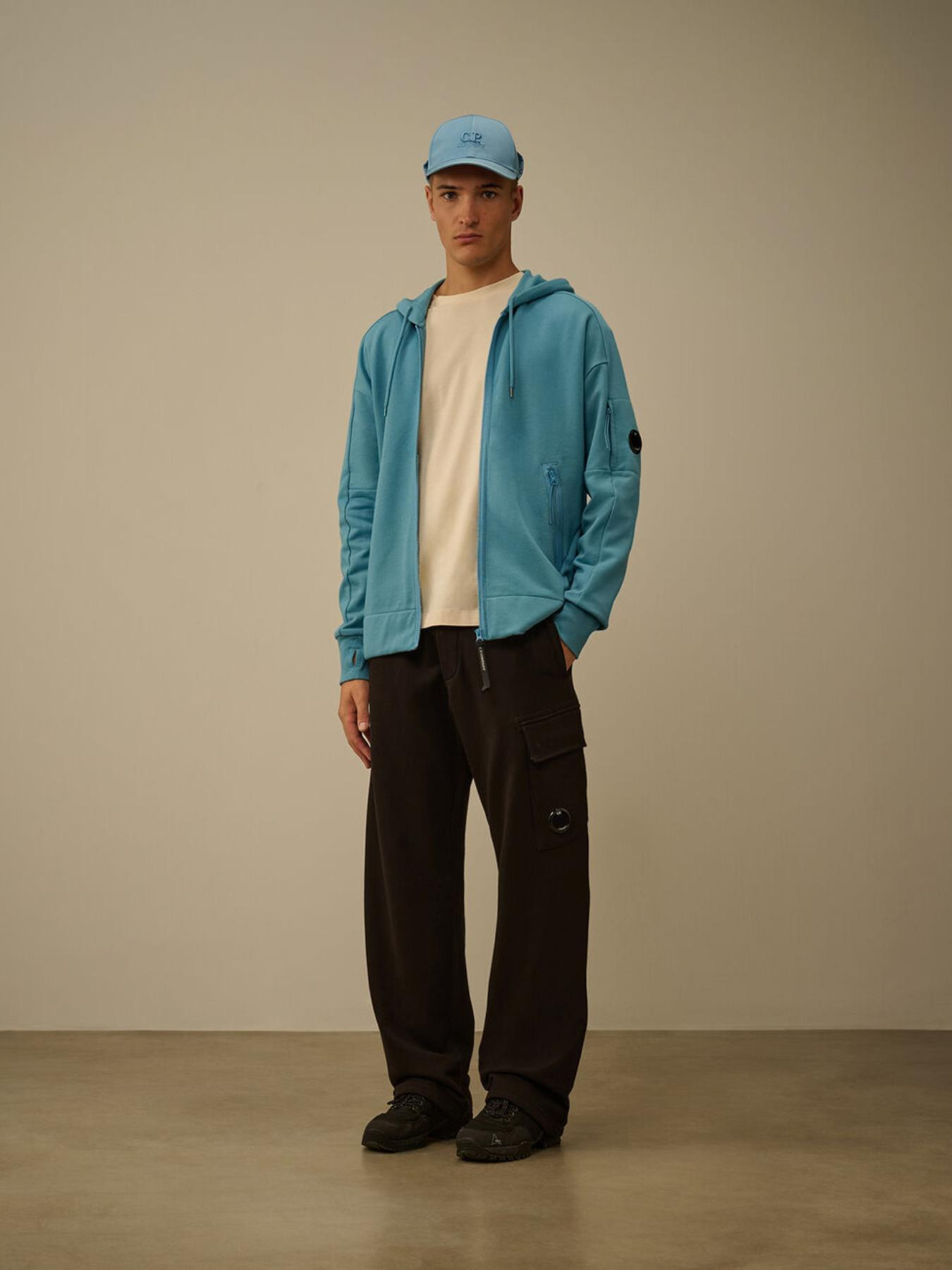 Pantaloni cargo realizzati in Diagonal Raised Fleece, un cotone spazzolato a trama diagonale di peso medio. Il tessuto morbido assicura comfort e libertร di movimento. Il capo presenta vita regolabile con coulisse, chiusura con bottone nascosto e tasche laterali. Completato da tasca cargo con patta, bottoni automatici e l’iconica Lente di C.P. Company, piรน una tasca posteriore aperta. Fondo gamba regolabili con coulisse. Regular fit.