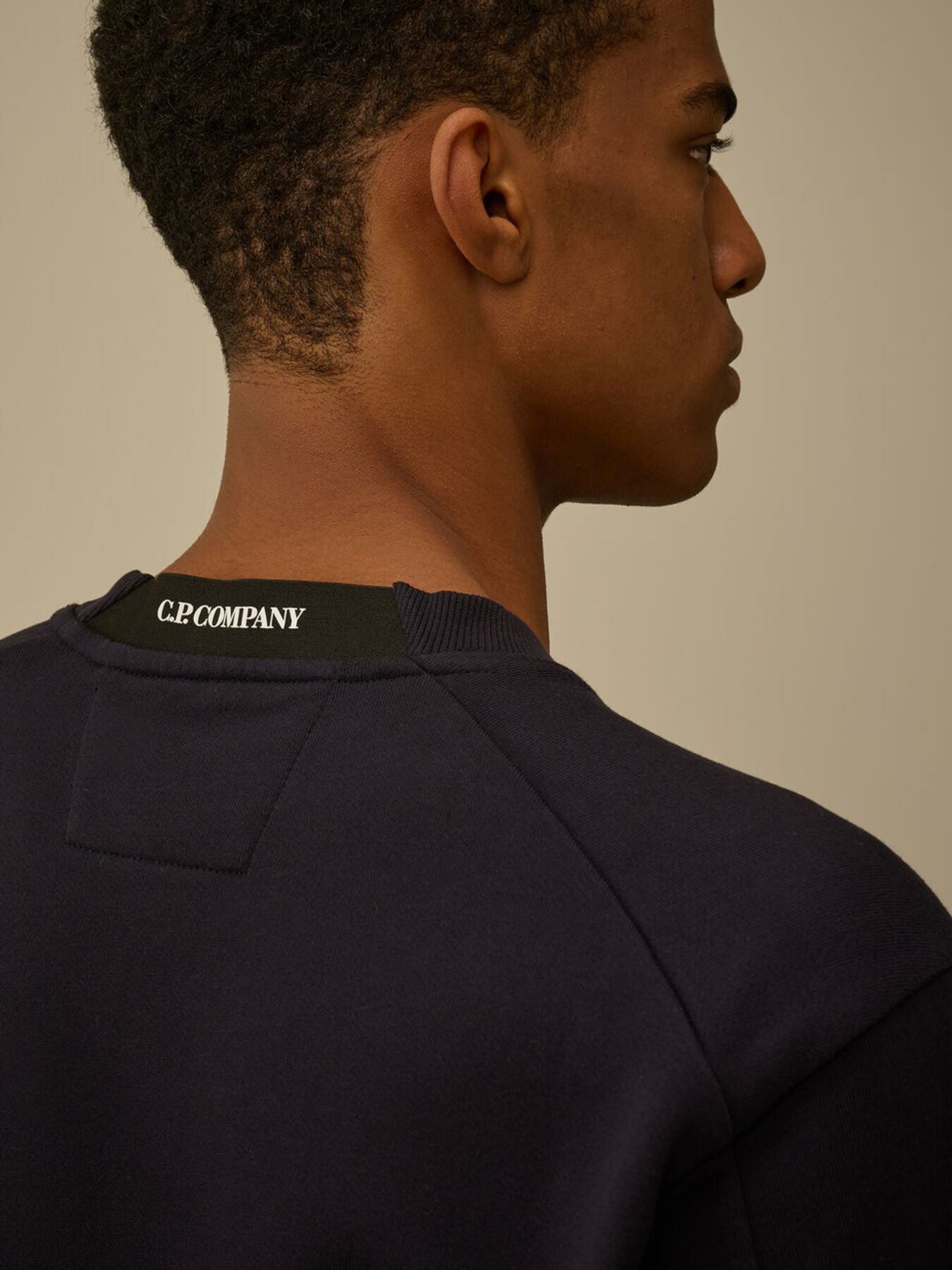 Felpa girocollo realizzata in Diagonal Raised Fleece, un cotone spazzolato a trama diagonale di peso medio. Il tessuto morbido assicura comfort e libertร di movimento. Il capo presenta logo ricamato sul retro del collo, lโiconica Lente di C.P. Company, polsini e orlo a costine. Regular fit.