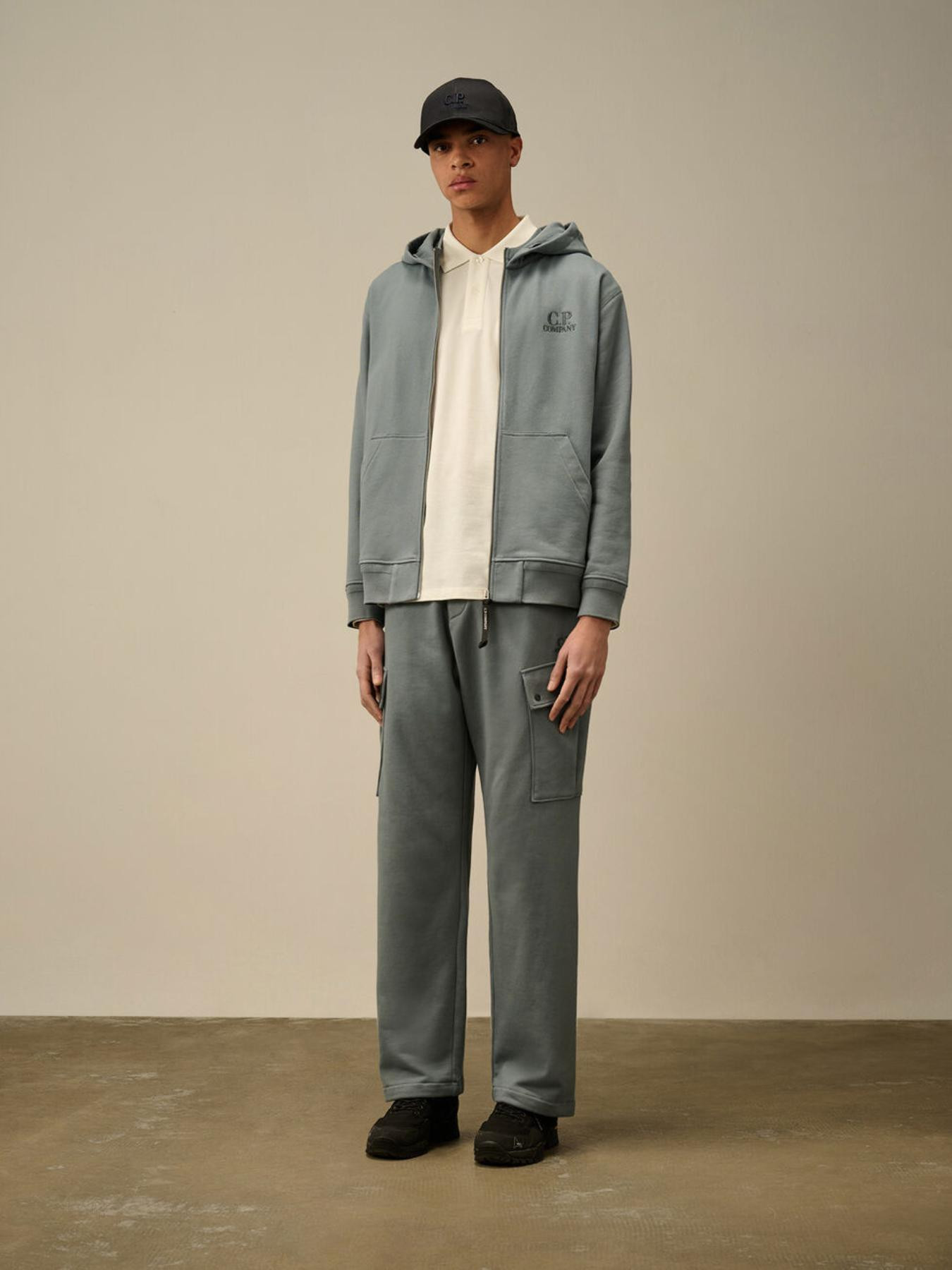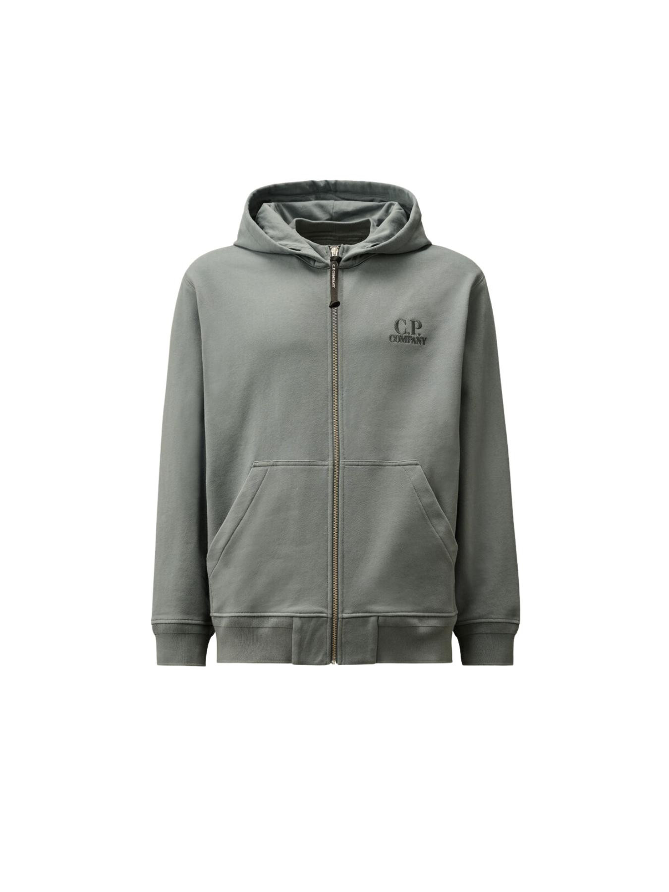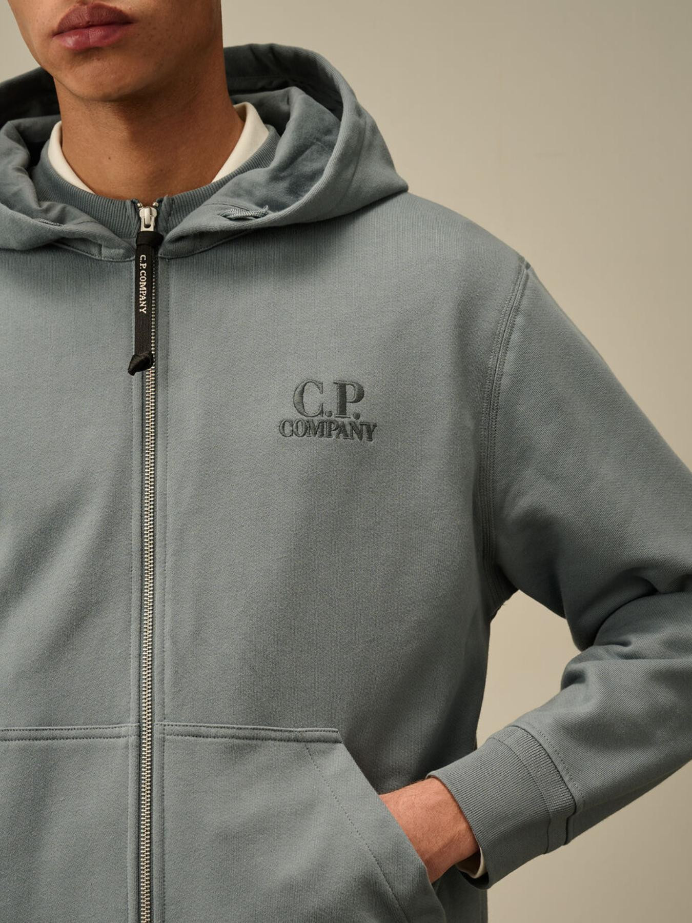 C.P. Company – DIAGONAL RAISED FLEECE FULL ZIP LOGO SWEATSHIRT (Stormy Weather)