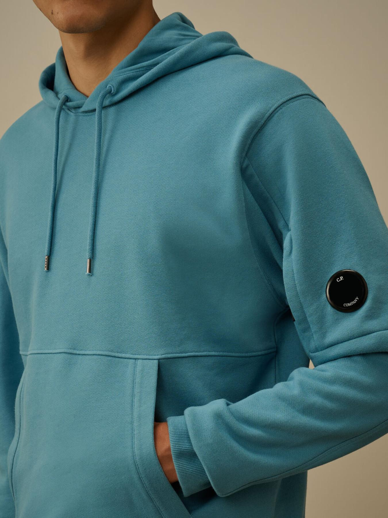 Felpa con cappuccio realizzata in Diagonal Raised Fleece, un cotone spazzolato a trama diagonale di peso medio. Il tessuto morbido assicura comfort e libertà di movimento. Il capo presenta cappuccio regolabile, tasca a marsupio e l’iconica Lente di C.P. Company. Rifinito con polsini e orlo a costine. Regular fit.