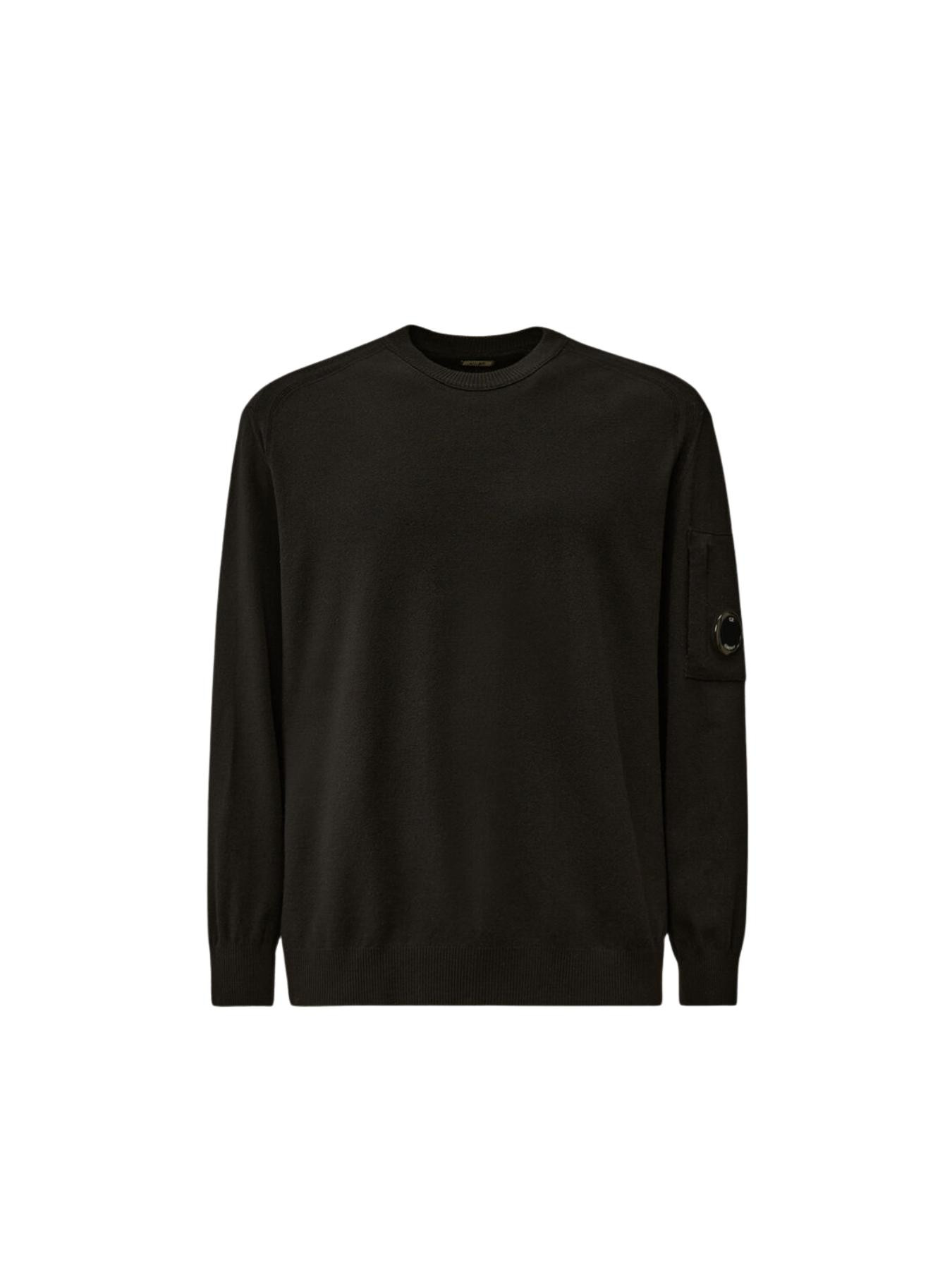 Maglione girocollo realizzata in lana merino extrafine. Il filato morbido e leggero offre una texture raffinata e un comfort superiore. Il modello presenta l’iconica Lente di C.P. Company, polsini e orlo a costine. Rifinito con cuciture a contrasto. Finezza 12. Regular fit.
