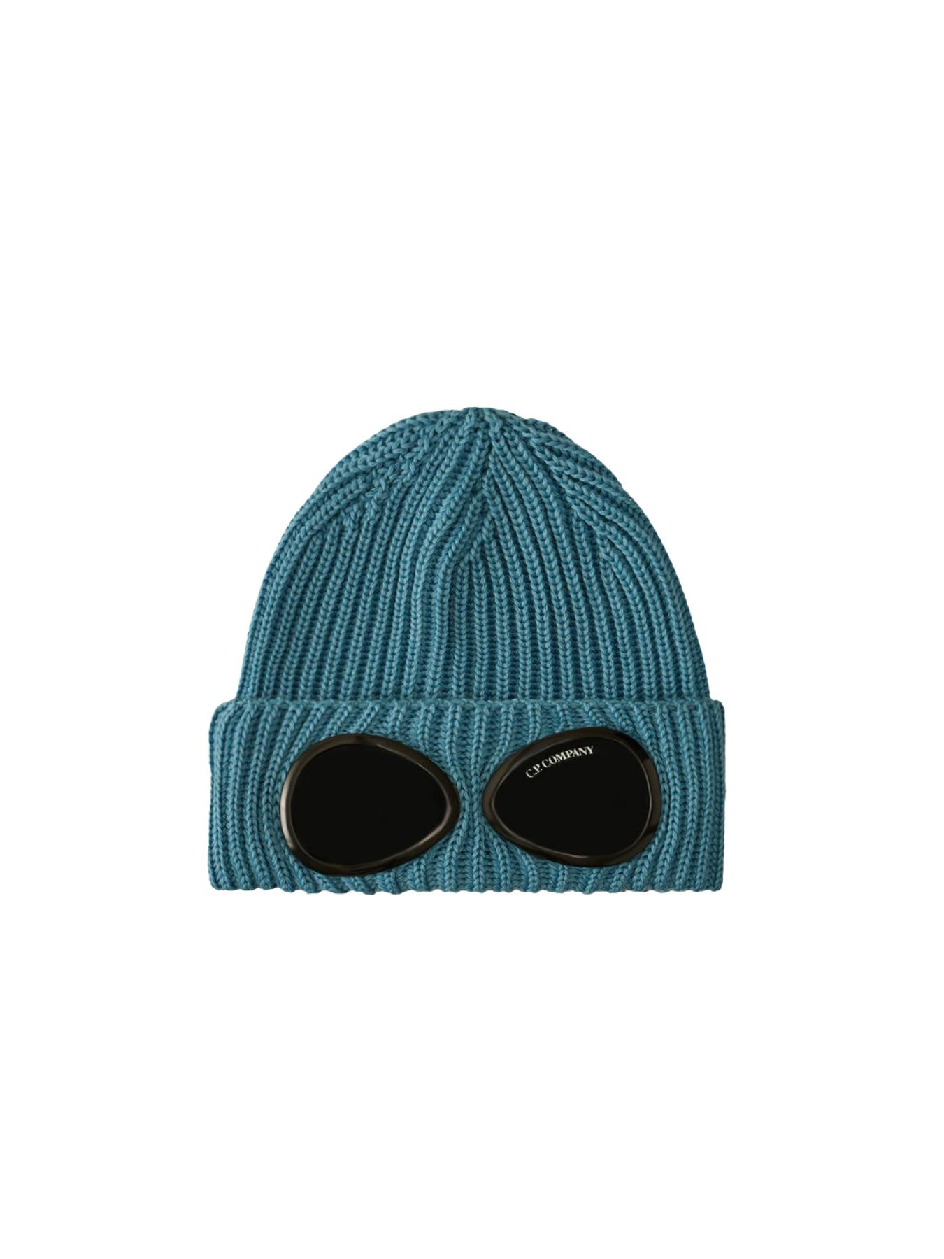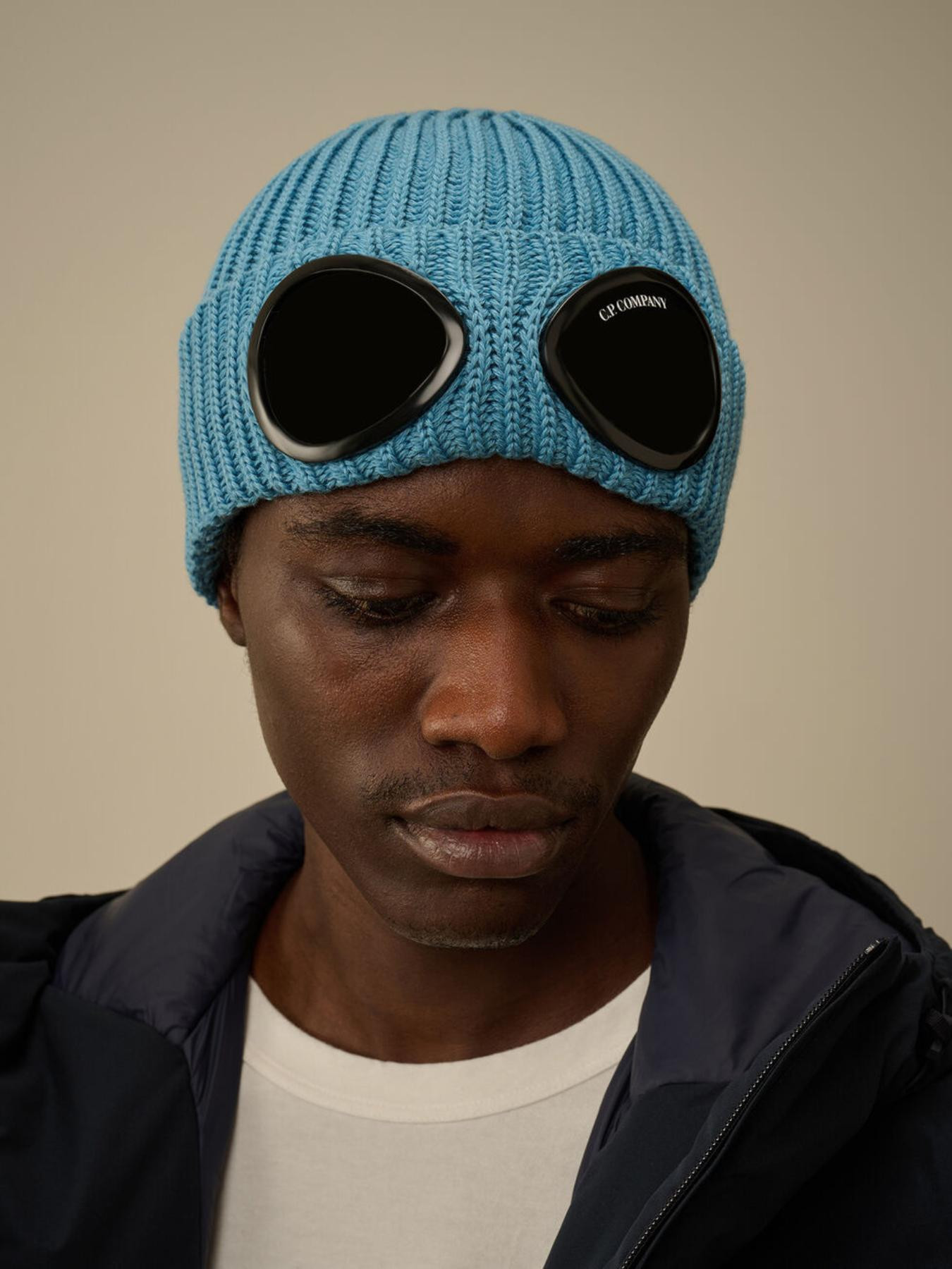 Beanie realizzato in lana merino extrafine, che garantisce morbidezza e calore. Il beanie presenta una lavorazione in maglia a costine, risvolto e le iconiche lenti Goggle di C.P. Company.