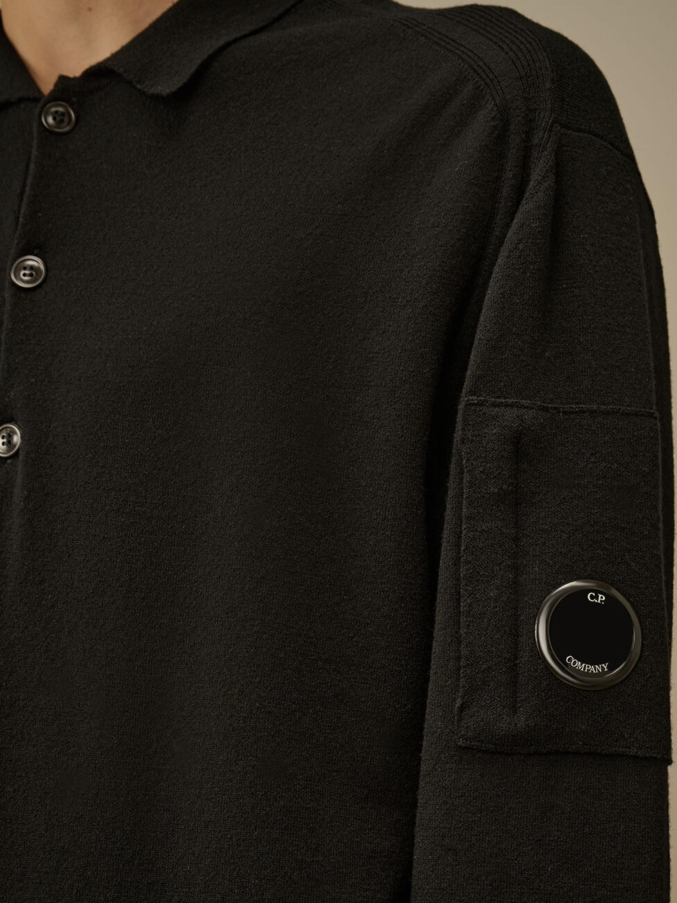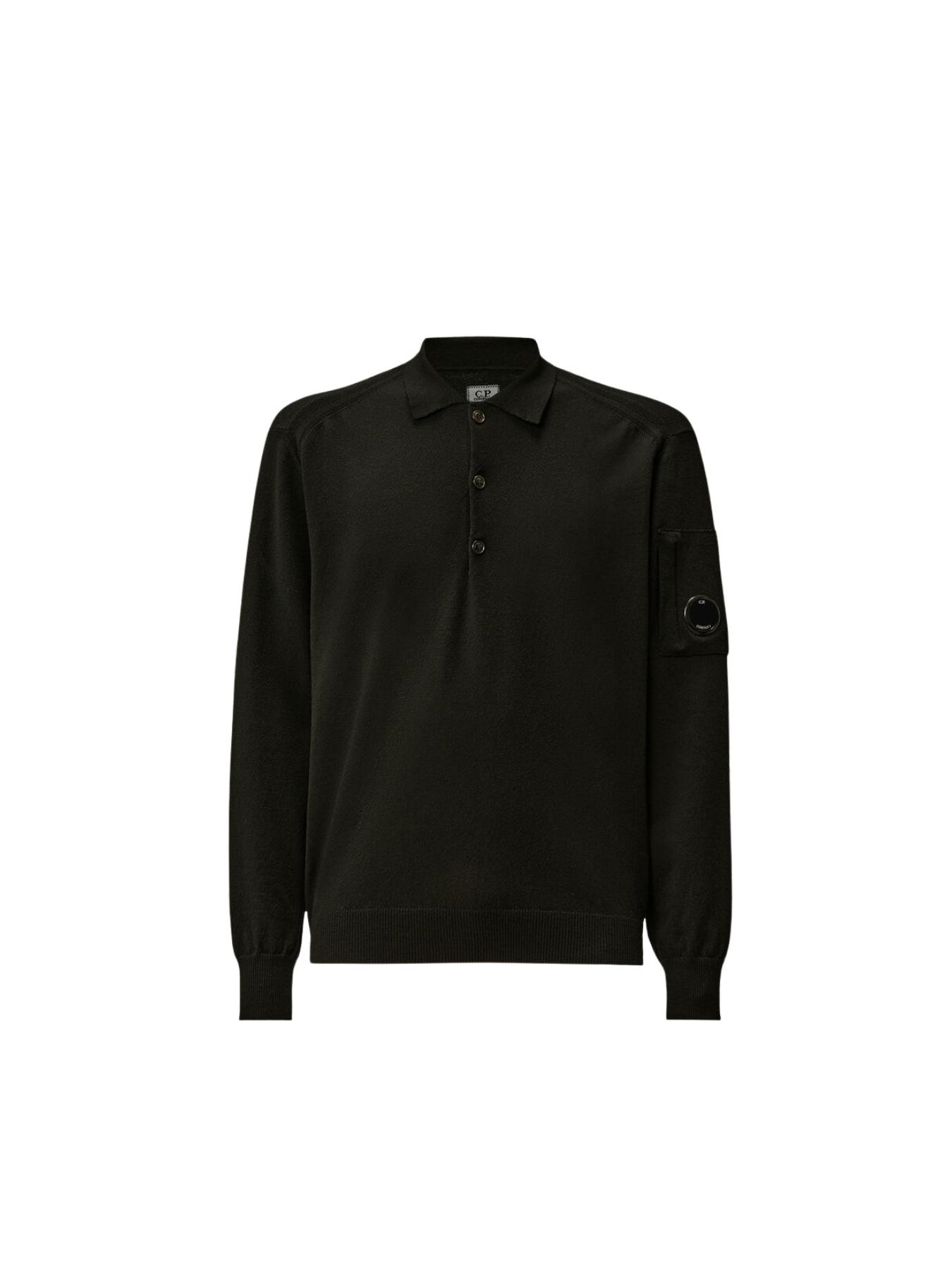 Maglione polo realizzato in lana merino extrafine. Il filato morbido e leggero offre una texture raffinata e un comfort superiore. Il modello presenta un colletto a costine con abbottonatura a tre bottoni, la Lente iconica di C.P. Company, polsini e orlo a costine. Rifinito con cuciture a contrasto. Finezza 12. Regular fit.
