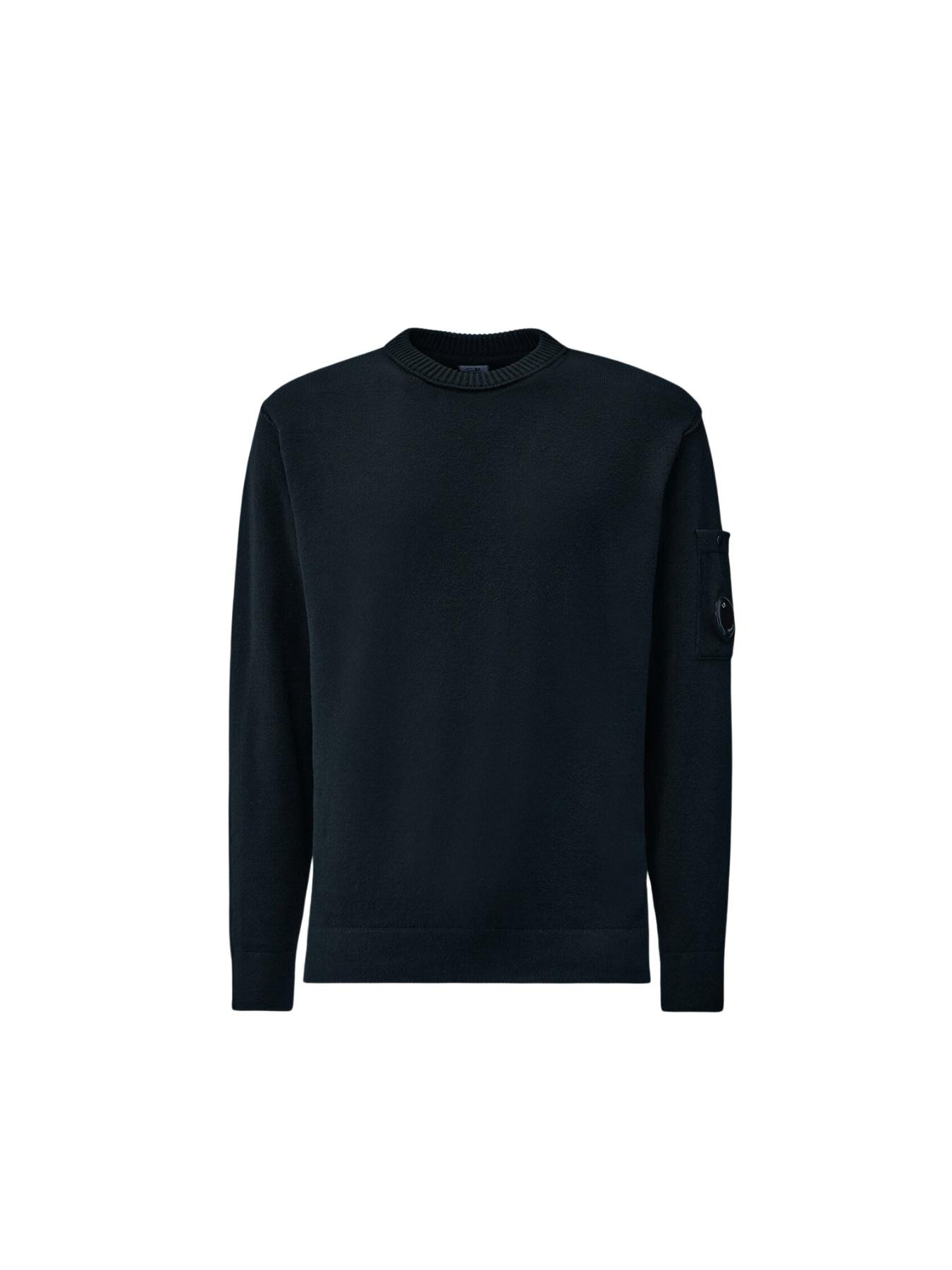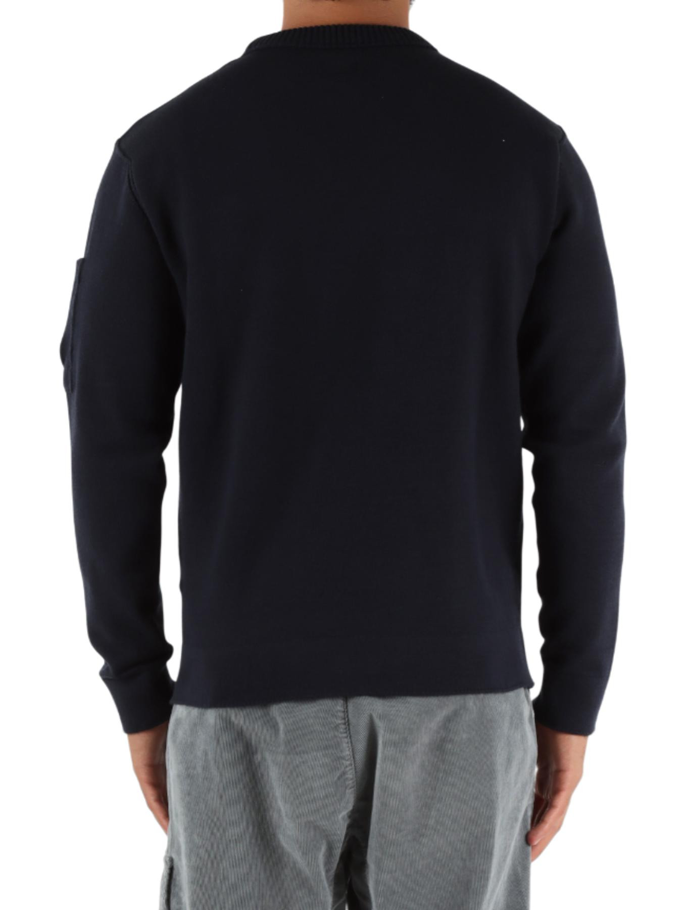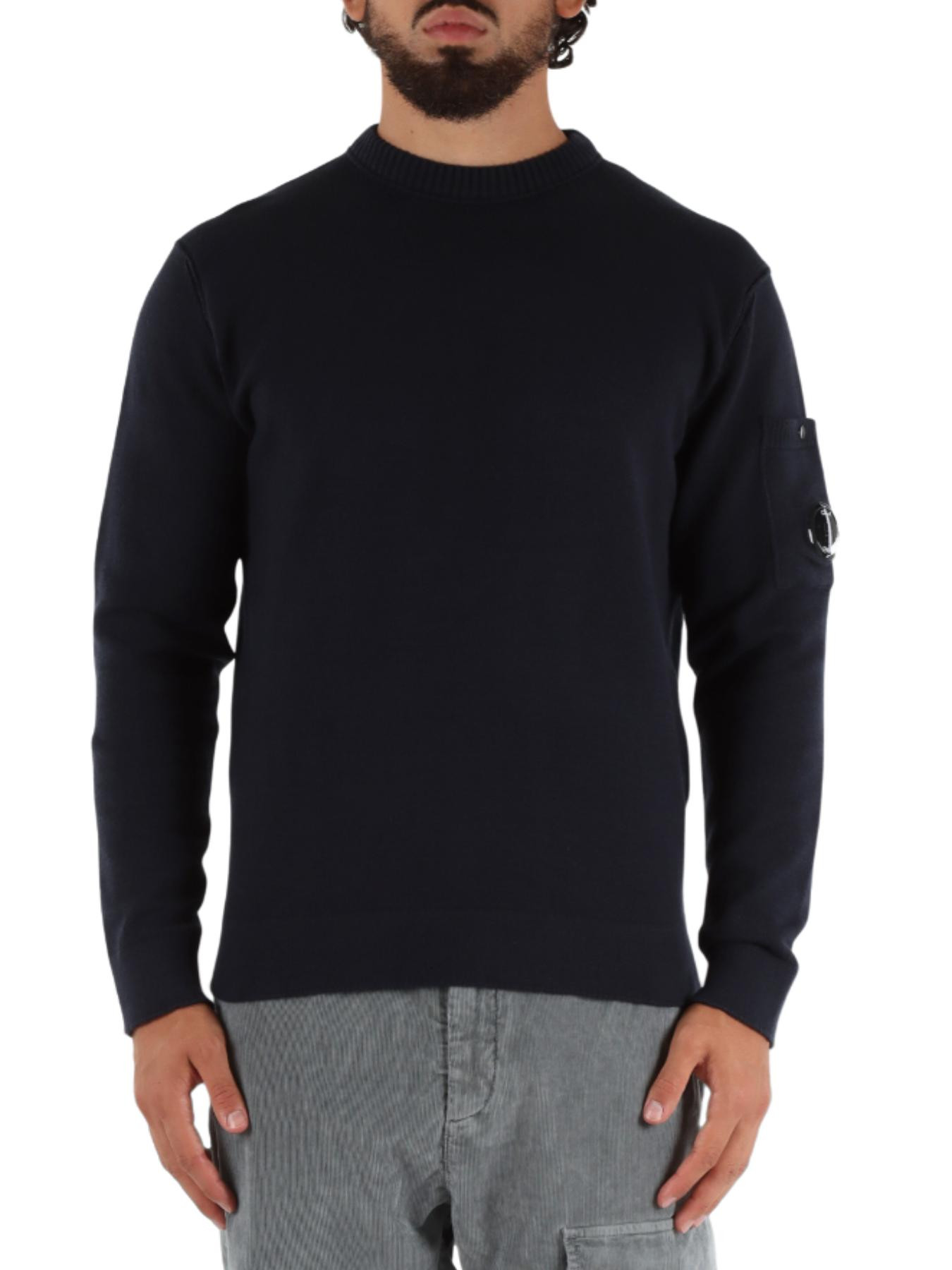 Maglione girocollo realizzato in morbido cotone stretch. Il tessuto garantisce flessibilitร e comfort mantenendo un look essenziale. Il capo presenta lโiconica Lente di C.P. Company e cuciture a contrasto sul giromanica. Finezza 7. Regular fit.