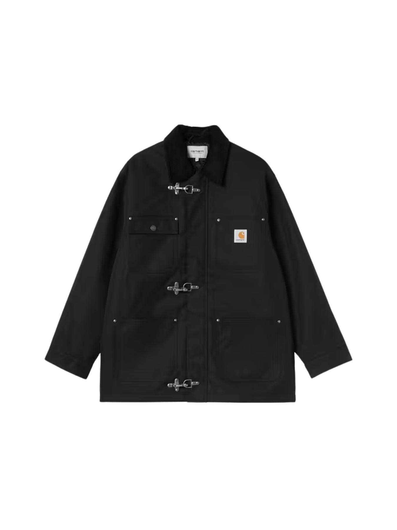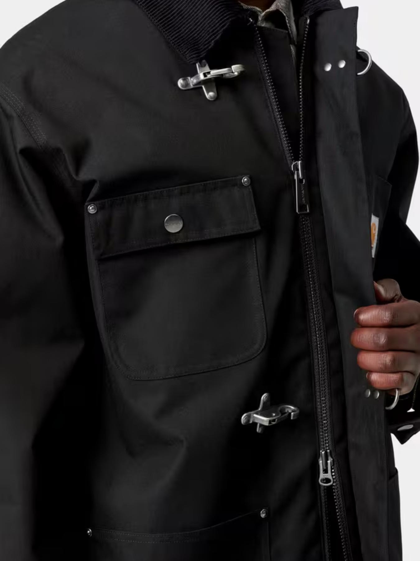 La giacca Adair Coat รจ realizzata in tela di nylon di medio peso con proprietร impermeabili e presenta una calda fodera matelassรฉ. ร dotata di chiusura con alamari e zip nascosta a due vie. Sul davanti รจ caratterizzata da quattro tasche applicate, una delle quali con patta e bottone. La giacca presenta inoltre colletto in velluto a coste e polsini regolabili. Il design รจ impreziosito da unโetichetta quadrata in tessuto.