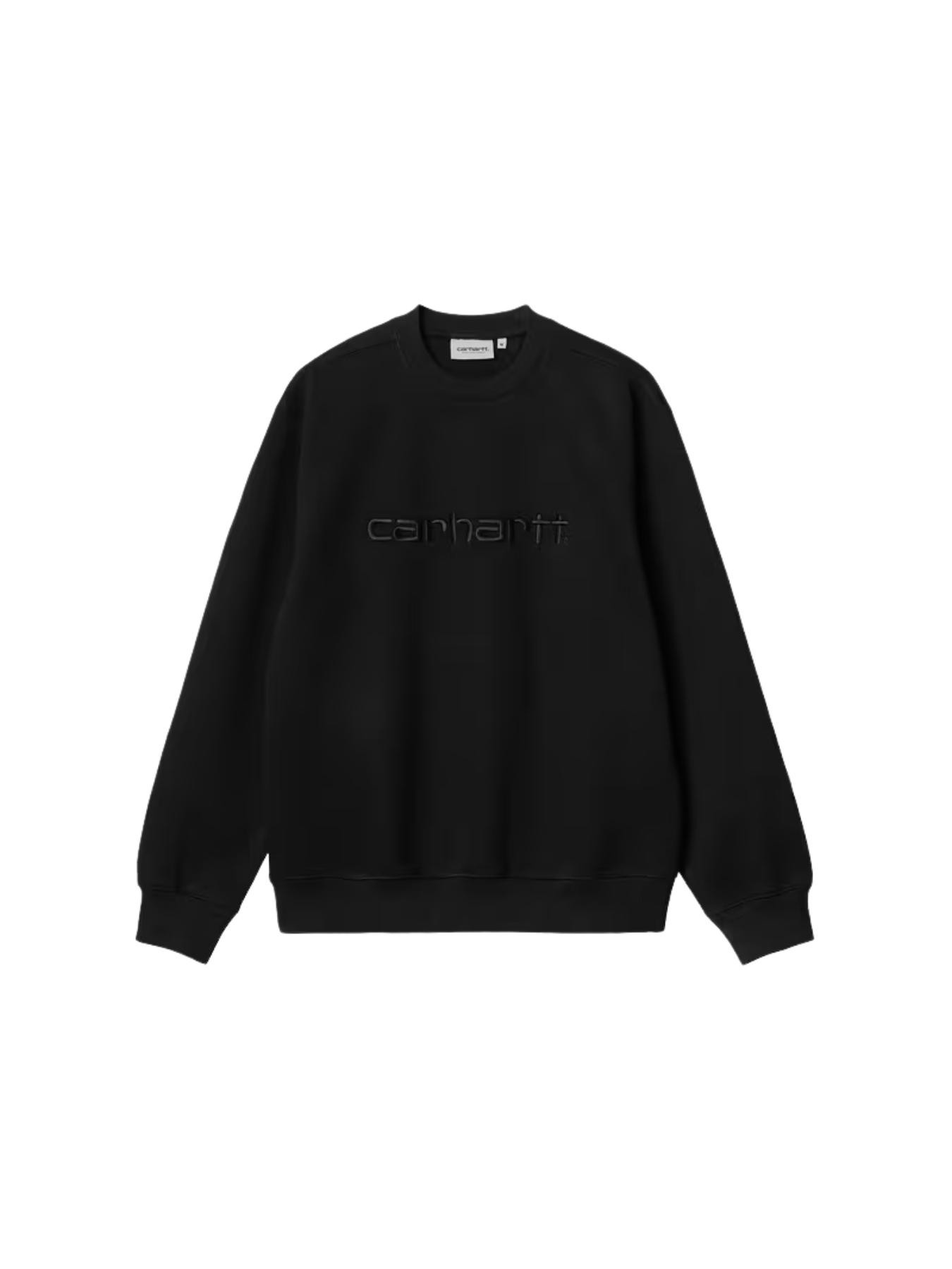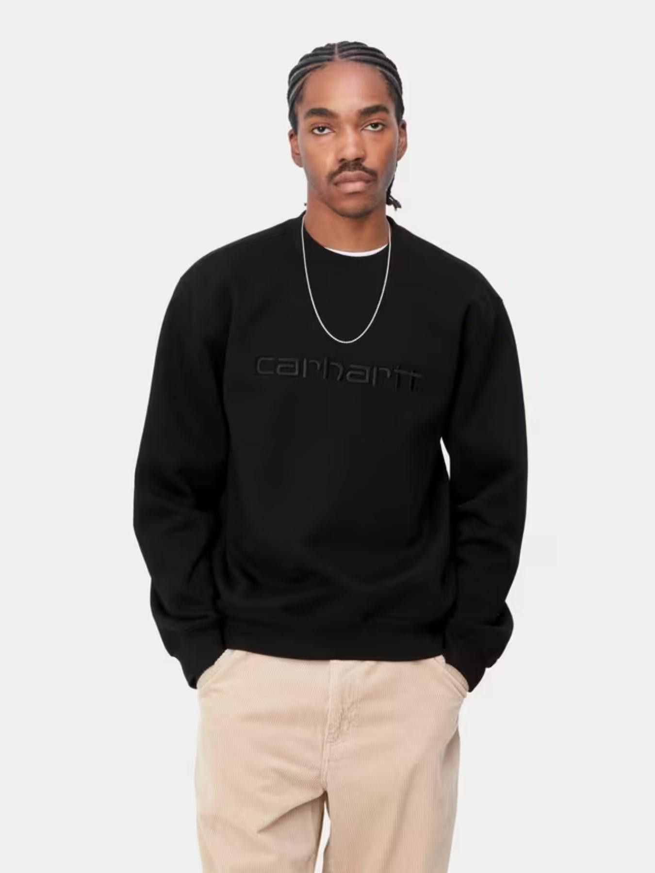 La Carhartt Sweatshirt รจ caratterizzata da vestibilitร ampia ed รจ realizzata in pesante jersey di cotone-poliestere spazzolato per un effetto felpato. Presenta inoltre colletto, orlo e polsini a coste. Sul petto campeggia un ricamo del logo.