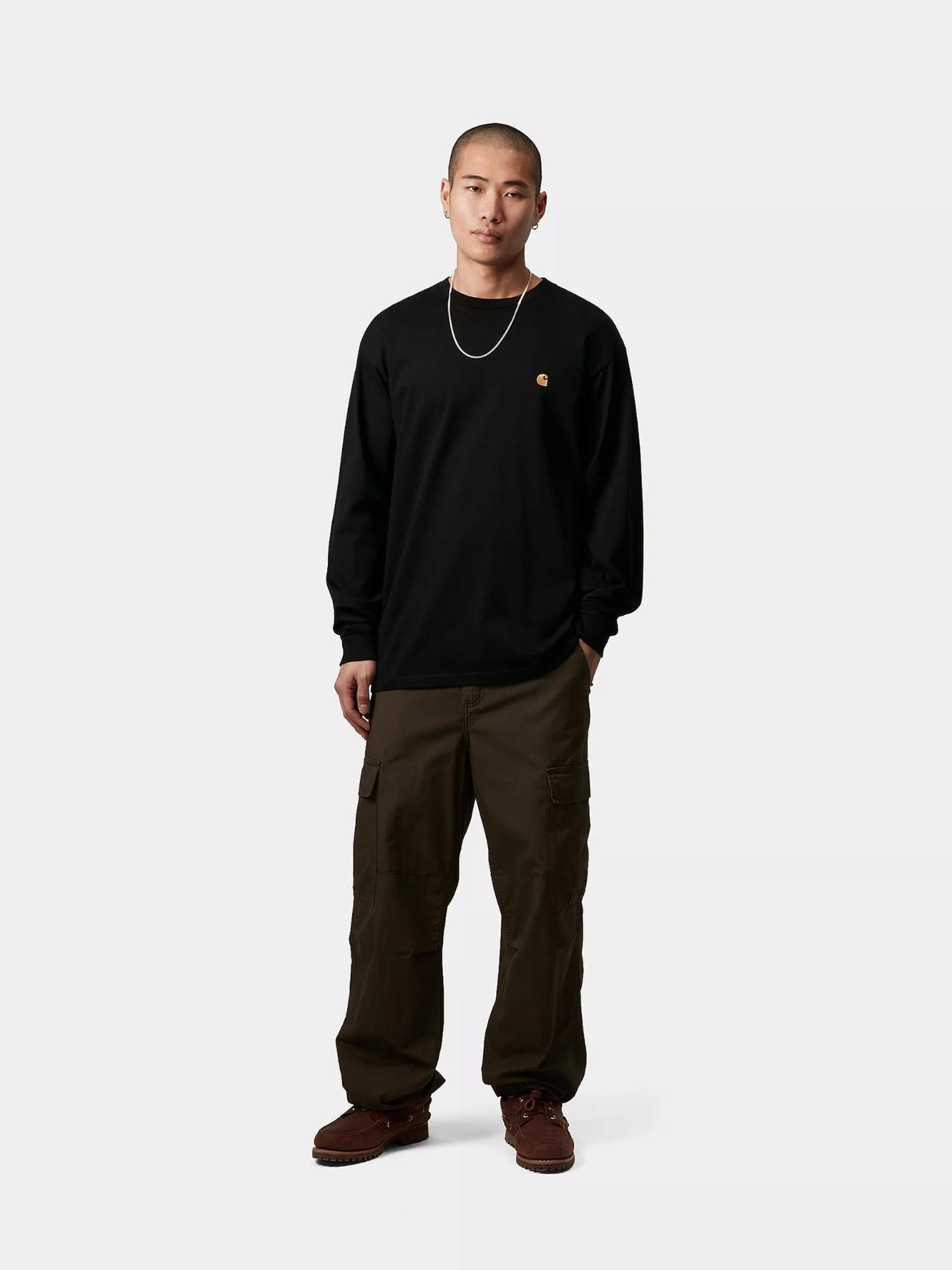 La L/S Chase T-Shirt รจ realizzata in jersey di cotone pettinato. Fa parte del nostro Chase Program, caratterizzato da modelli con tessuto base in jersey, e presenta la “C” di Carhartt ricamata sul lato sinistro del petto. Loose fit.