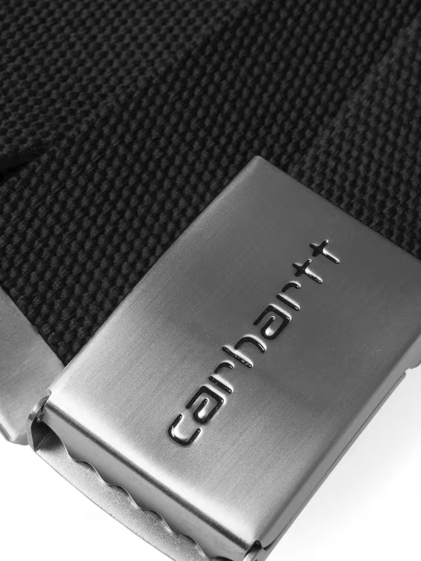 La Clip Belt Chrome รจ realizzata in resistente canvas di poliestere e presenta una fibbia a clip di metallo intercambiabile con marchio Carhartt WIP fustellato a contrasto. Taglia unica.