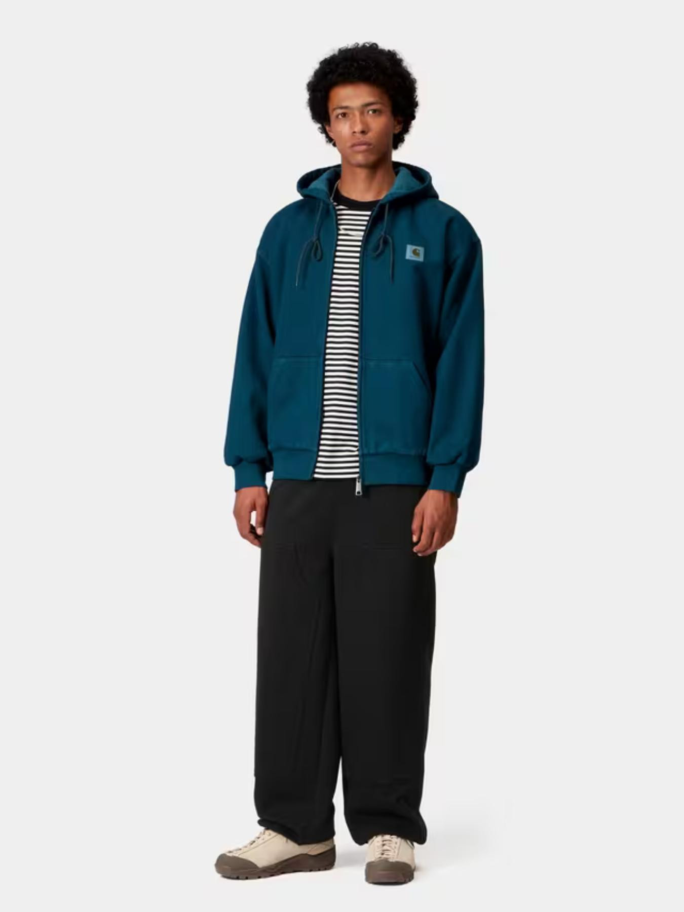 I Double Knee Sweat Pant sono realizzati in pesante jersey di poliestere-cotone e caratterizzati da gamba ampia. Ispirati ai classici modelli da lavoro, i pantaloni sono dotati di rinforzi allโaltezza del ginocchio. I pantaloni presentano inoltre vita e apertura della gamba regolabili. Sul dietro sono impreziositi da unโetichetta quadrata ricamata.