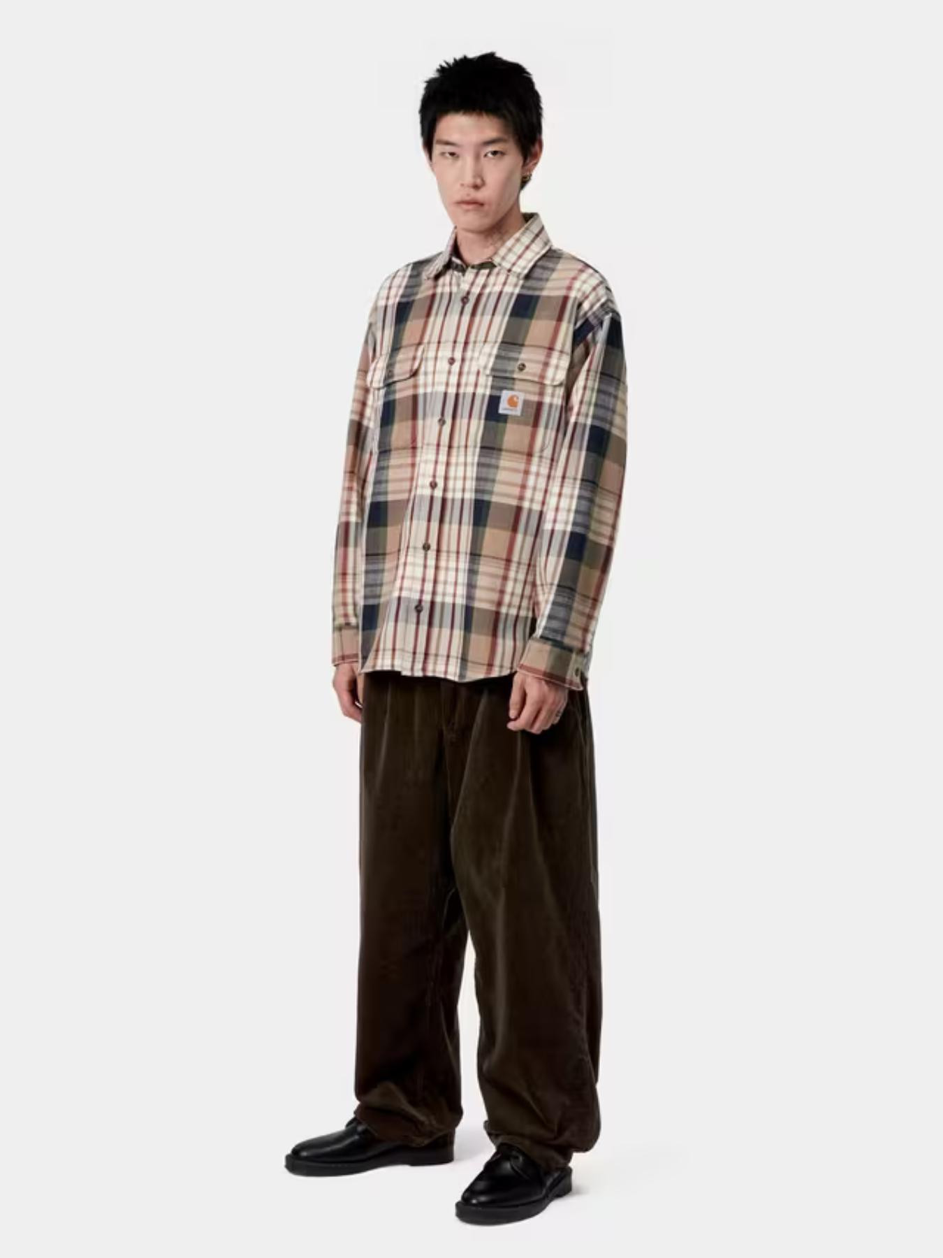 Gli Evan Pant sono realizzati in velluto di cotone di medio peso a coste larghe e presentano gamba larga e affusolata. I pantaloni presentano inoltre doppie pinces sul davanti per una vestibilità più comoda in corrispondenza delle gambe. La parte posteriore è impreziosita da un’etichetta quadrata in tessuto.