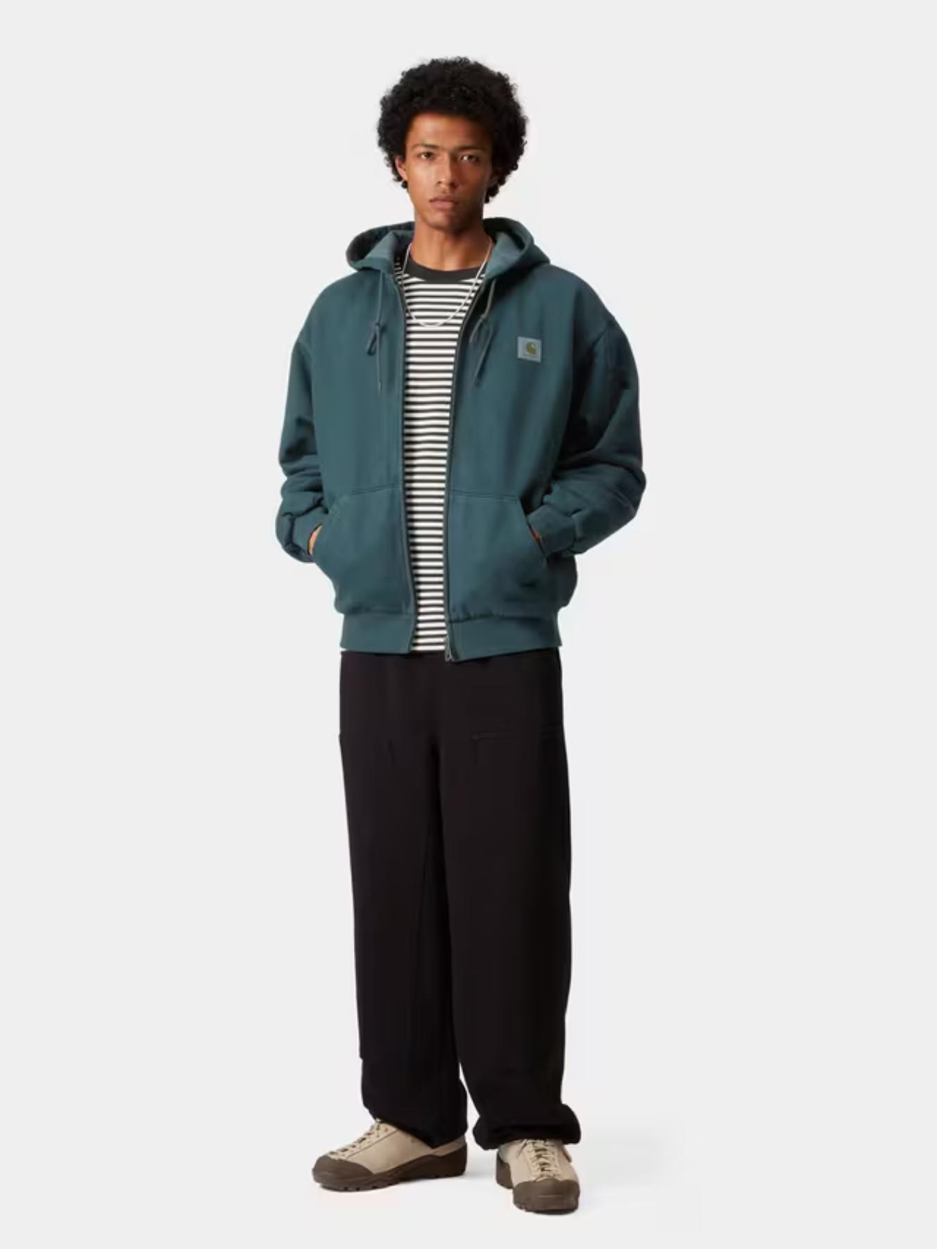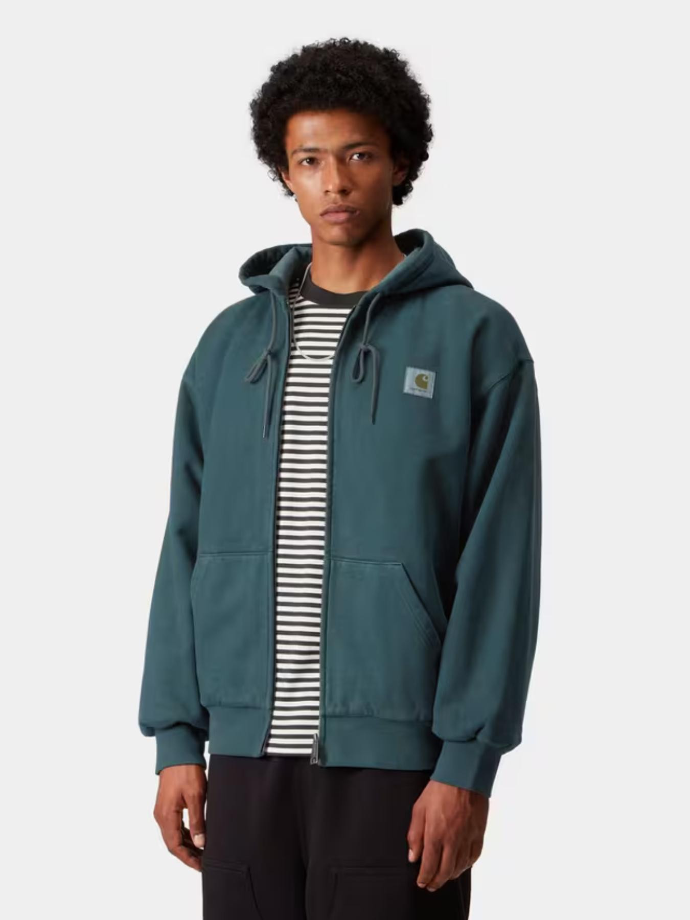La Hooded Vista Jacket รจ realizzata in pesante jersey di cotone spazzolato. Il capo รจ tinto con pigmenti per un colore piรน intenso e testurizzato. Il capo si ispira alla nostra classica Active Jacket ed รจ dotato di fodera matelassรฉ allโinterno, nelle maniche e nel cappuccio. Presenta inoltre tasca a marsupio. Il taglio โa palloncinoโ la rende piรน ampia e comoda, ed รจ contraddistinta da spalle scese e polsini a coste.