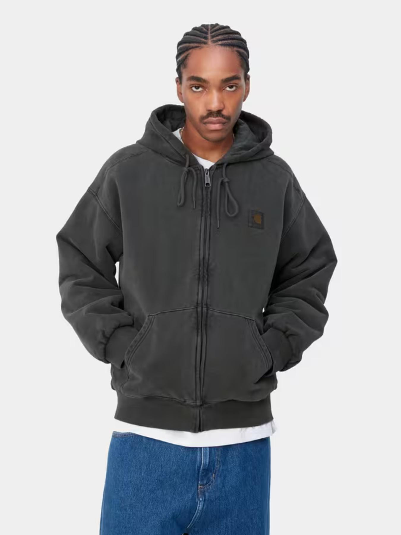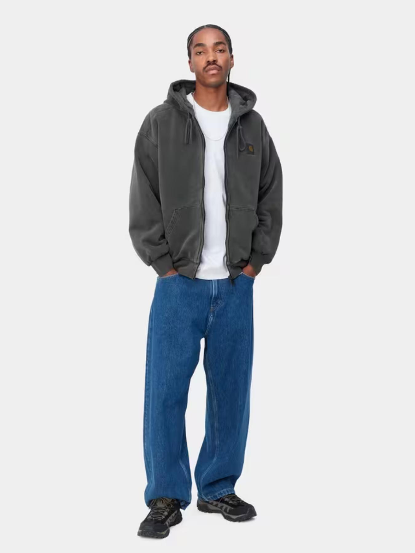 La Hooded Vista Jacket รจ realizzata in pesante jersey di cotone spazzolato. Il capo รจ tinto con pigmenti per un colore piรน intenso e testurizzato. Il capo si ispira alla nostra classica Active Jacket ed รจ dotato di fodera matelassรฉ allโinterno, nelle maniche e nel cappuccio. Presenta inoltre tasca a marsupio. Il taglio โa palloncinoโ la rende piรน ampia e comoda, ed รจ contraddistinta da spalle scese e polsini a coste.