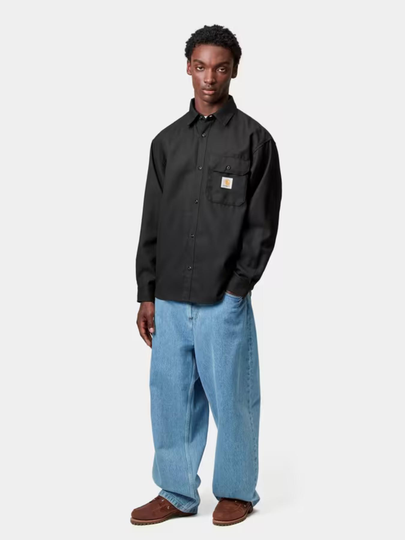 La L/S Ray Shirt รจ realizzata in twill di poliestere e lana di medio peso e caratterizzata da vestibilitร ampia. La camicia presenta bottoni sul davanti e una tasca sul petto. Rifinisce il modello unโetichetta quadrata in tessuto.