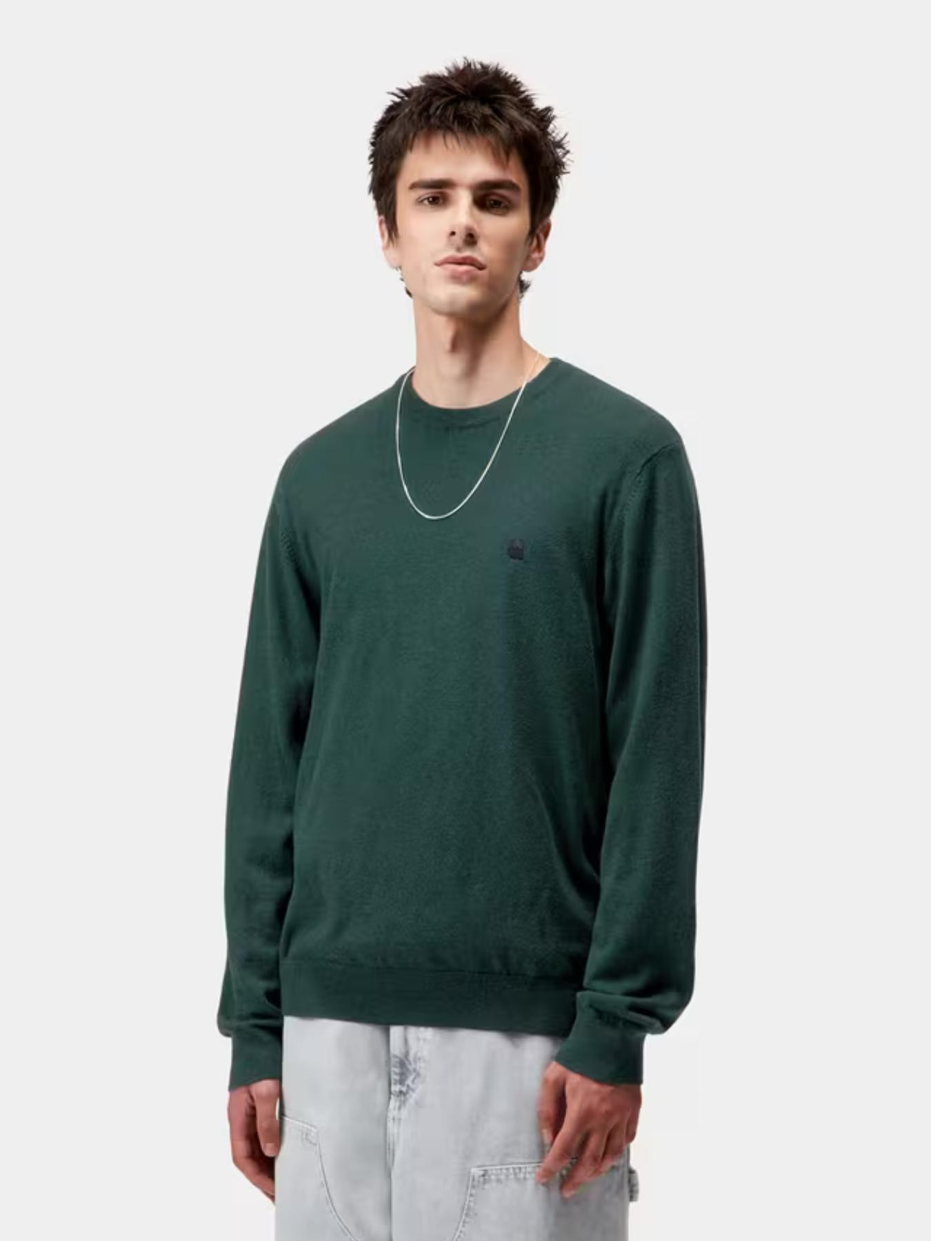 Realizzata in un morbido misto di lana dโagnello e nylon, la Madison Sweater รจ un modello classico impreziosito da colletto, orlo e polsini a coste. La maglia รจ rifinita dal ricamo del logo โCโ di Carhartt WIP sul petto.