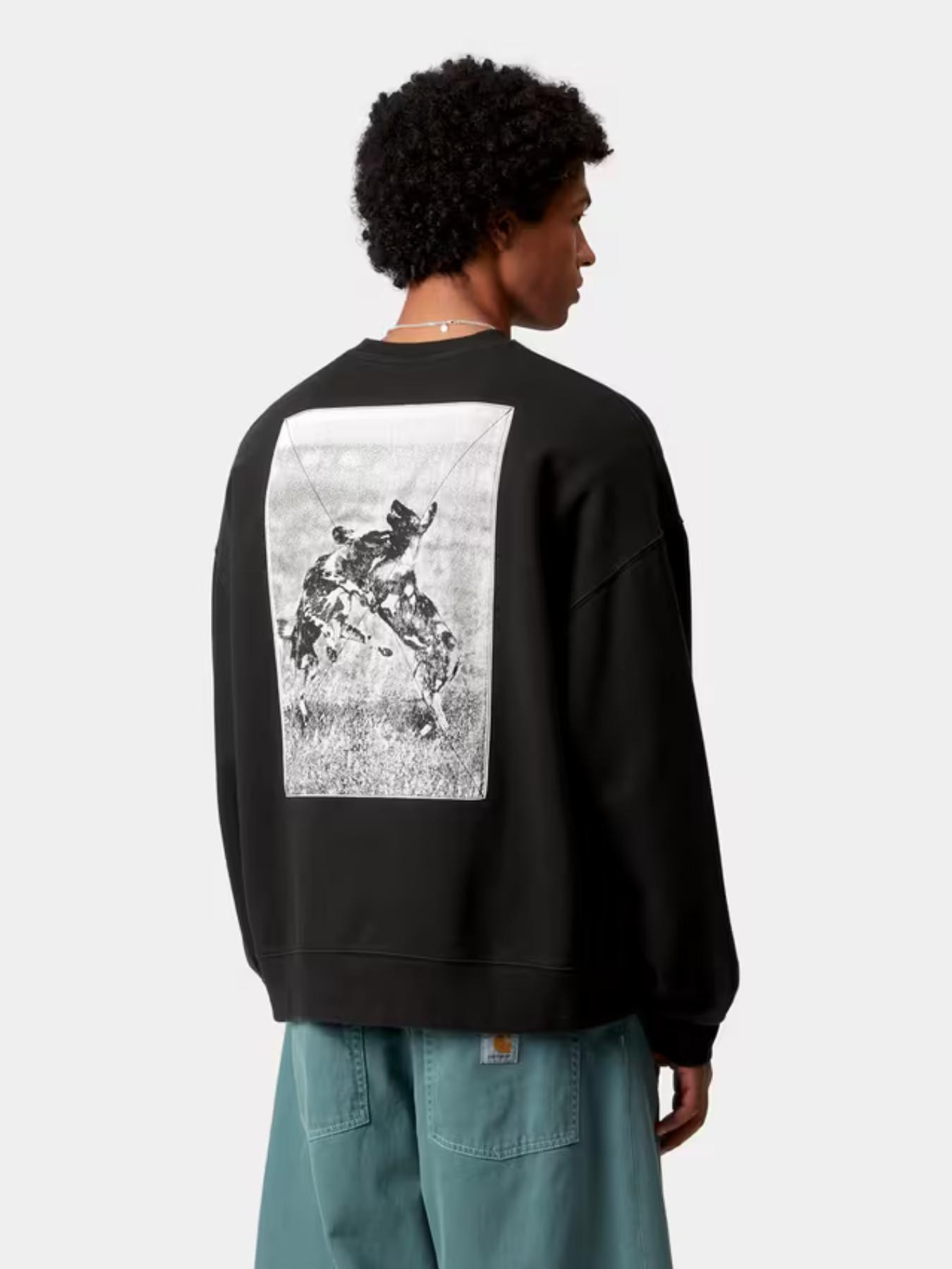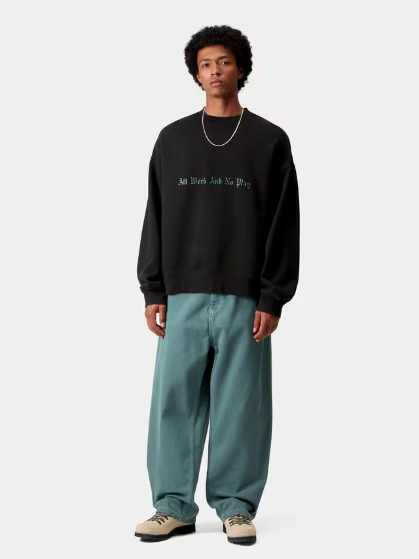 La No Play Sweatshirt รจ caratterizzata da vestibilitร ampia e comoda e realizzata in pesante jersey di poliestere-cotone spazzolato per un effetto felpato. Sul petto campeggia un ricamo grafico, sulla schiena un inserto grafico in popeline.