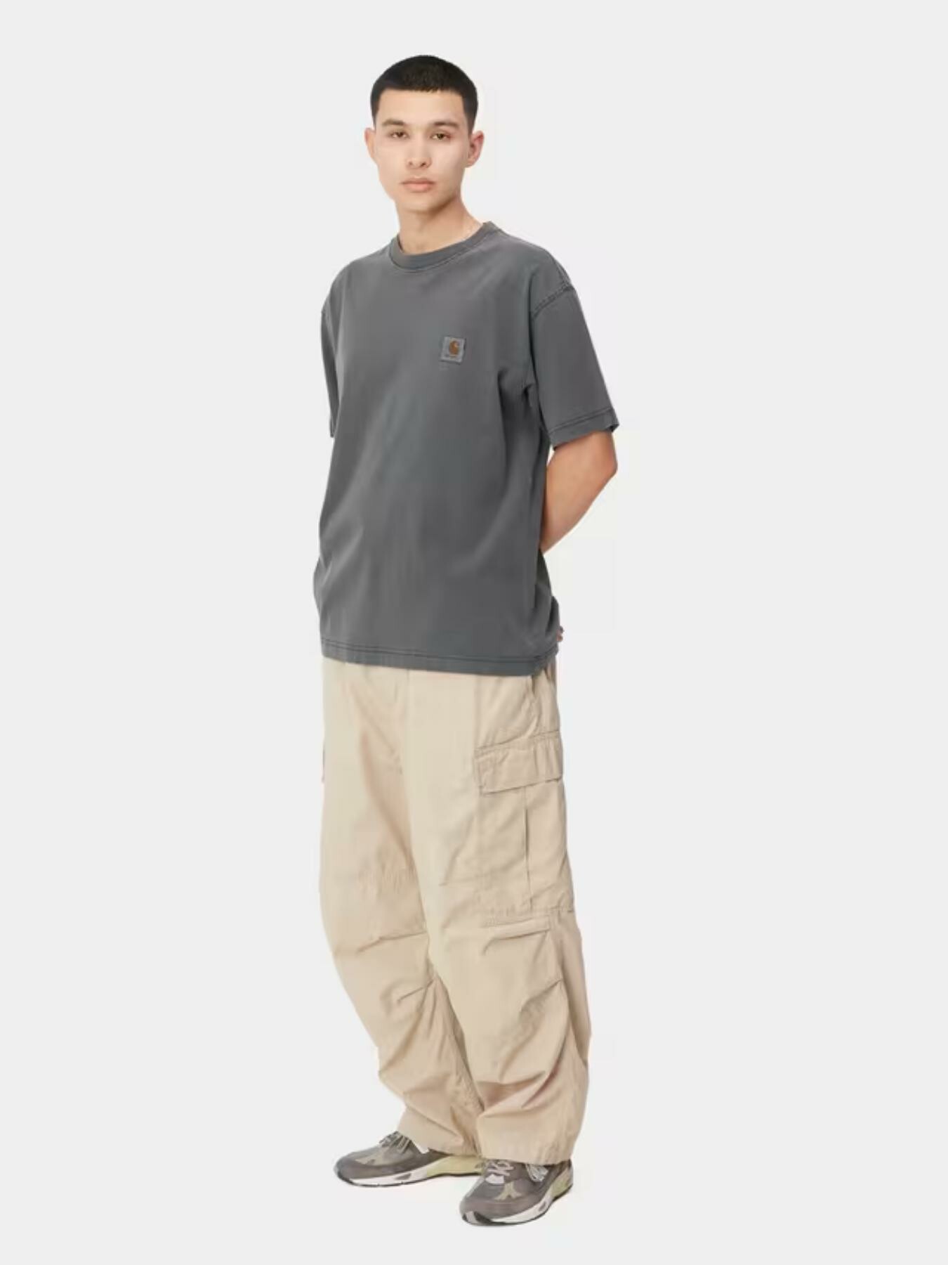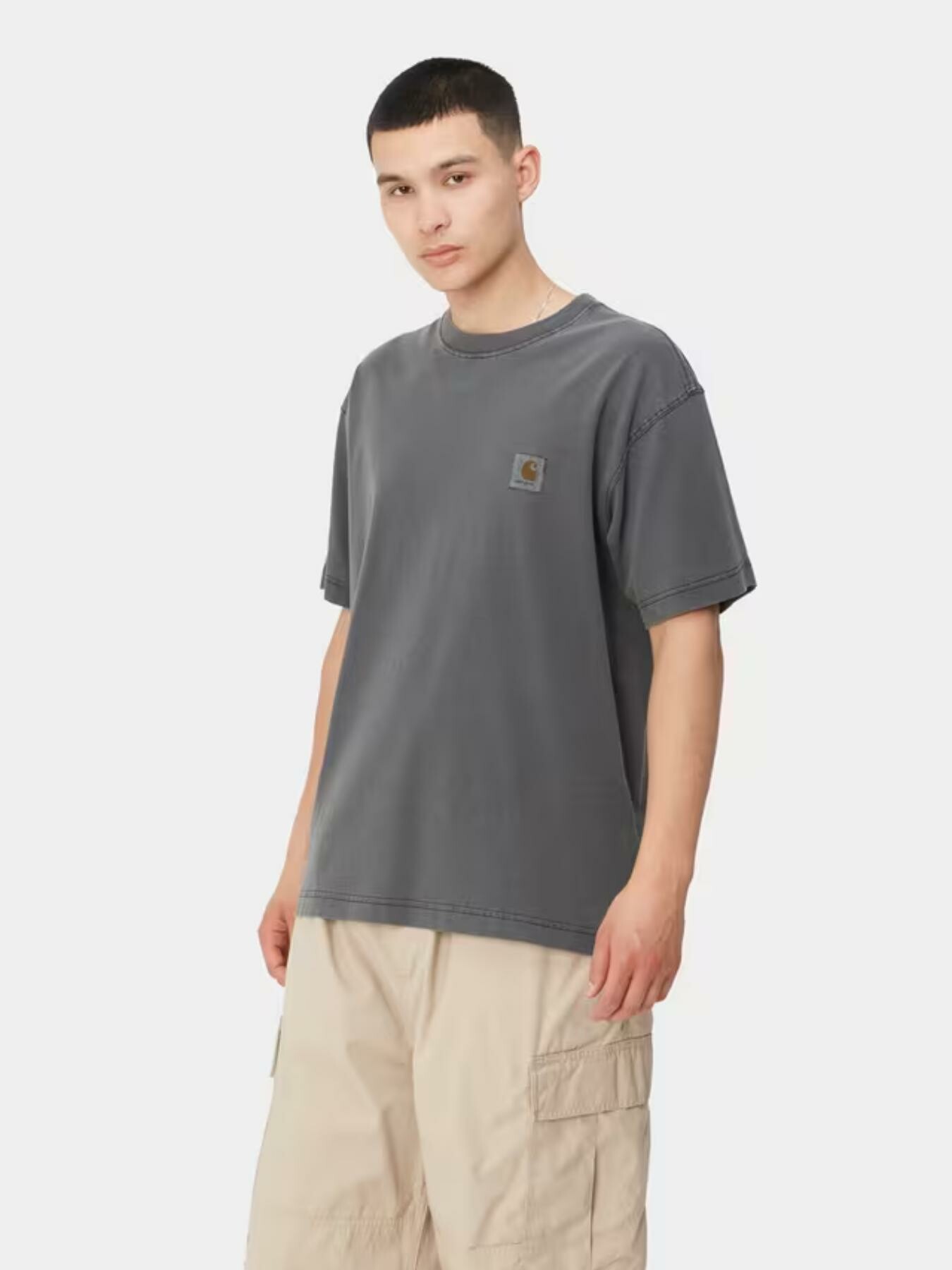 La S/S Nelson T-Shirt รจ realizzata in leggero jersey di cotone ed รจ caratterizzata da vestibilitร ampia. Il modello รจ stato tinto in capo per una maggiore morbidezza e una colorazione piรน articolata. Sul petto campeggia unโetichetta quadrata in tessuto, colorata dal processo di tintura.