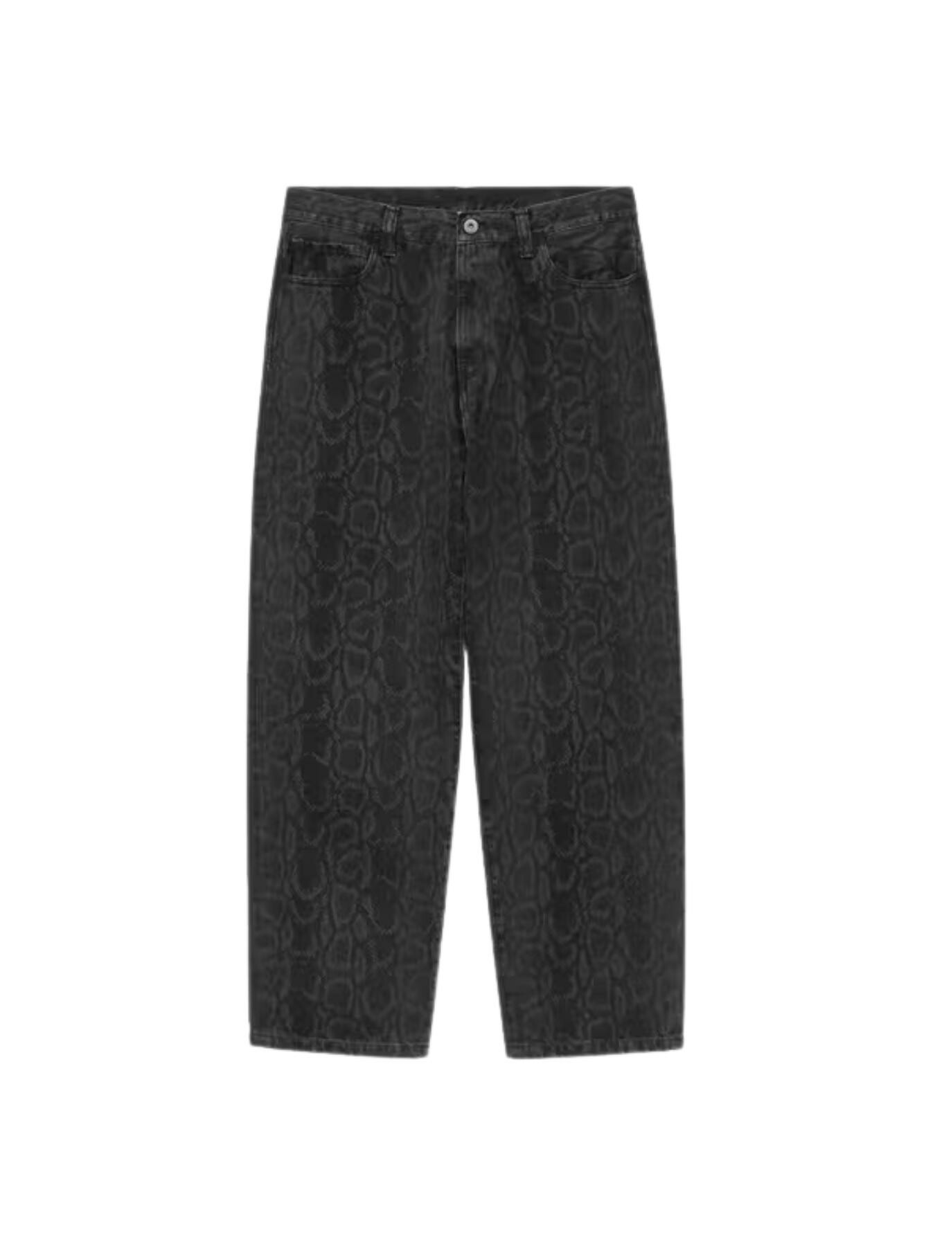 Gli Snake Landon Pant sono realizzati in pesante denim di cotone, caratterizzati da vestibilitร ampia e gamba affusolata e presentano un motivo mimetico allover pelle di serpente. I pantaloni sono inoltre impreziositi da impuntura a travetta e rivetti nei punti di maggior usura. Sulla tasca posteriore compare unโetichetta quadrata in pelle sintetica.