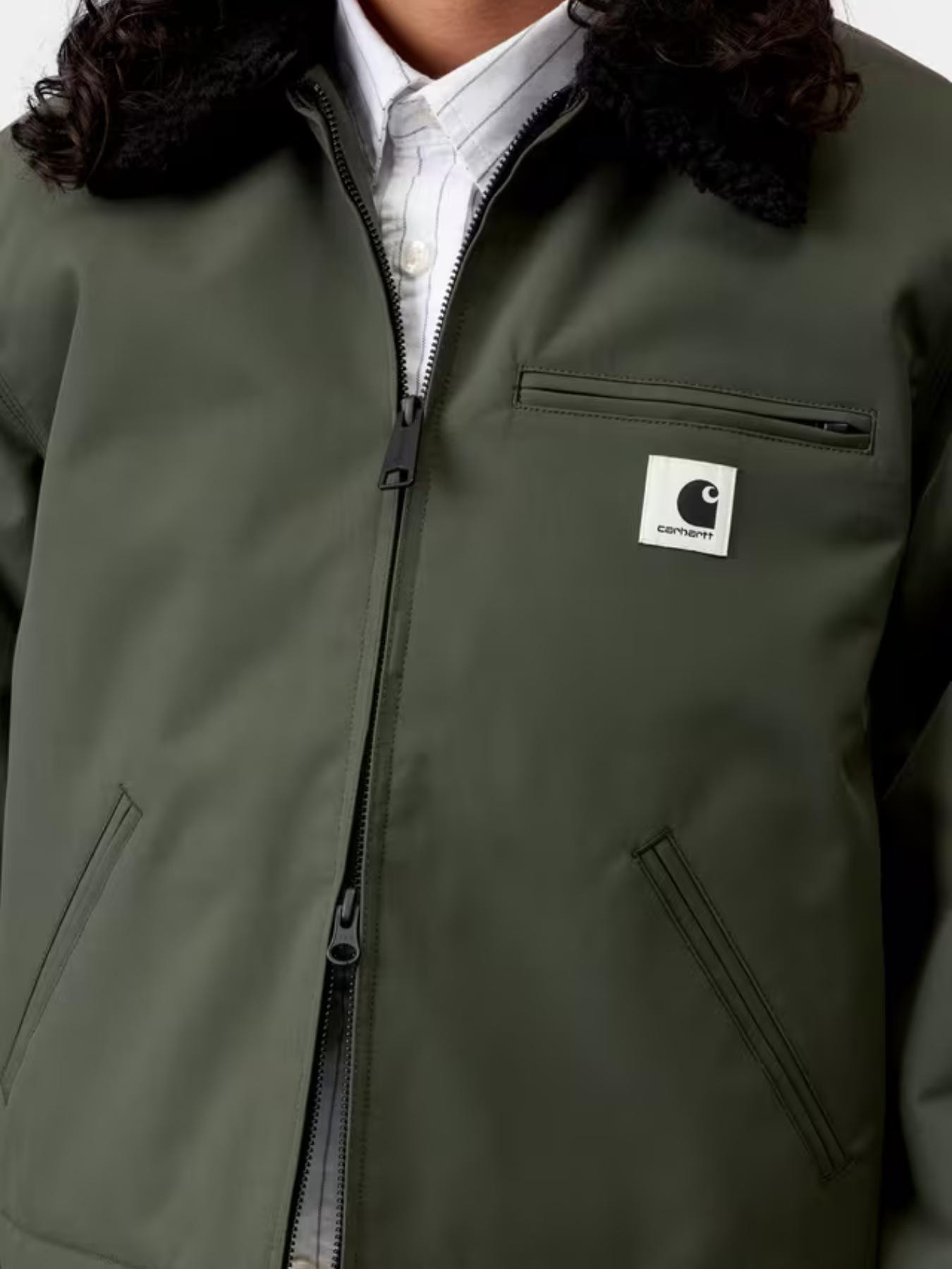La Women’s Newkirk Jacket รจ realizzata nella nostra originale vestibilitร ampia in tela di nylon di medio peso ed รจ foderata in taffetร di poliestere riciclato. La giacca presenta allโinterno una tasca in corrispondenza del petto e allโesterno una con zip. La giacca รจ inoltre impreziosita da colletto in velluto e tripla impuntura. Rifinisce il modello unโetichetta quadrata in tessuto.