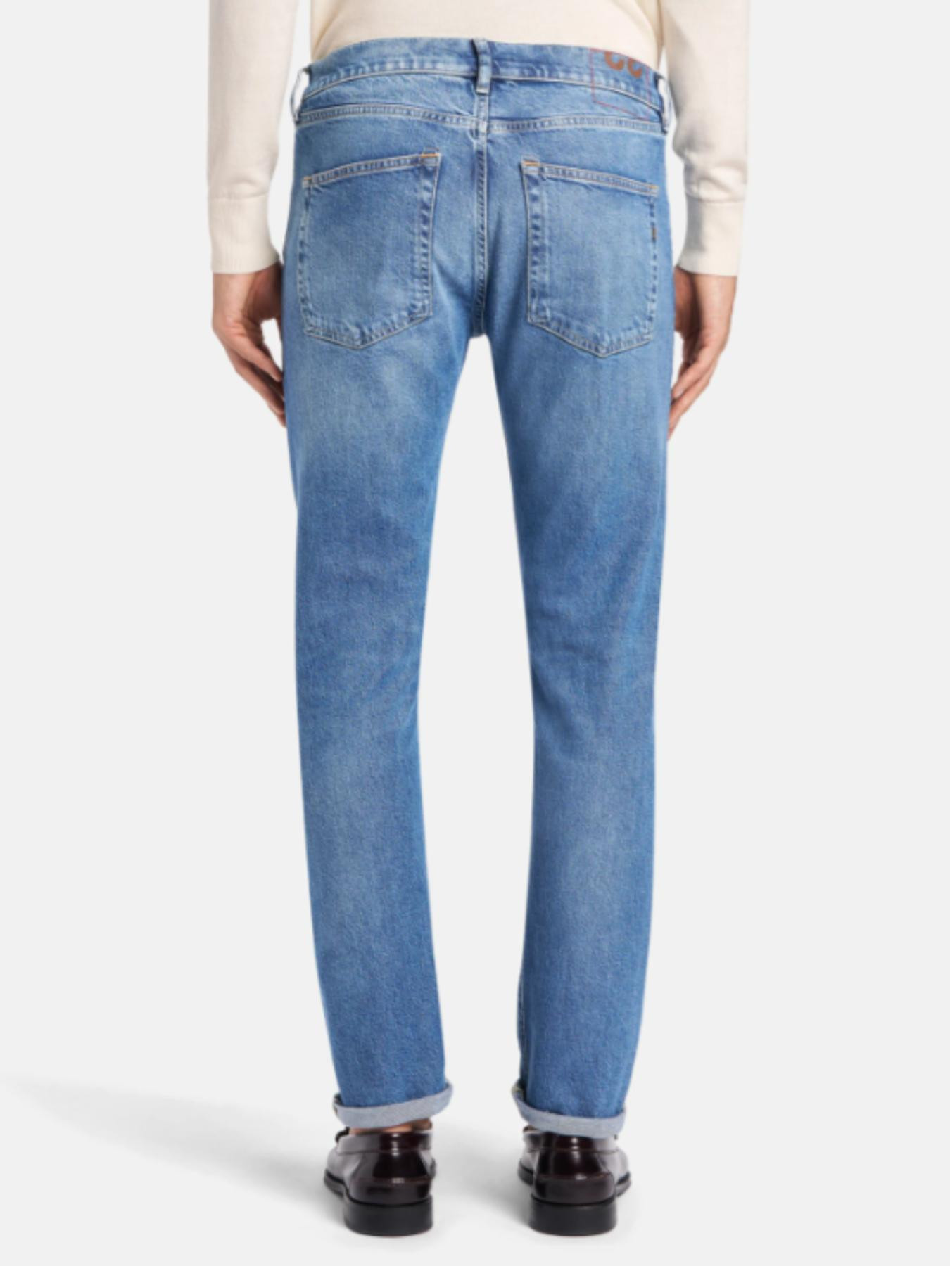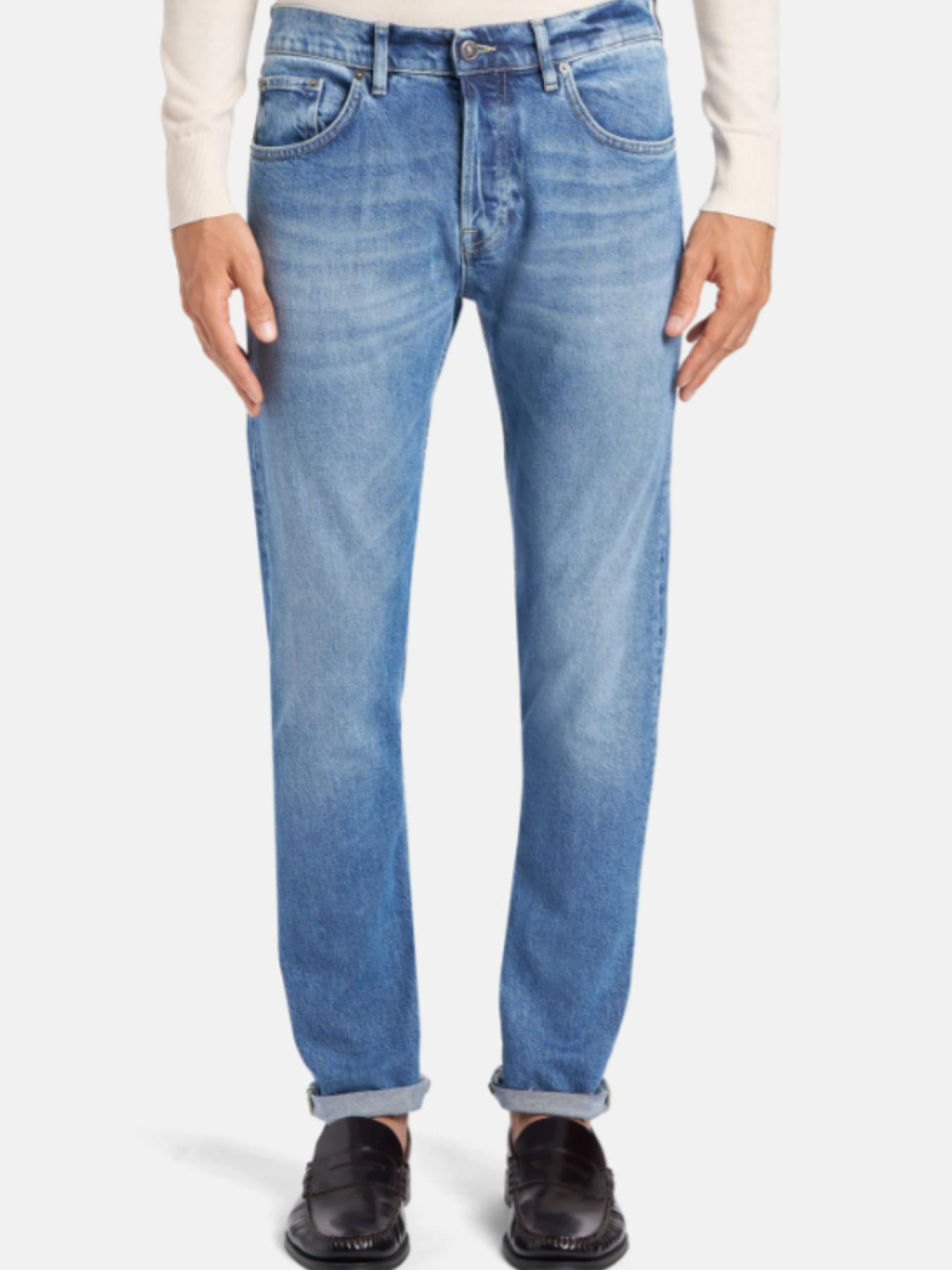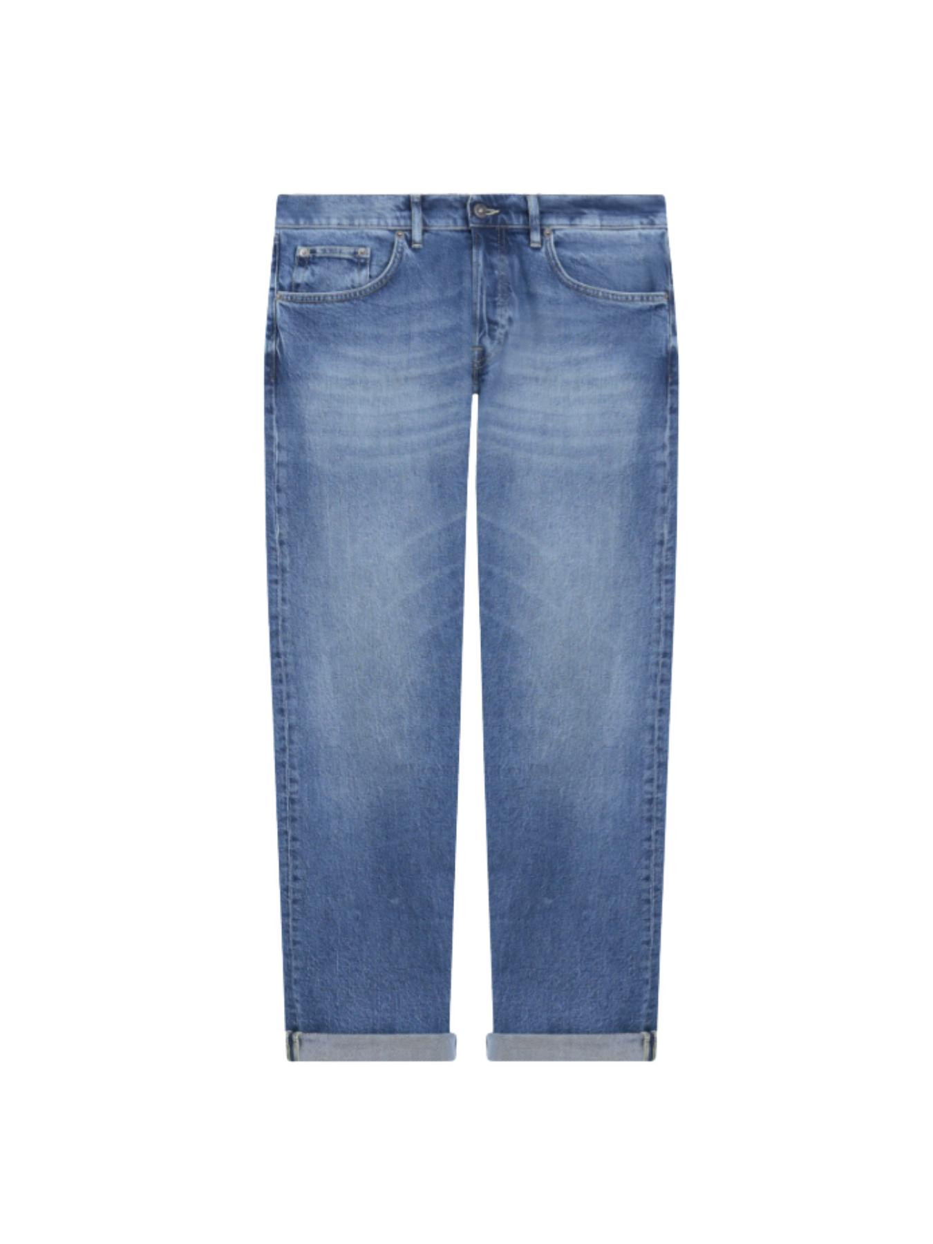 JEANS ICON CINQUE TASCHE REGULAR FIT, VITA REGOLARE. DENIM STRETCH BLU 14 OZ. LAVAGGIO CHIARO PULITO. LOGO DONDUP. MADE IN ITALY