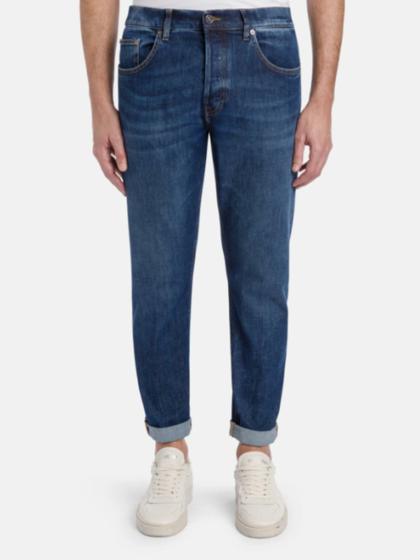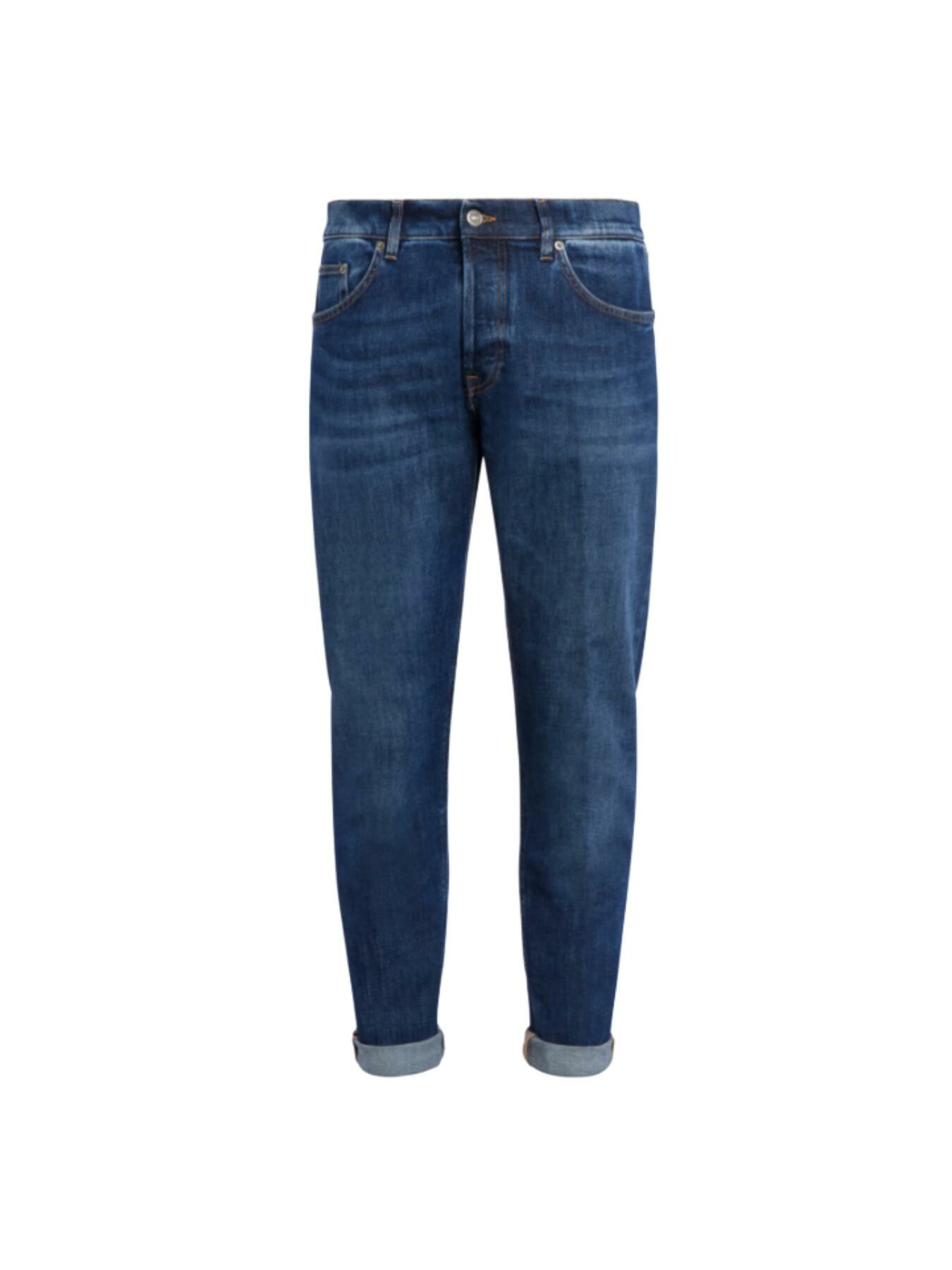 JEANS ICON CINQUE TASCHE REGULAR FIT, VITA REGOLARE. DENIM STRETCH BLUESIGN APPROVED BLU 11.50 OZ. LAVAGGIO MEDIO PULITO. LOGO DONDUP. MADE IN ITALY