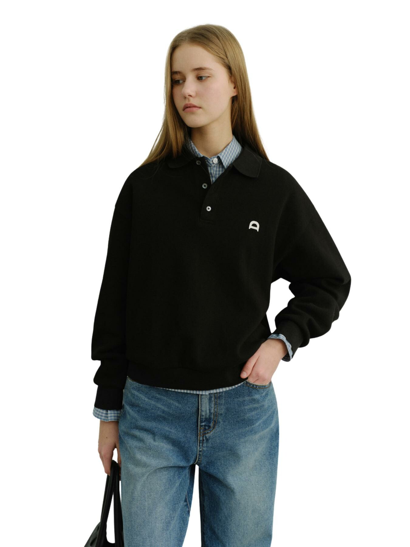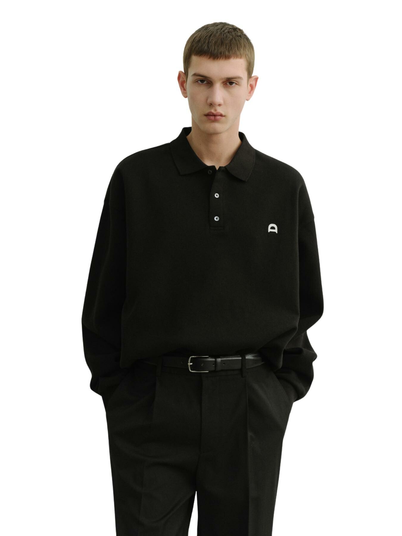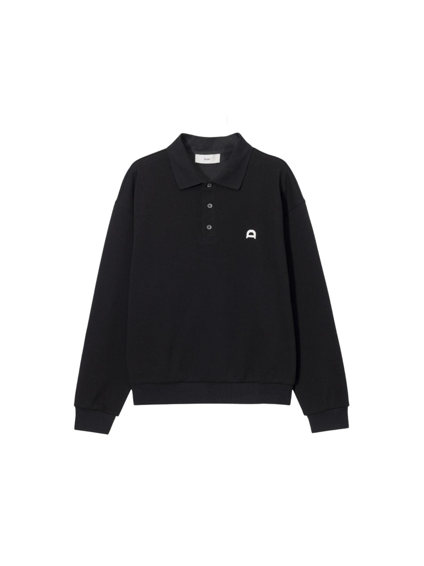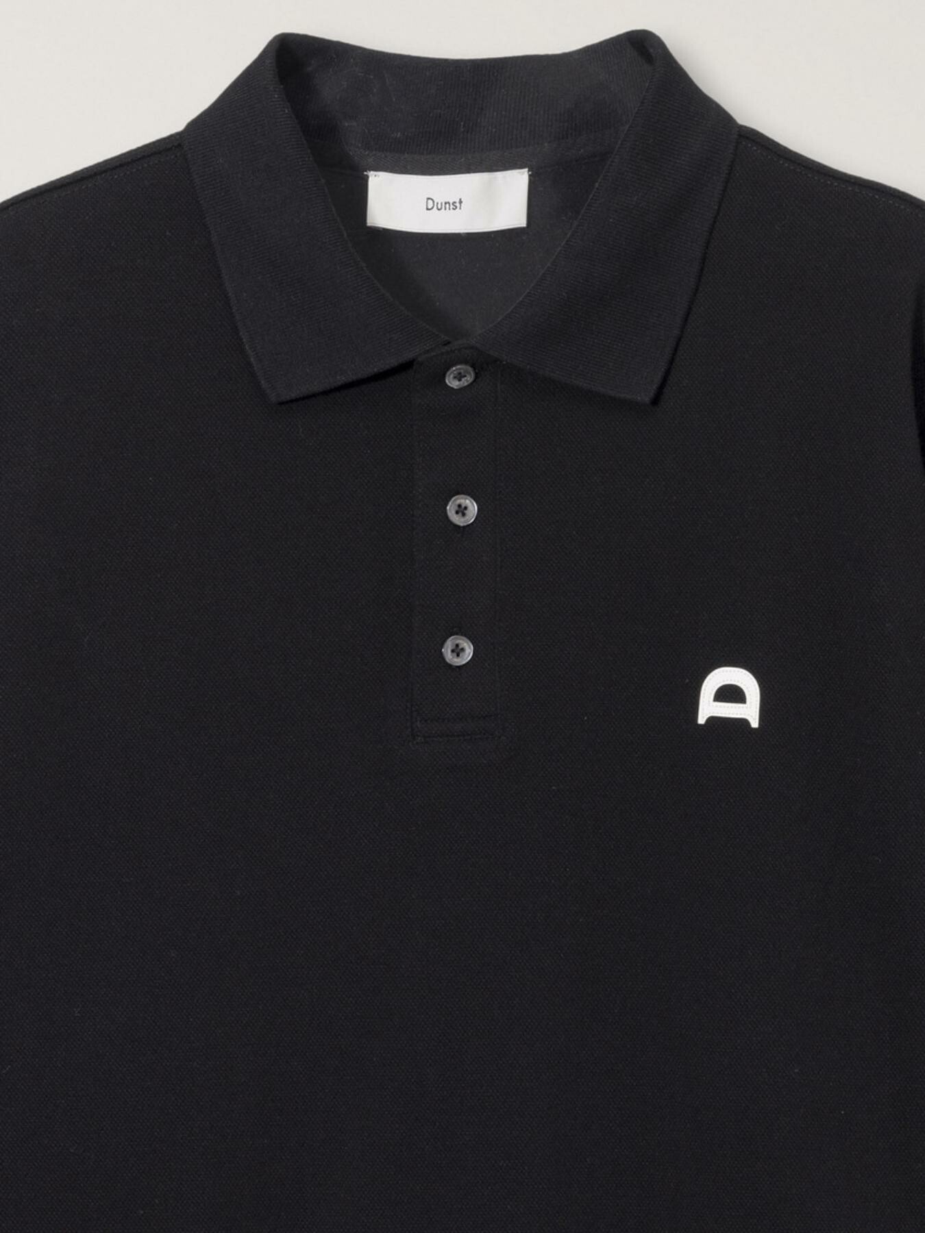 Dunst – UNISEX LEATHER LOGO COLLARED T-SHIRT BLACK
