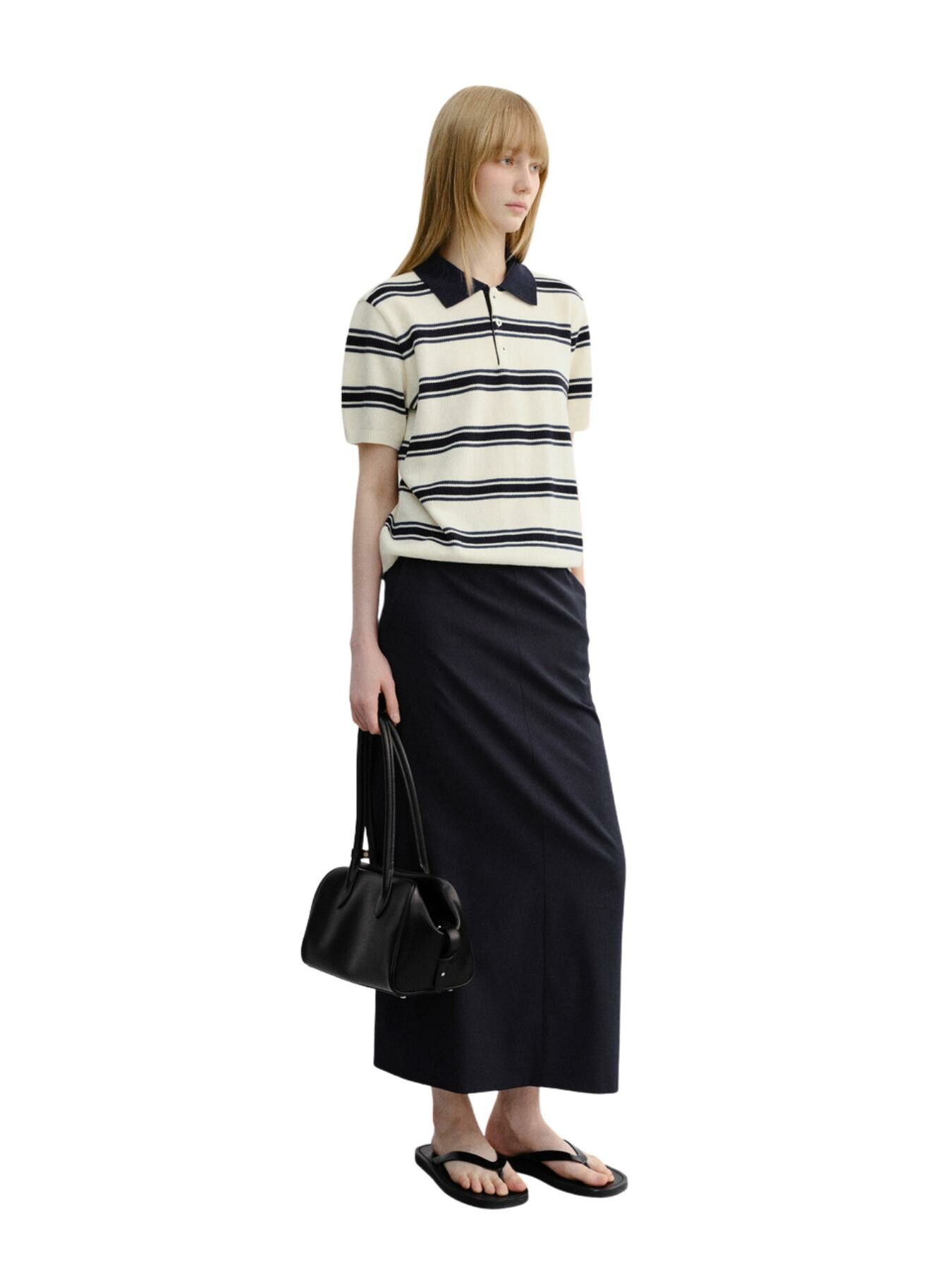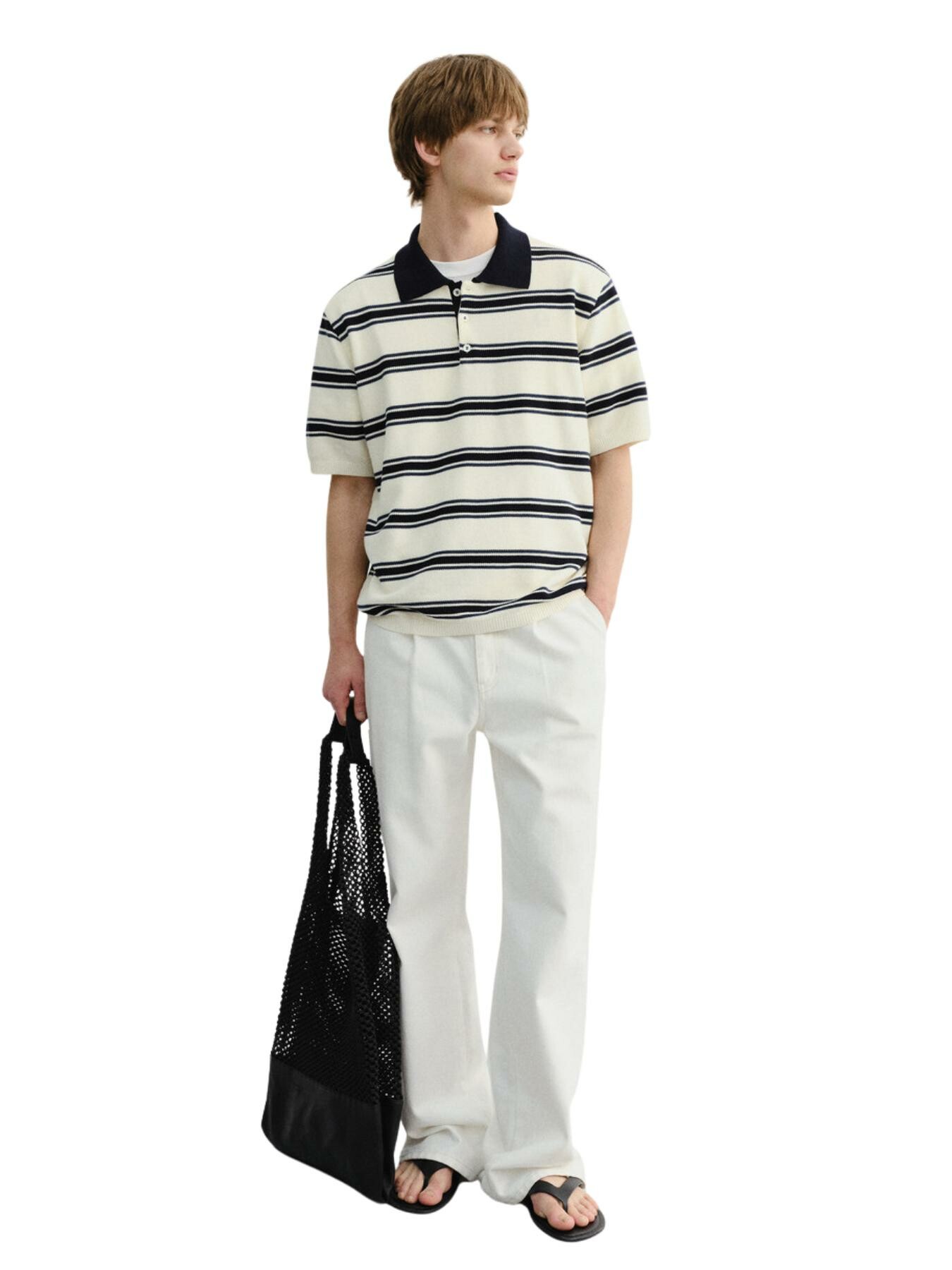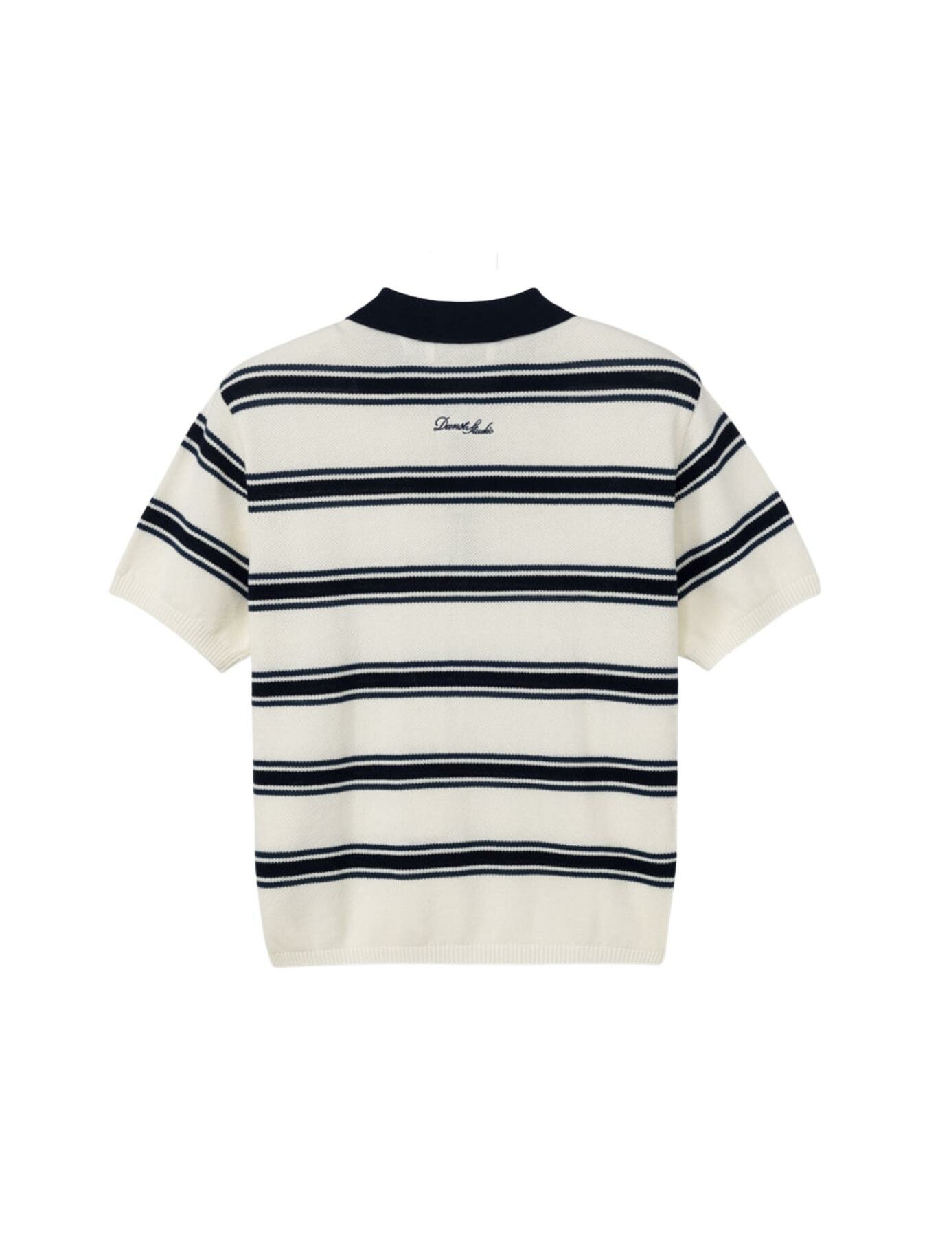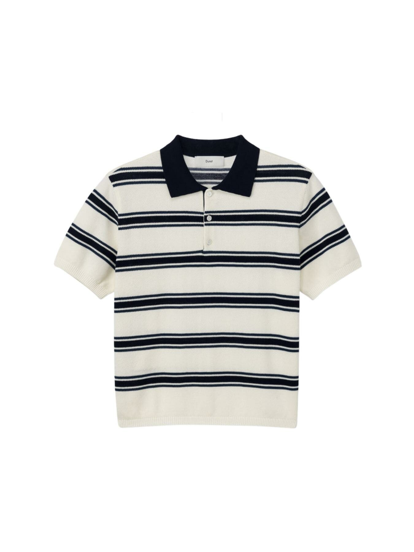 Dunst – UNISEX MULTI STRIPED POLO KNIT CREAM NAVY