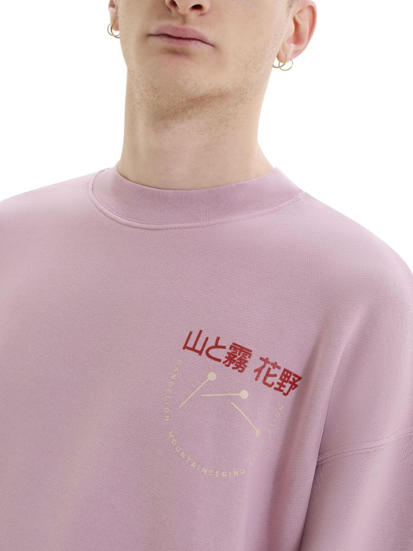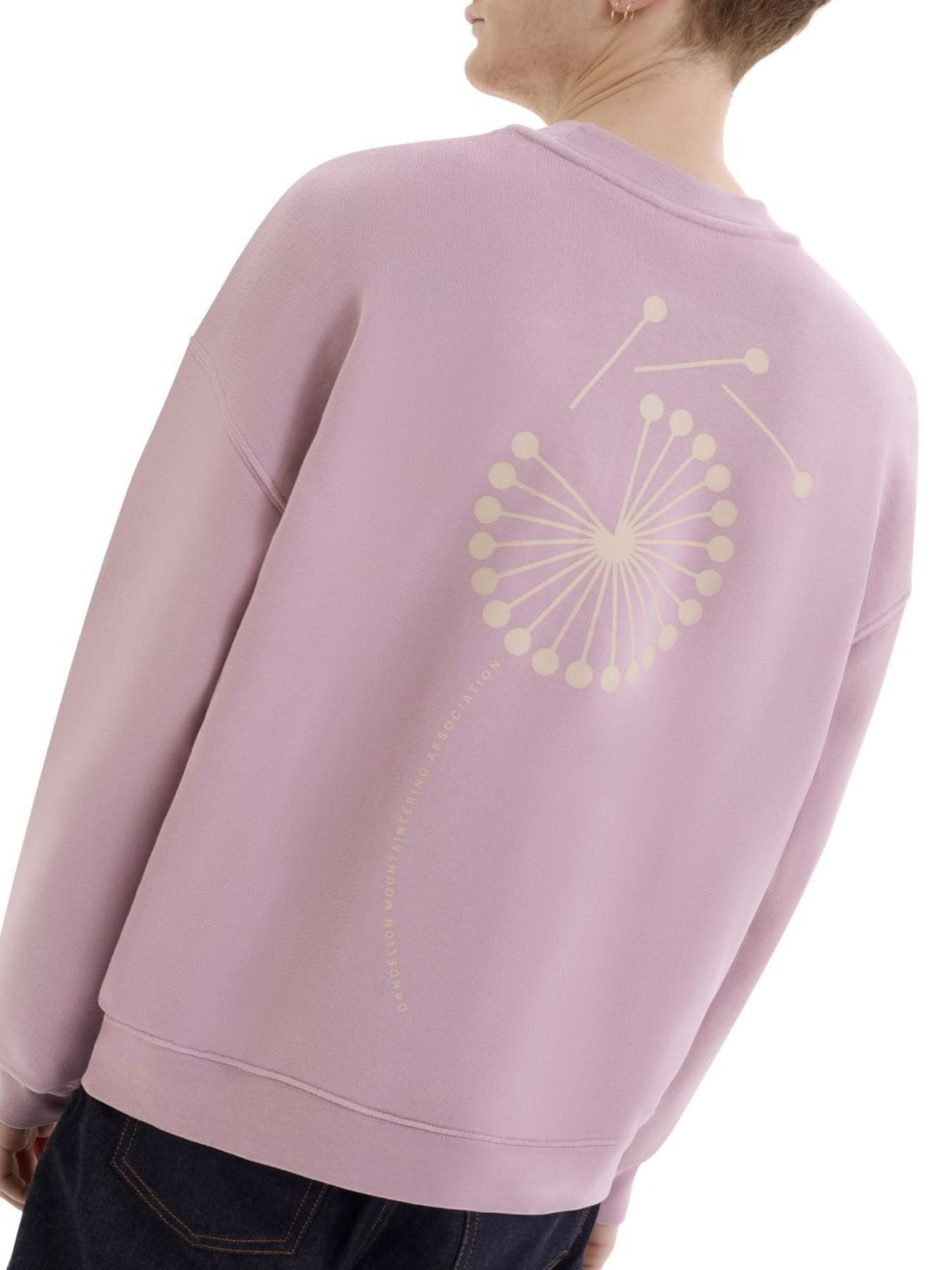 Morbida e versatile, la felpa girocollo viene proposta con proporzioni oversize, linea girocollo e una stampa personalizzata al petto. Spalla scesa e dettagli a costine sui bordi.