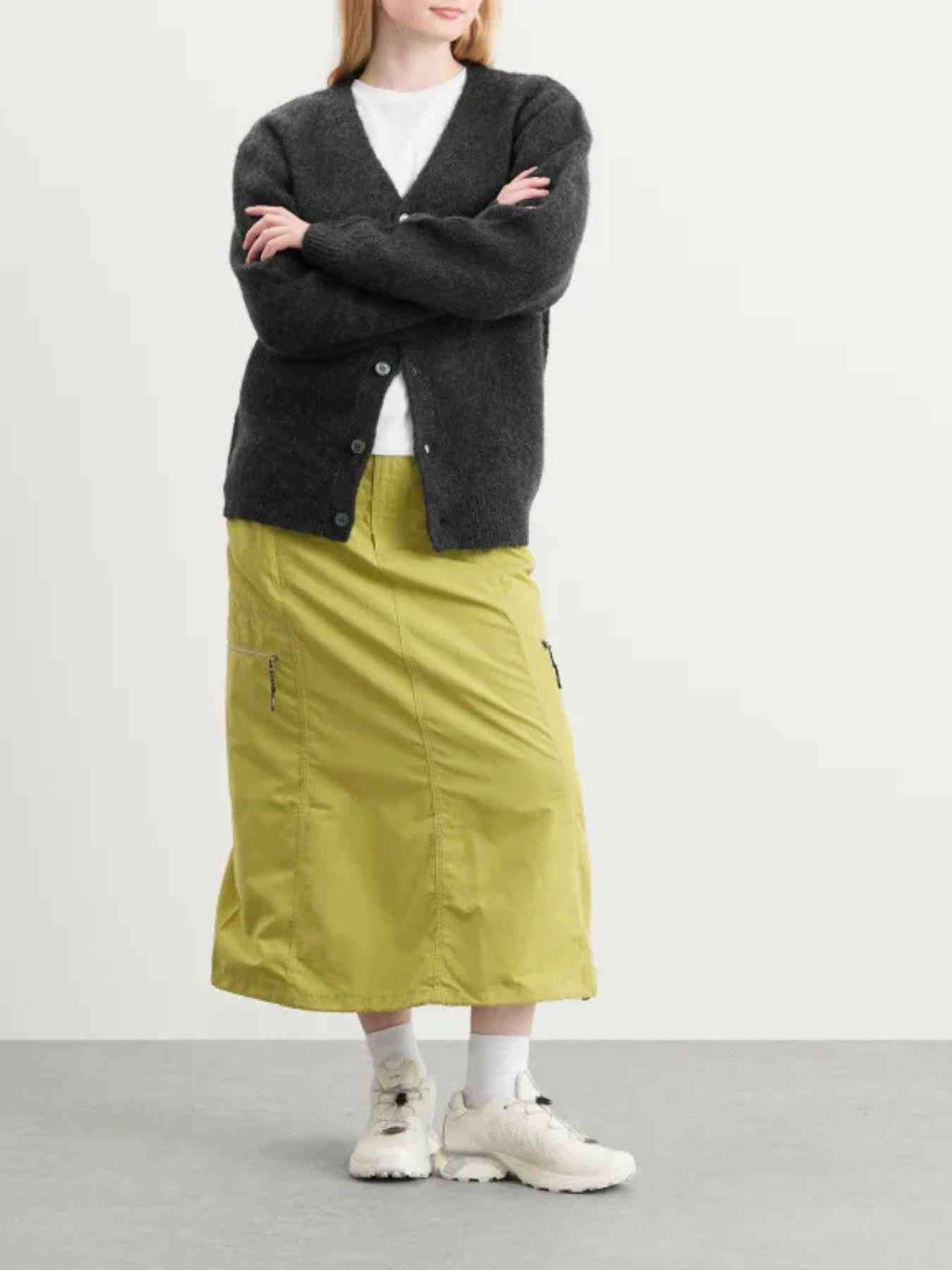 Il cardigan in mohair Gramicci รจ per chi capisce che a volte il capo migliore da indossare a strati รจ quello che ti fa sentire come se fossi diventata per sbaglio la persona piรน interessante in un jazz cafรฉ, anche quando stai solo cercando di stare al caldo mentre prendi decisioni discutibili. Questo filato misto mohair offre quella texture super-shaggy che รจ fondamentalmente un lusso indossabile, con una patta con bottoni che aggiunge struttura sufficiente a mantenere un look civile, pur mantenendo quell’energia morbida e rilassata che dice: “Ho un gusto eccellente sia per i tessuti che per le registrazioni bebop vintage”. ร un vero e proprio pezzo di lusso rilassato che funziona sia che tu stia canalizzando l’energia sofisticata di un bar o che tu abbia semplicemente bisogno di qualcosa con abbastanza texture e carattere da far sembrare che anche le attivitร piรน banali meritino una colonna sonora con contrabbasso e assoli di sassofono contemplativi. Mentre altri cardigan sono impegnati a essere pratici o lussuosi, questo offre discretamente entrambe le cose con il tipo di eccellenza del mohair shaggy che dimostra che a volte l’abbigliamento migliore รจ semplicemente fatto di ottimi materiali disposti in modo ponderato.