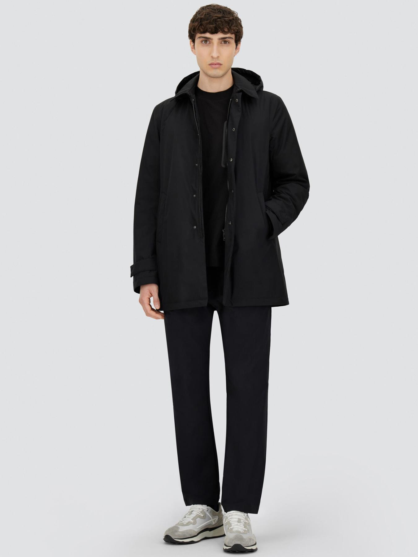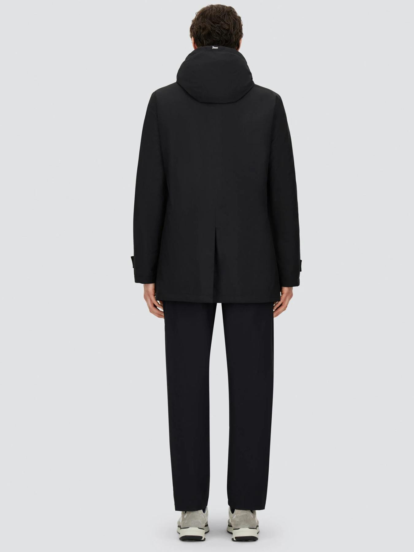 Parka lungo in microfibra di poliestere accoppiato con membrana ad alte performance che offre traspirabilità e resistenza fino a 20.000 colonne d’acqua.