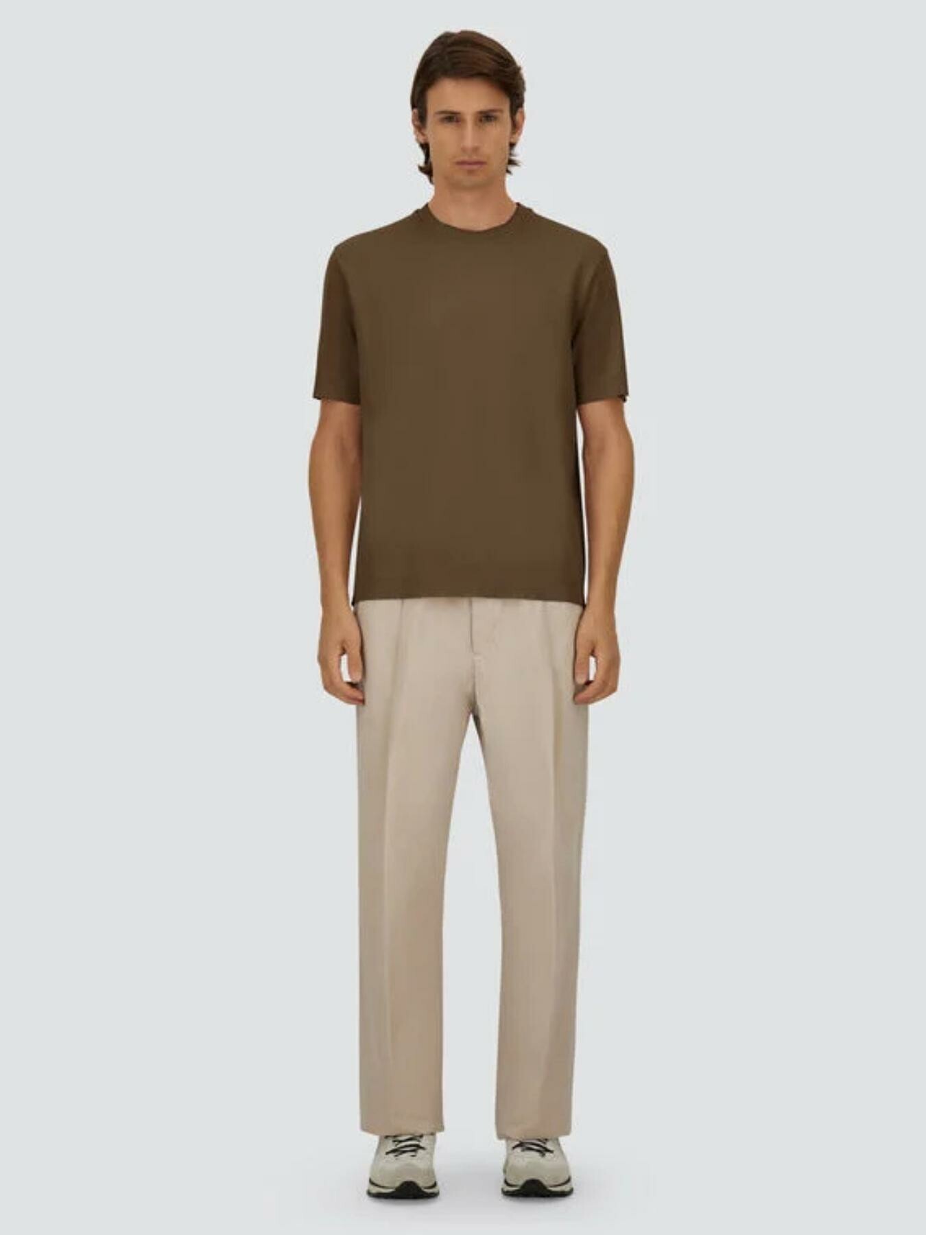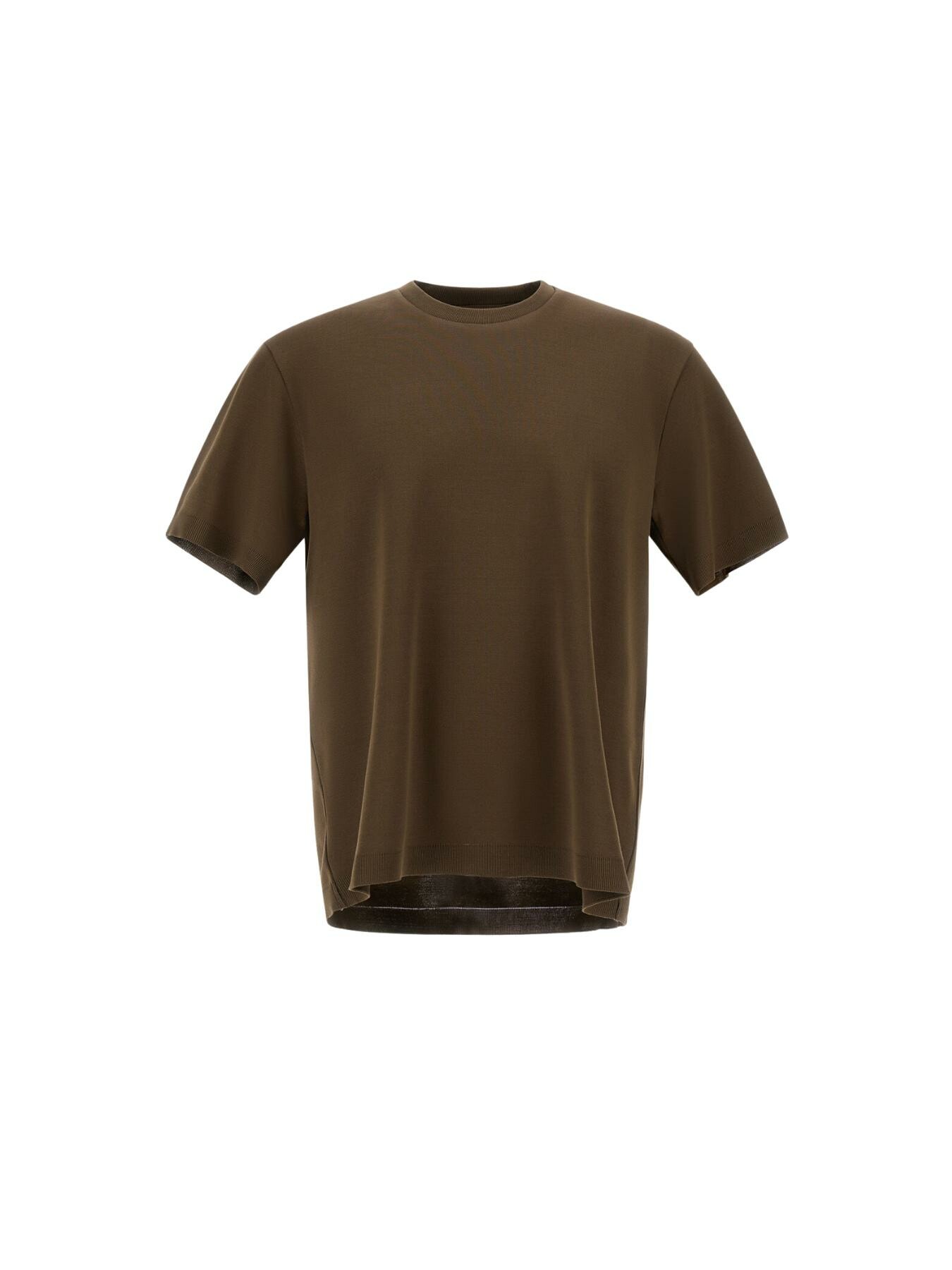 T-shirt in piquรฉ di puro cotone a doppio strato con interno a trama rasata ed esterno arricchito da dettagli in costa che conferiscono un aspetto tricot.