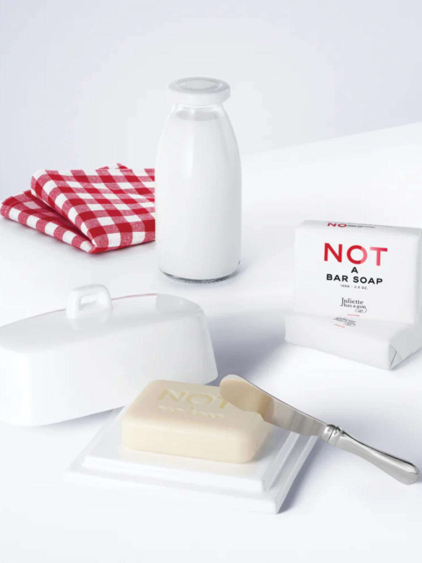 Un nuovo must have per il tuo bagno. Sul bordo della vasca da bagno, nella doccia o su un porta-sapone accanto al lavandino, NOT A BAR SOAP sarà un must have. Il nostro profumo emblematico, formulato con ingredienti non nocivi per la pelle e rivisitato sotto forma di sapone solido e soave, che pulisce la pelle profumandola delicatamente, senza seccarla.