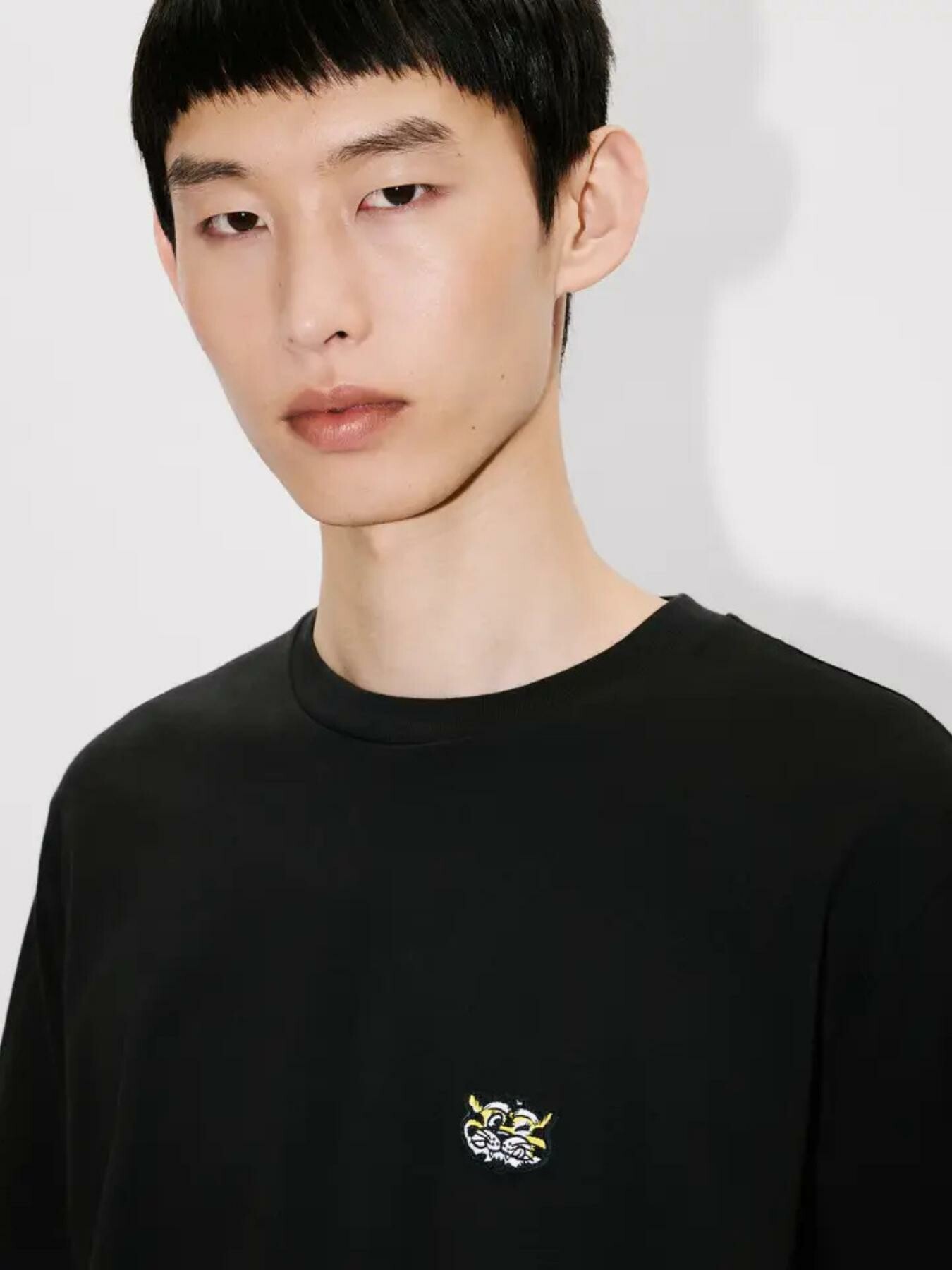 La classica T-shirt celebra la nuova interpretazione della tigre, emblema della Maison. Realizzata in jersey leggero, presenta il motivo ‘Wild Tiger’ ricamato sul petto. Il logo sobrio ‘KENZO Paris’ ricamato tono su tono รจ un discreto dettaglio importante sul retro del colletto.