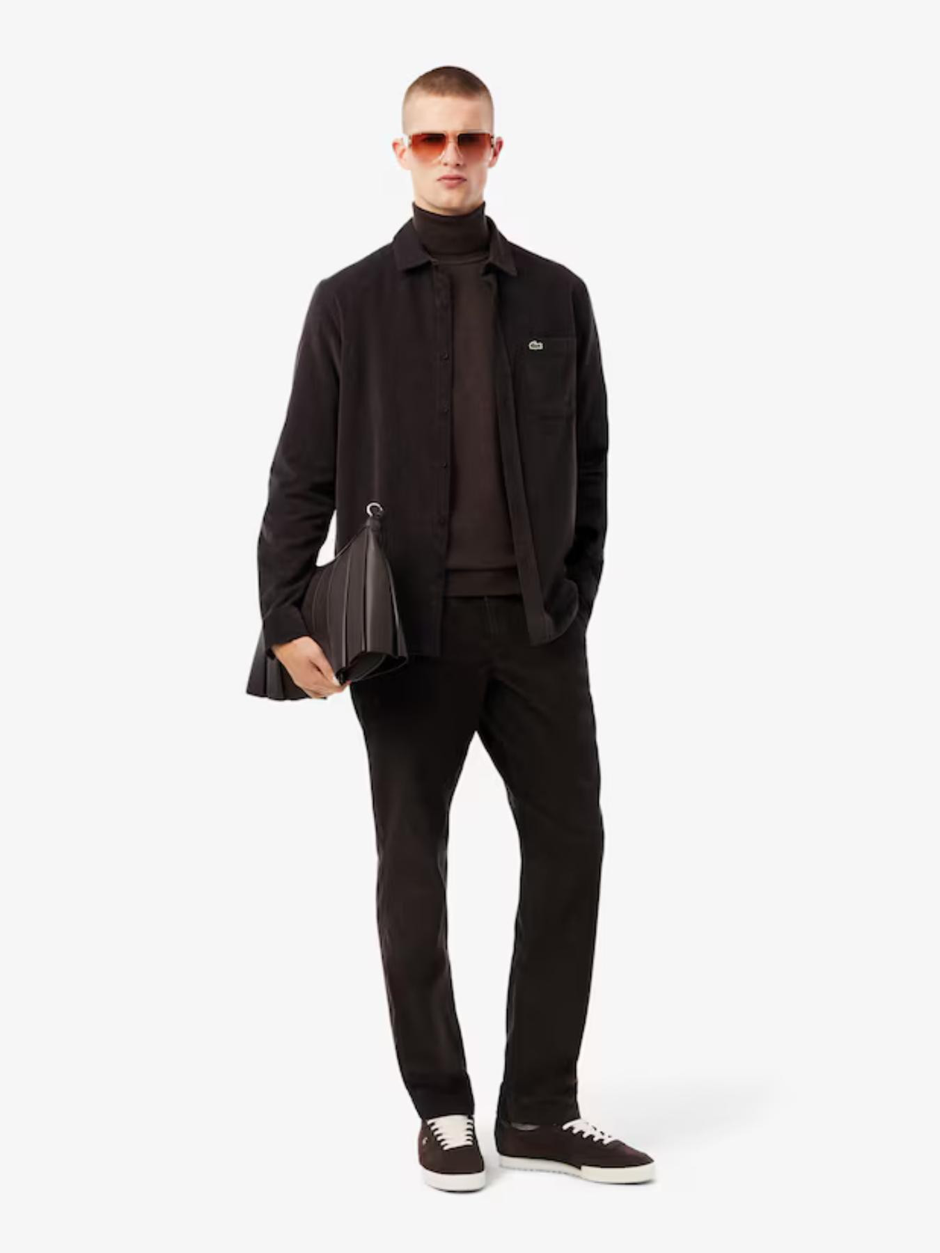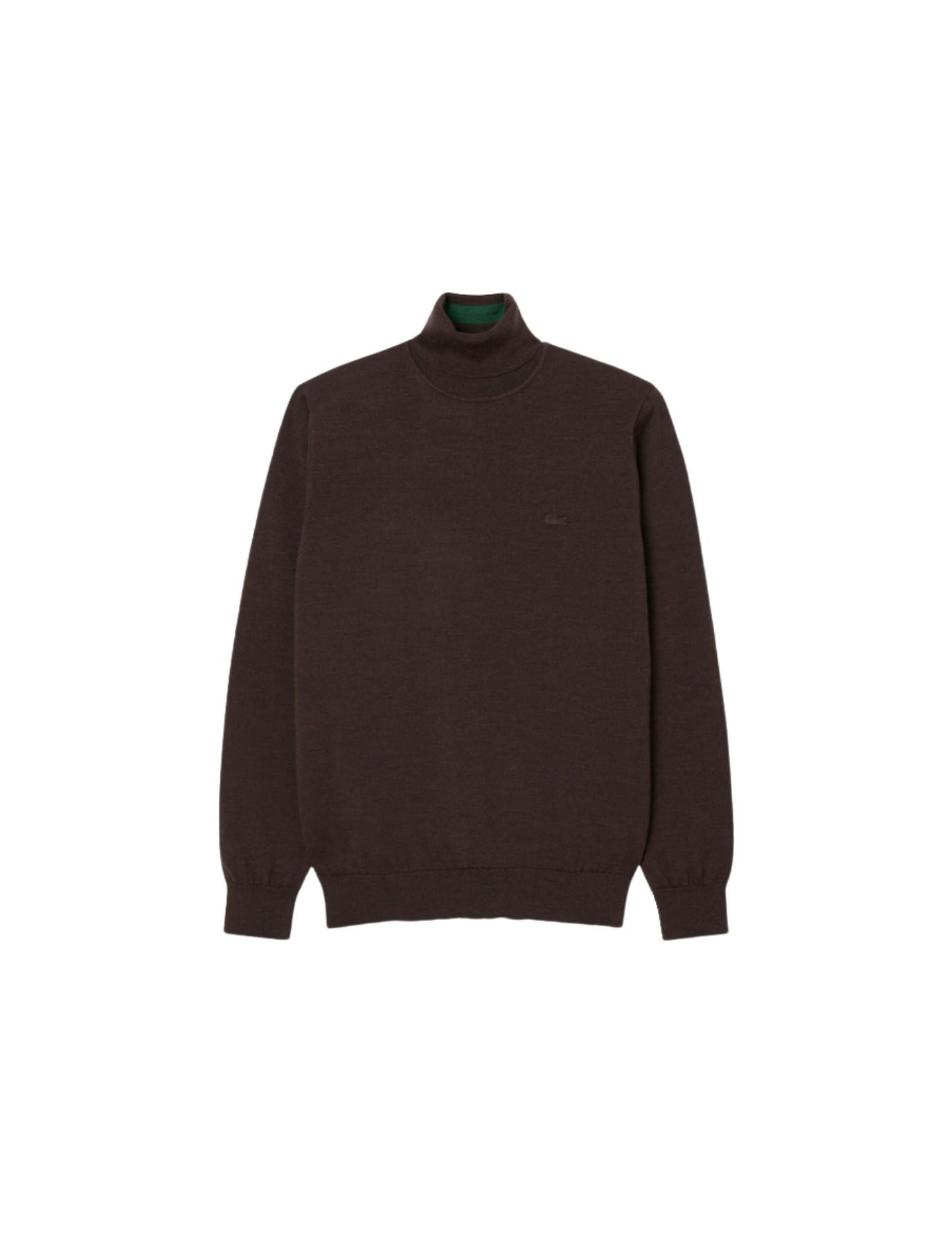 Un classico capo maschile dalle linee semplici, caratterizzato da un collo alto ultra chic. Un pullover in jersey di lana merino ecologica, impreziosito da finiture a costine e da un coccodrillo ricamato sul petto. Questo must-have maschile terrà comodi e caldi quando le temperature inizieranno a scendere.