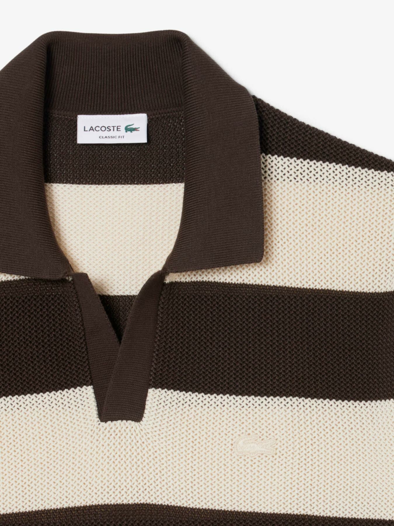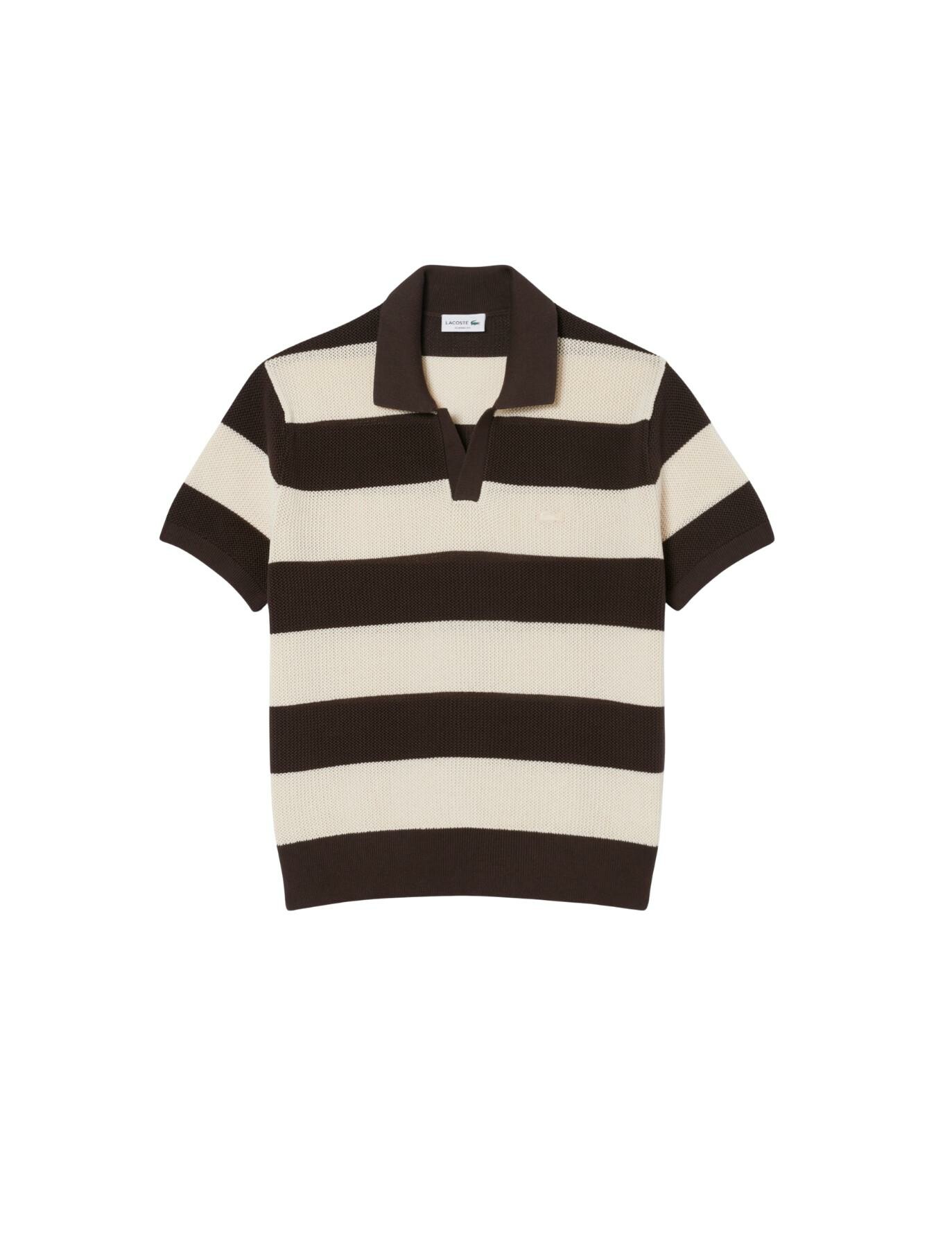 Lacoste – Maglione a maniche corte a righe con colletto polo
