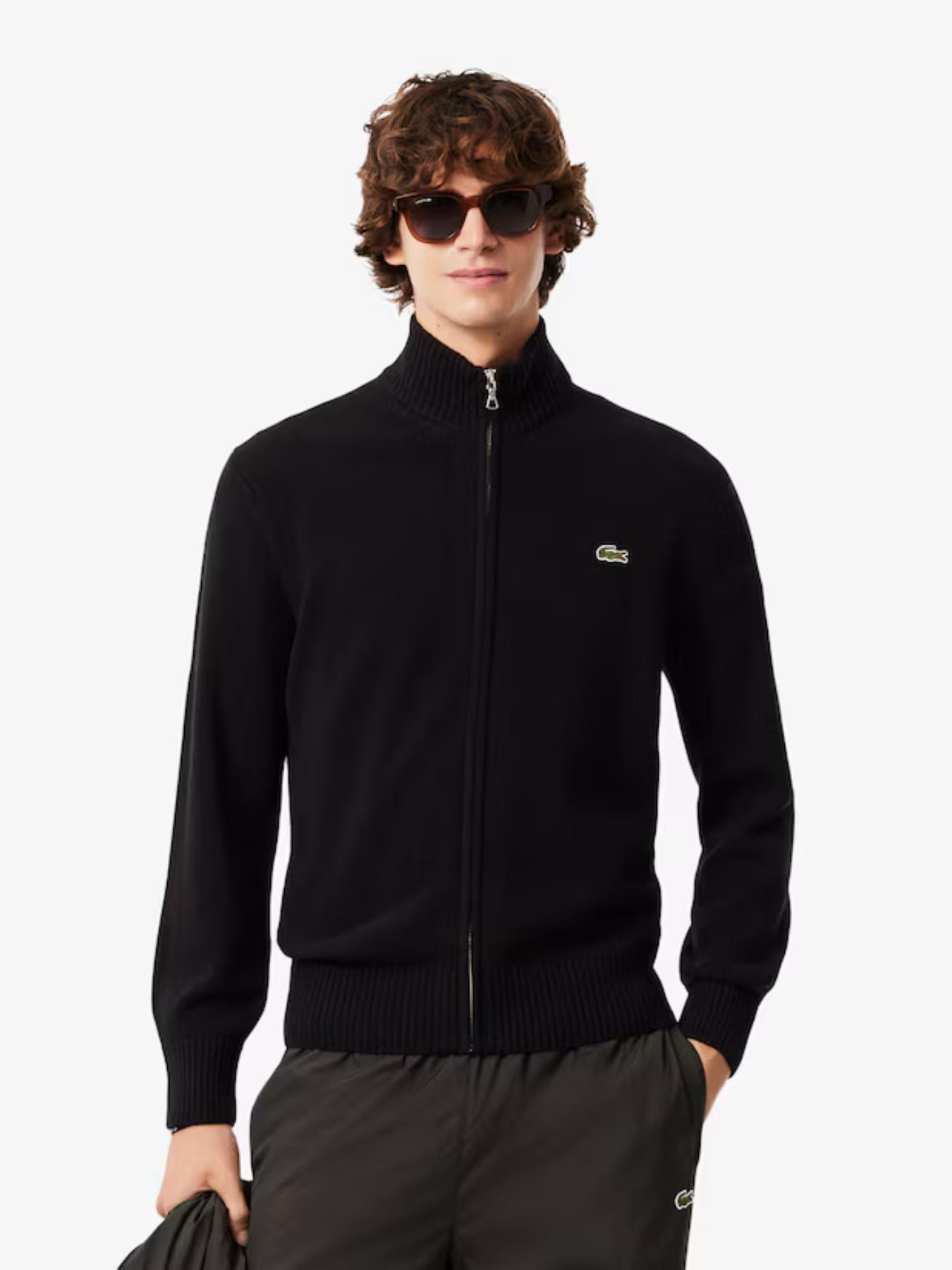 Lacoste – Maglione con zip in lana cardata
