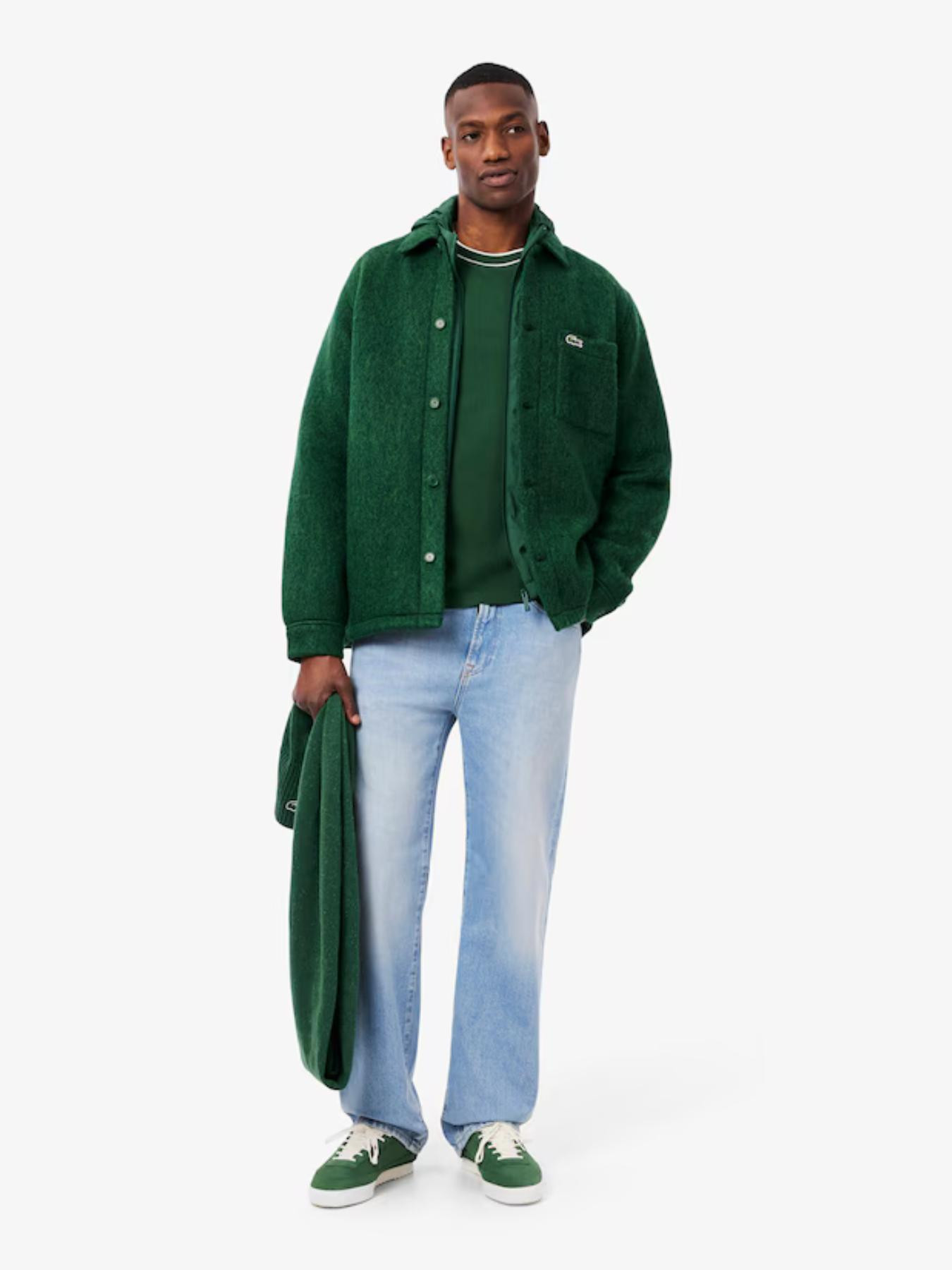 Questa overshirt รจ una lezione di eleganza francese e competenza tessile di Lacoste. Realizzata in morbido e caldo feltro di misto lana testurizzato, con un generoso taglio moderno. In aggiunta, dettagli sofisticati e un caratteristico coccodrillo ricamato per un tocco chic e rilassato.
