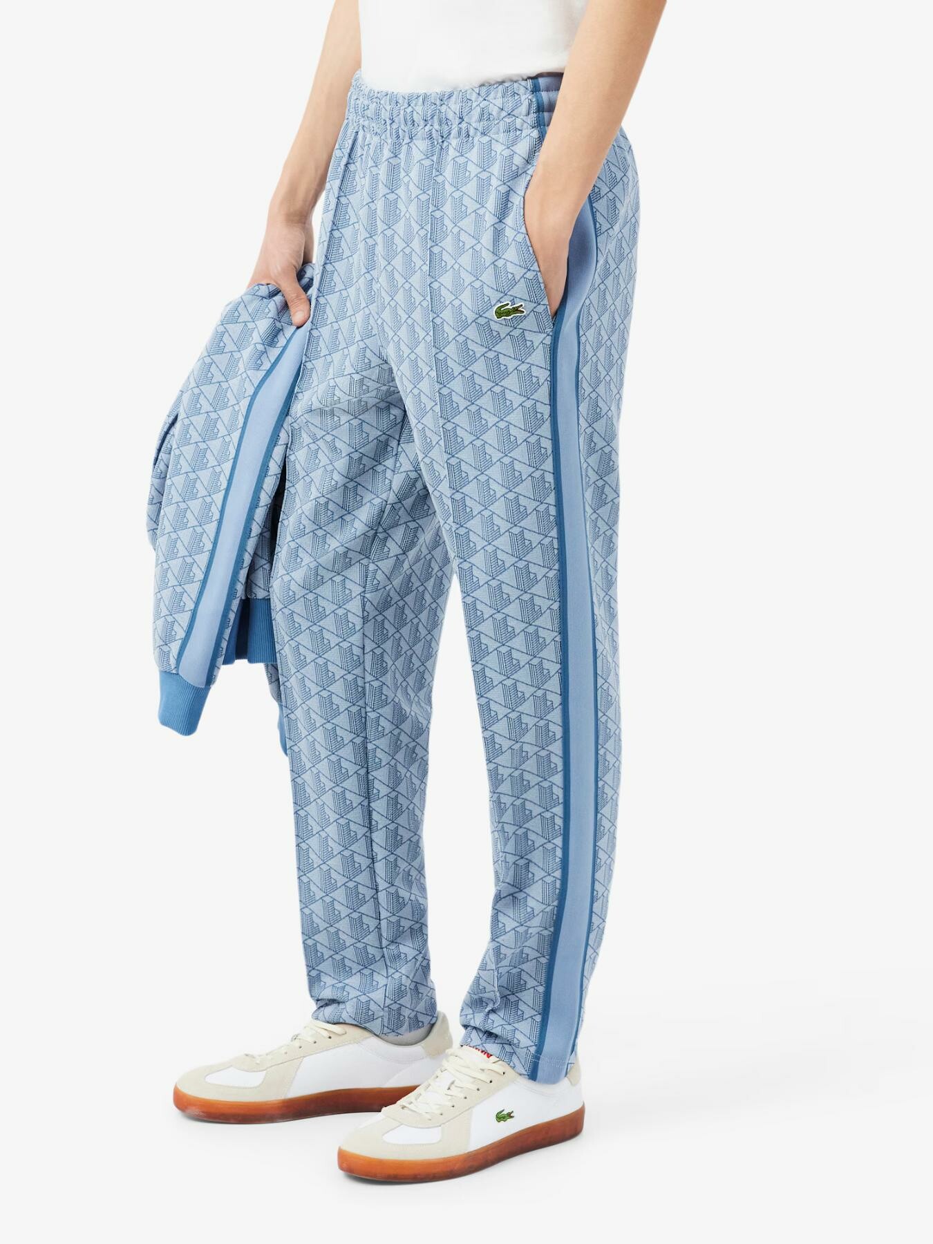 L’iconica tuta Lacoste, per l’eleganza francese in movimento. Questi pantaloni della tuta fanno parte della nostra linea “Paris”, ispirata alle tute Lacoste degli anni โ70, e presentano un monogramma vintage, uno stile sportivo e dettagli sartoriali. Un autentico must have.