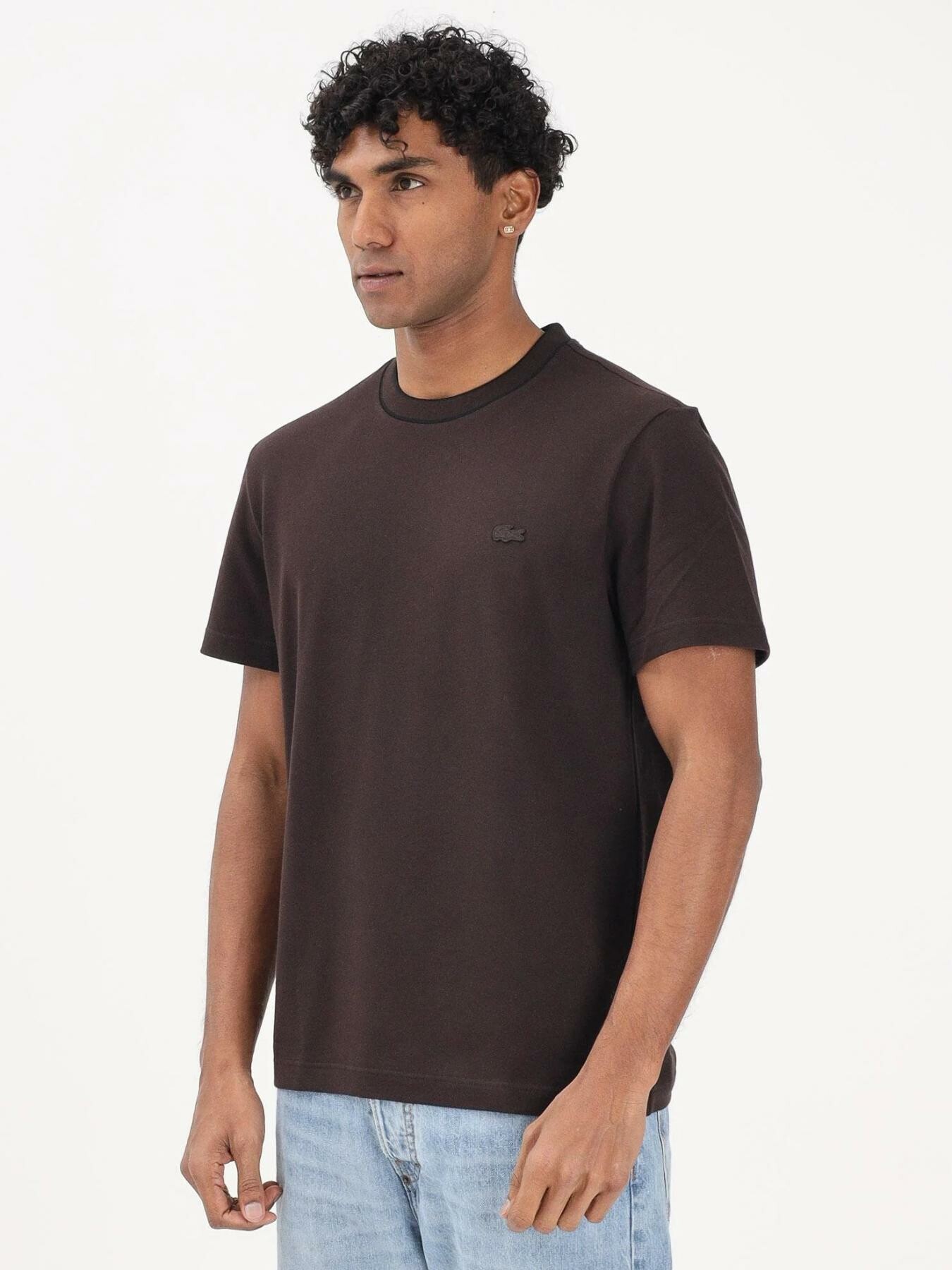 Lacoste – T-shirt da uomo in piqué elasticizzato a righe con colletto.