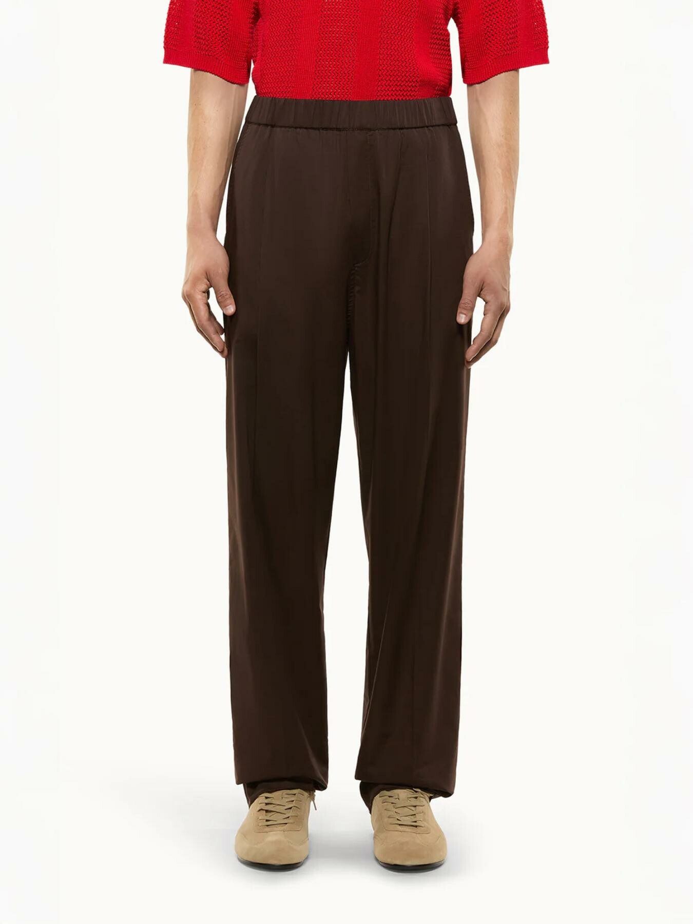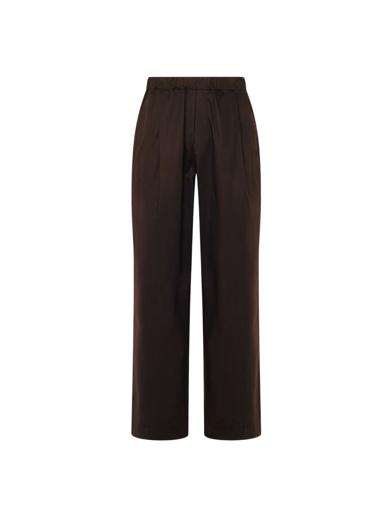 Pantalone firmato Laneus in leggero popeline di cotone. Presenta un comodo elastico in vita con finta patta, riprese sul davanti , tasche alla francese sui lati e due tasche piatte sul retro. Il tessuto leggero e traspirante lo rende ideale per la stagione piรน calda, con unโestetica elegante e versatile adatta sia a contesti formali che informali. Made in Italy.